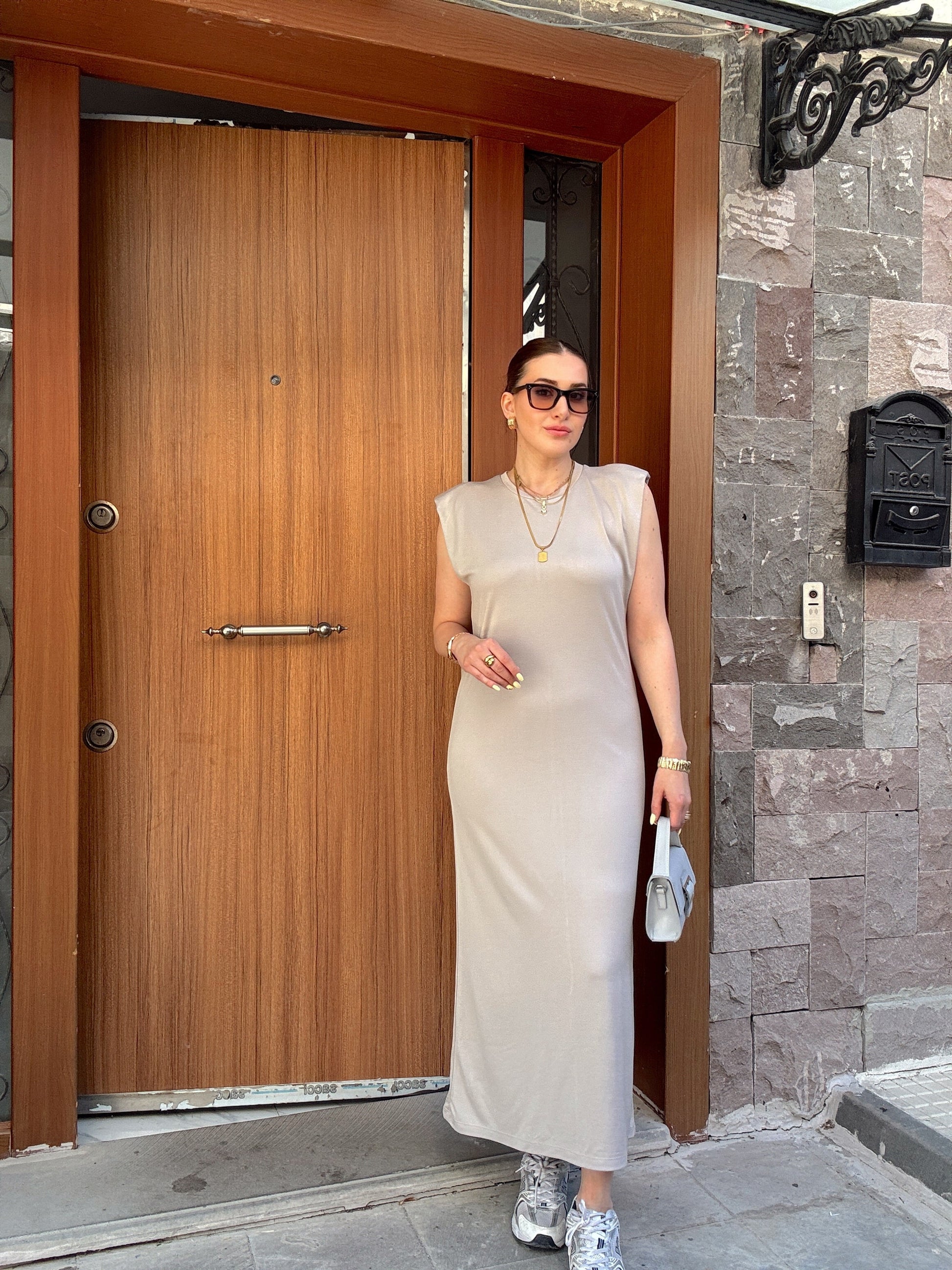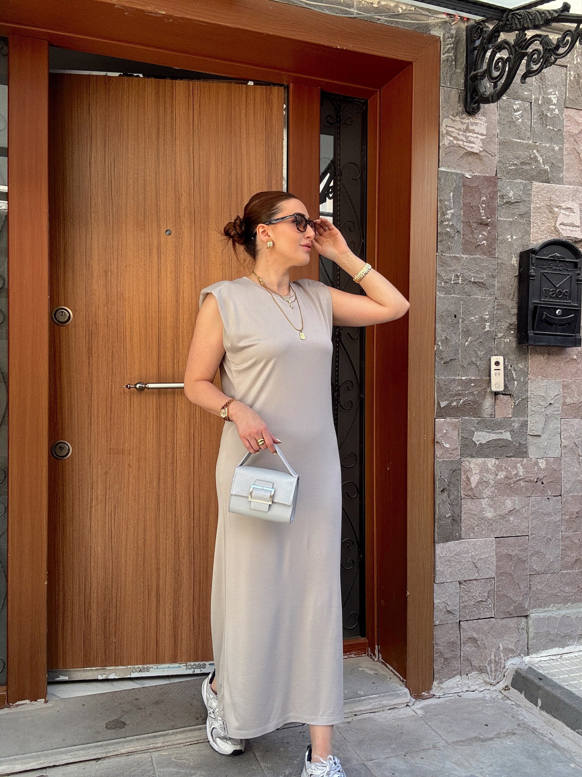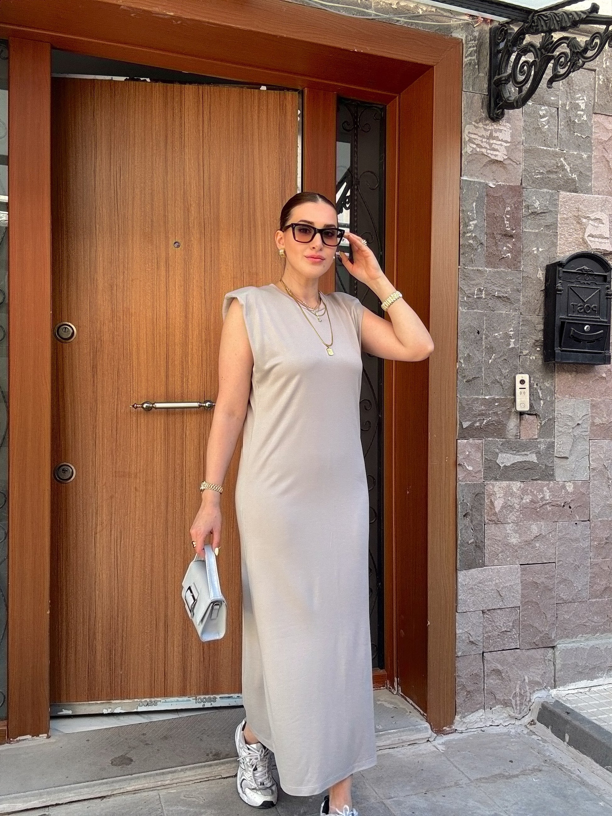 Modal kumaş vatkalı bisiklet yaka elbise GRİ