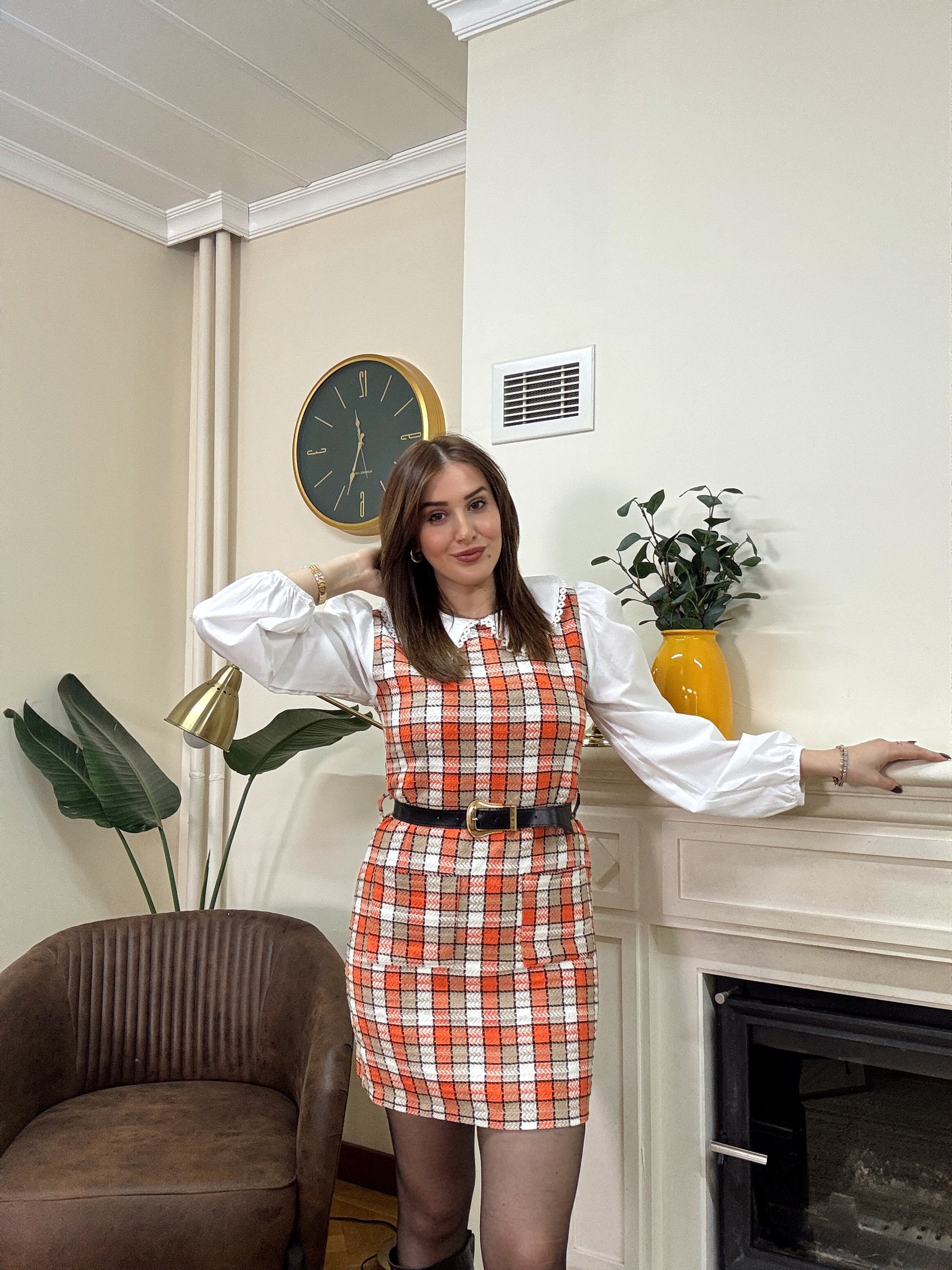 MOLLY ekose bebe yaka elbise-TURUNCU