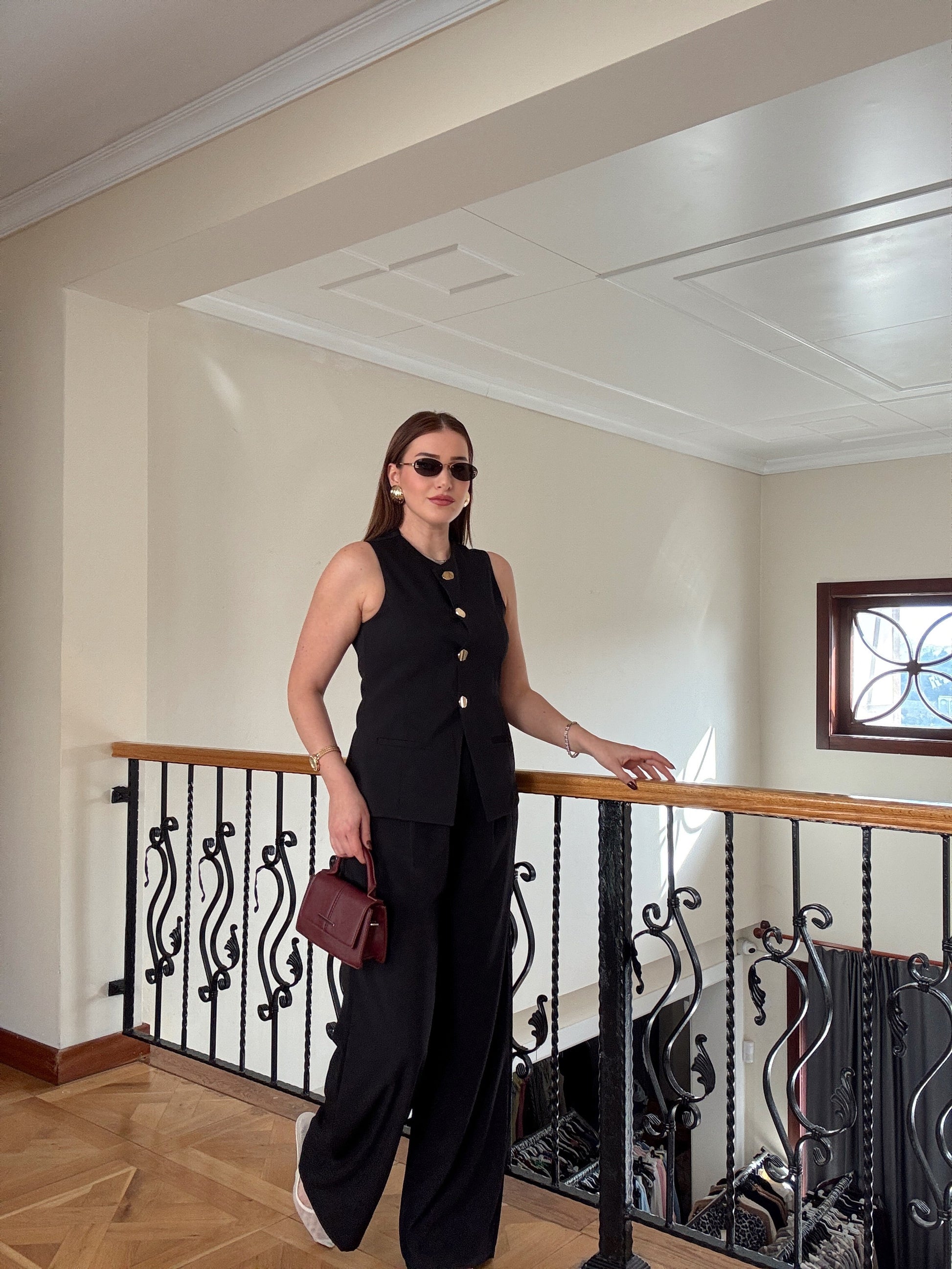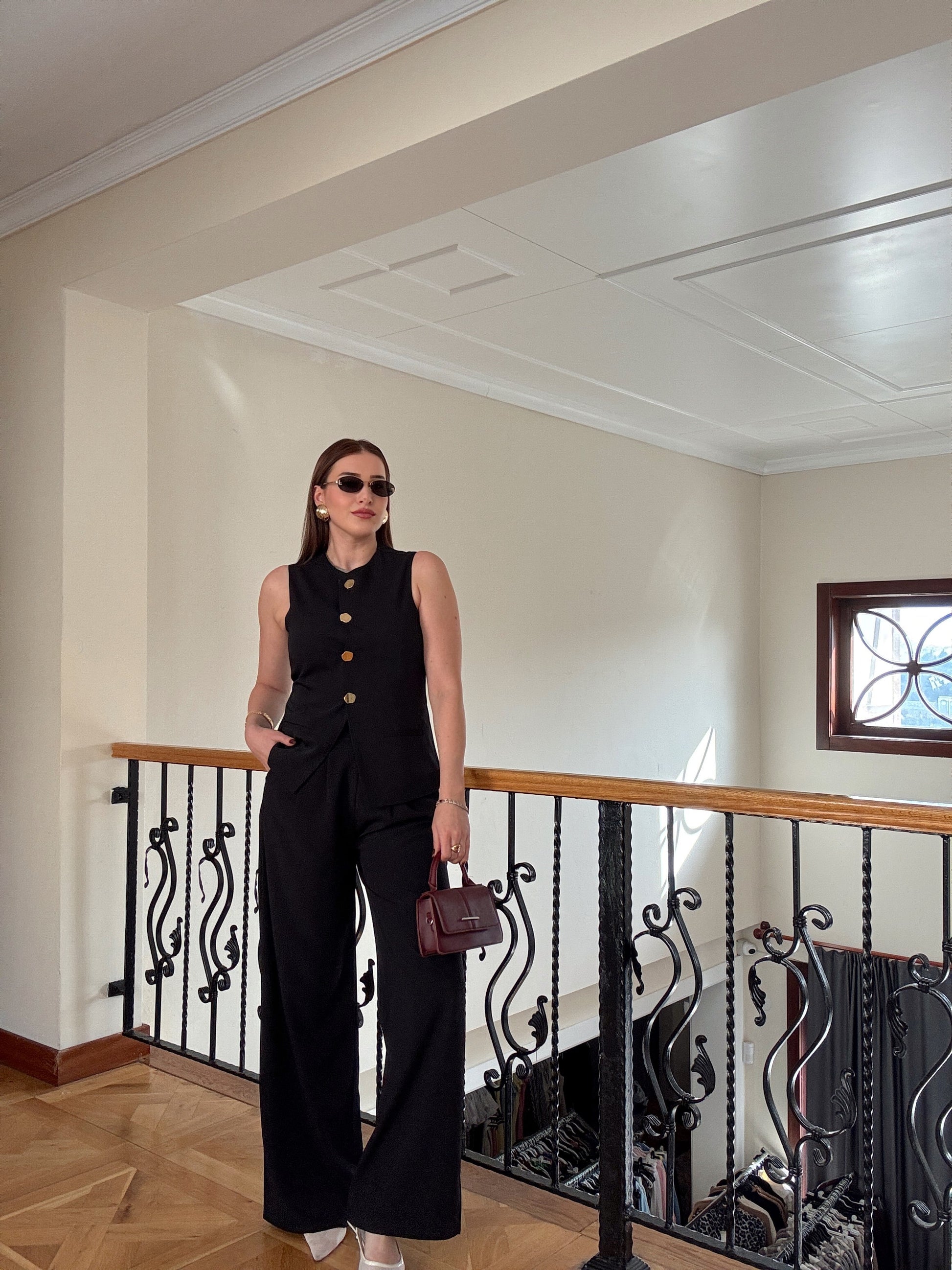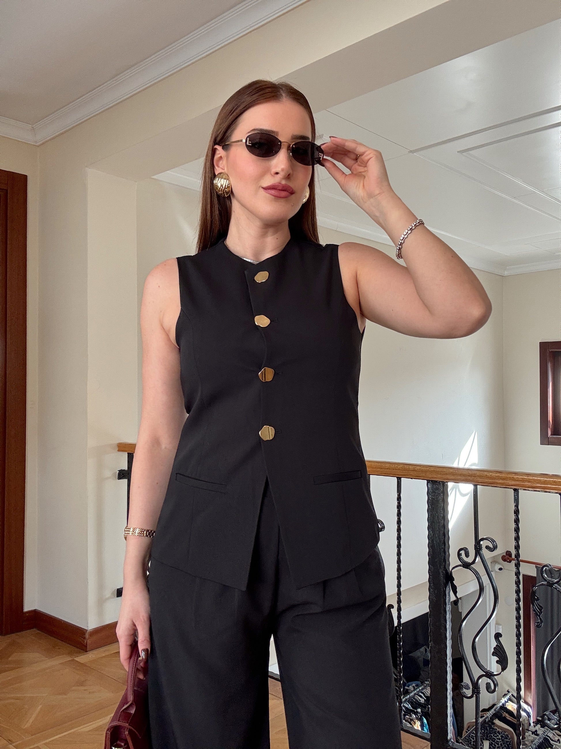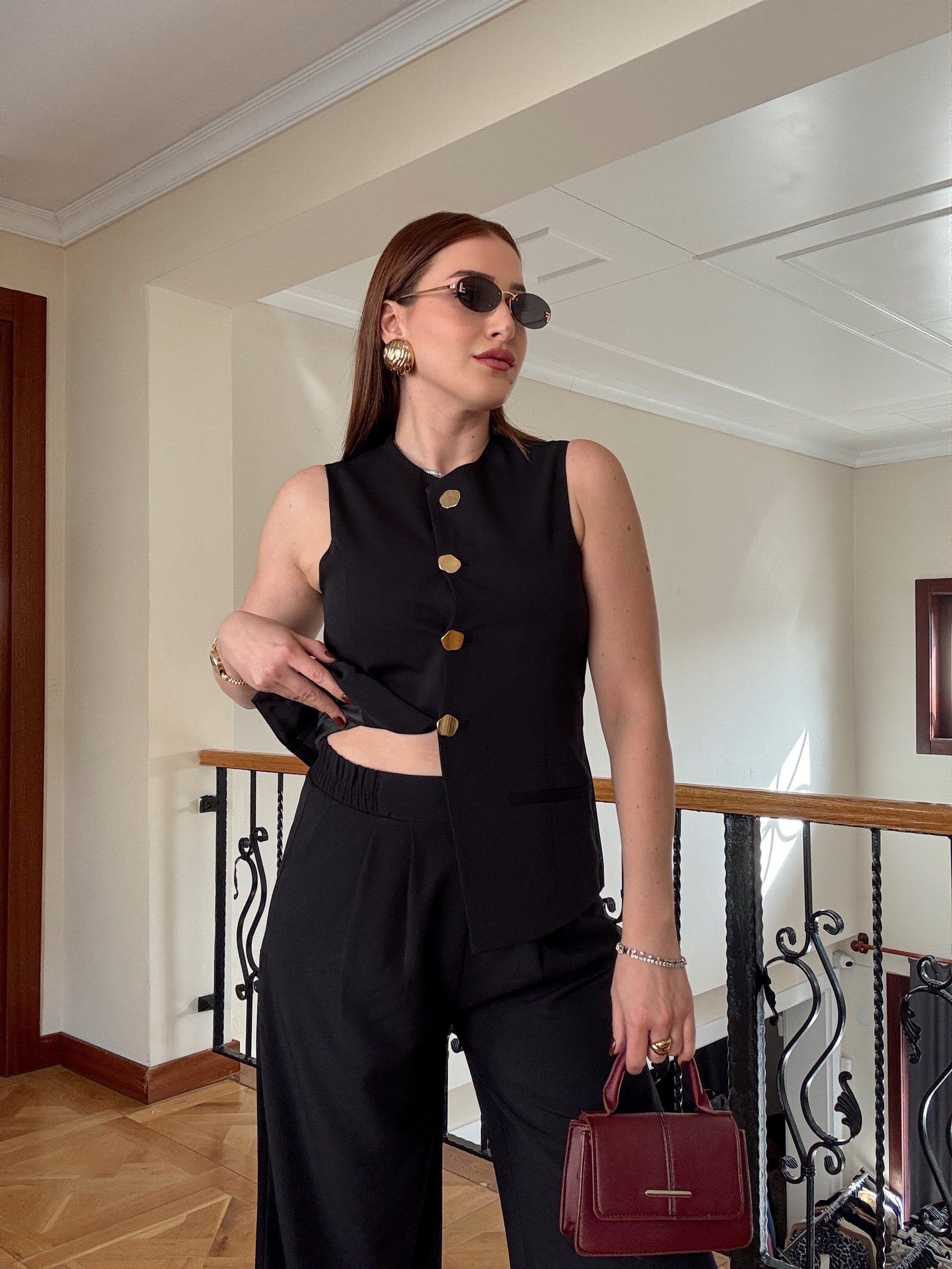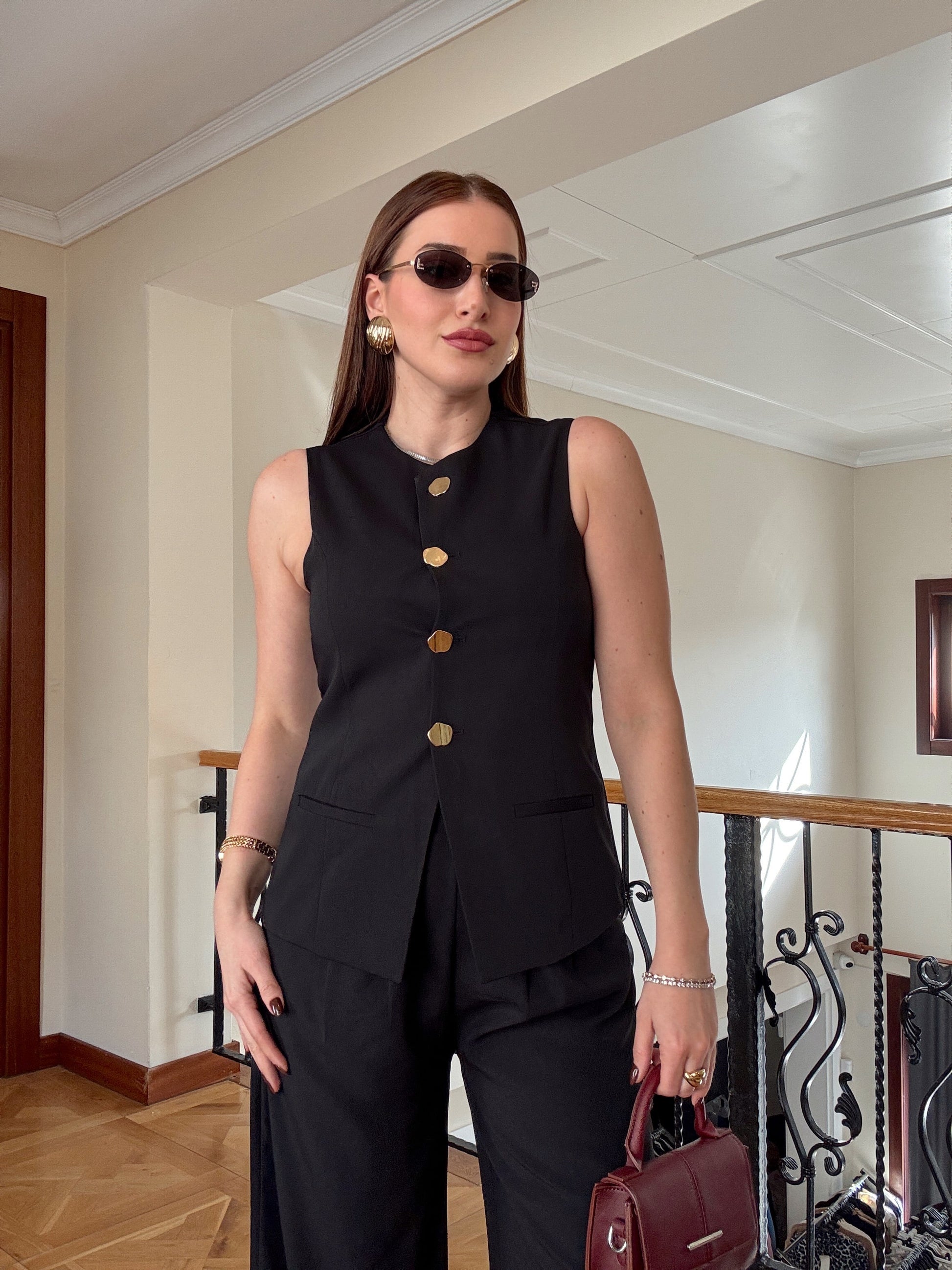 NATALİ Gold düğme ikili takım SİYAH