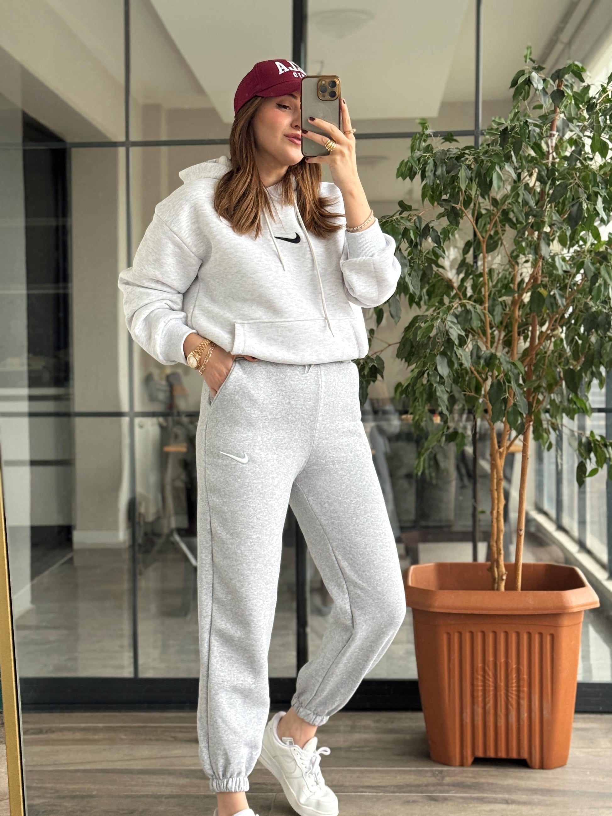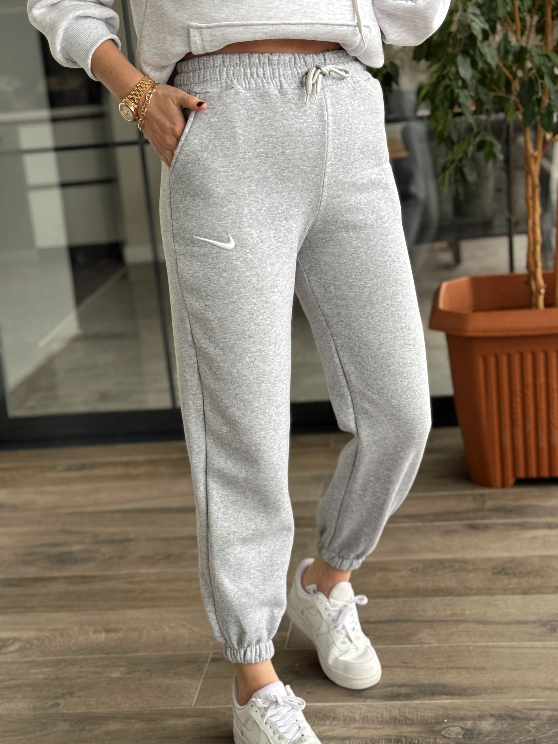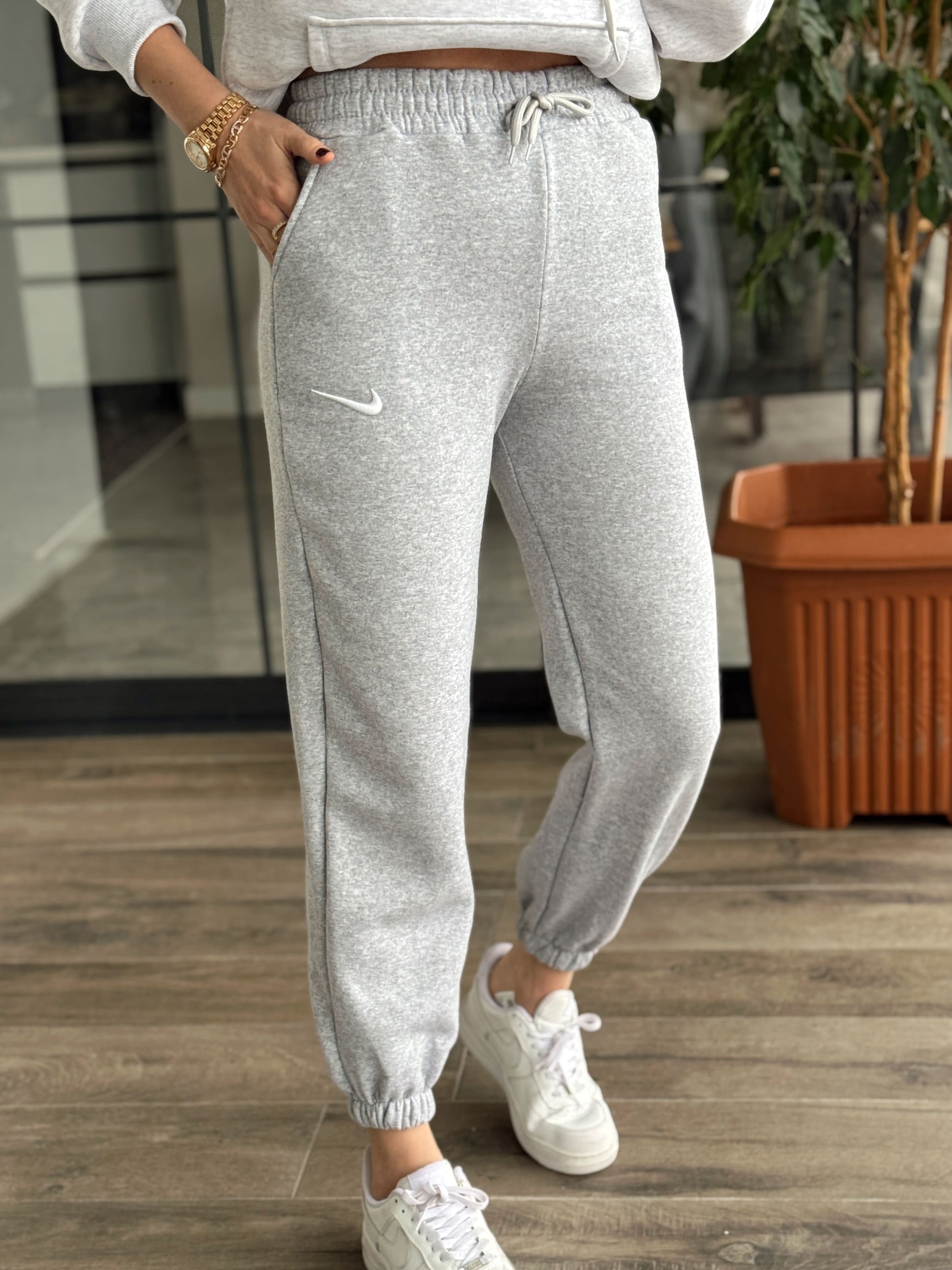 NK İşleme Paça Lastikli 3 İplik Şardonlu Eşofman Alt - GRİ