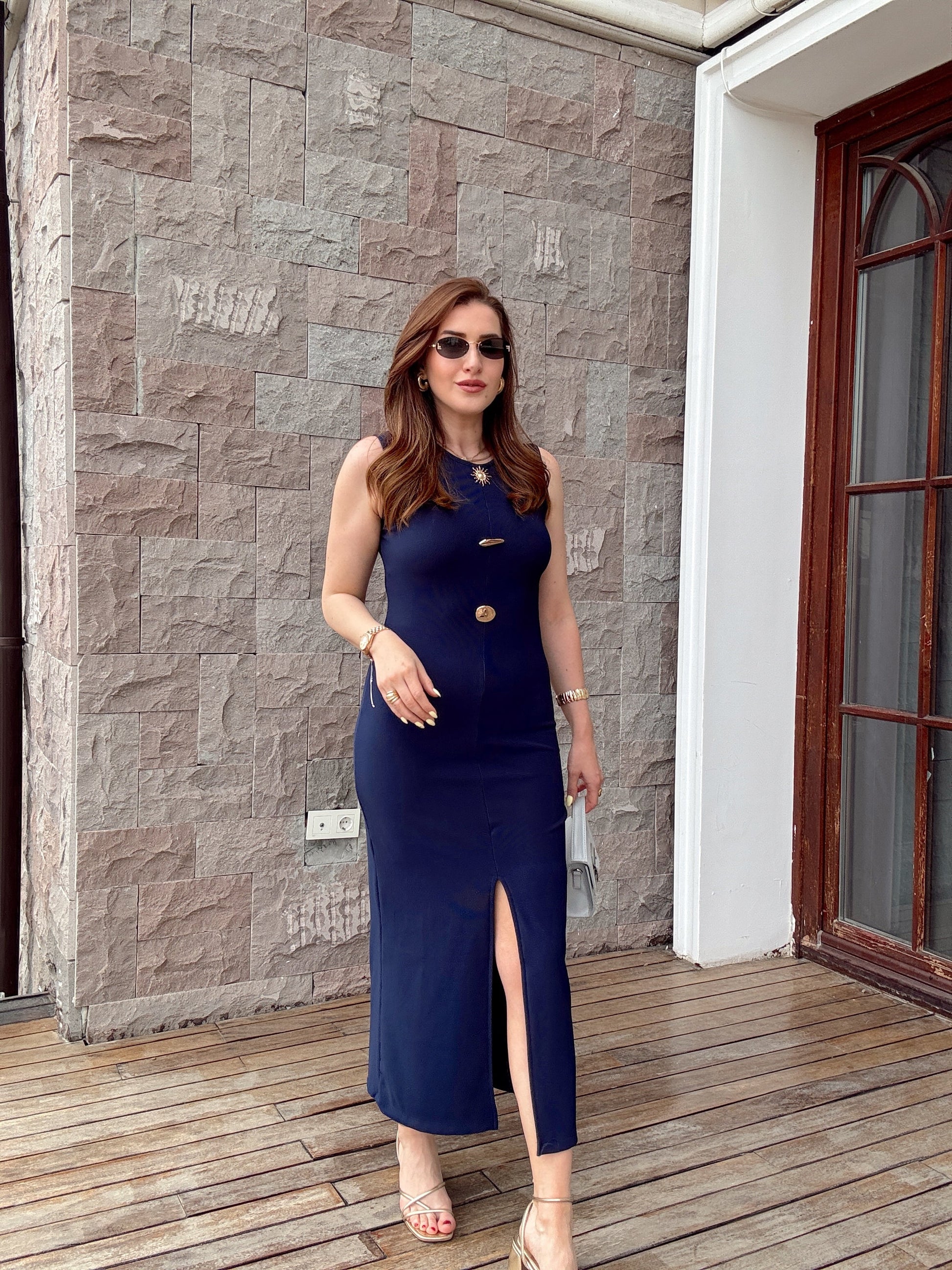 Ottoman sıfır kol düğmeli elbise LACİVERT