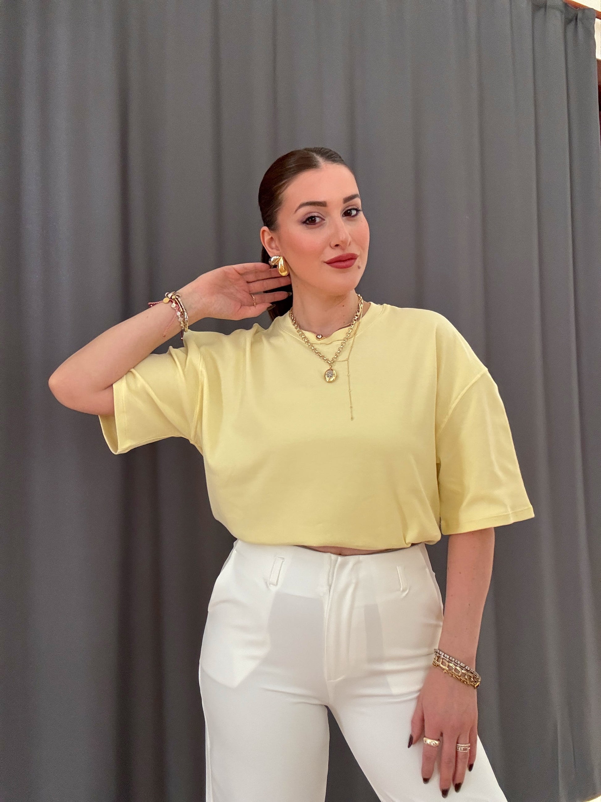Oversize Basic Tişört Sarı