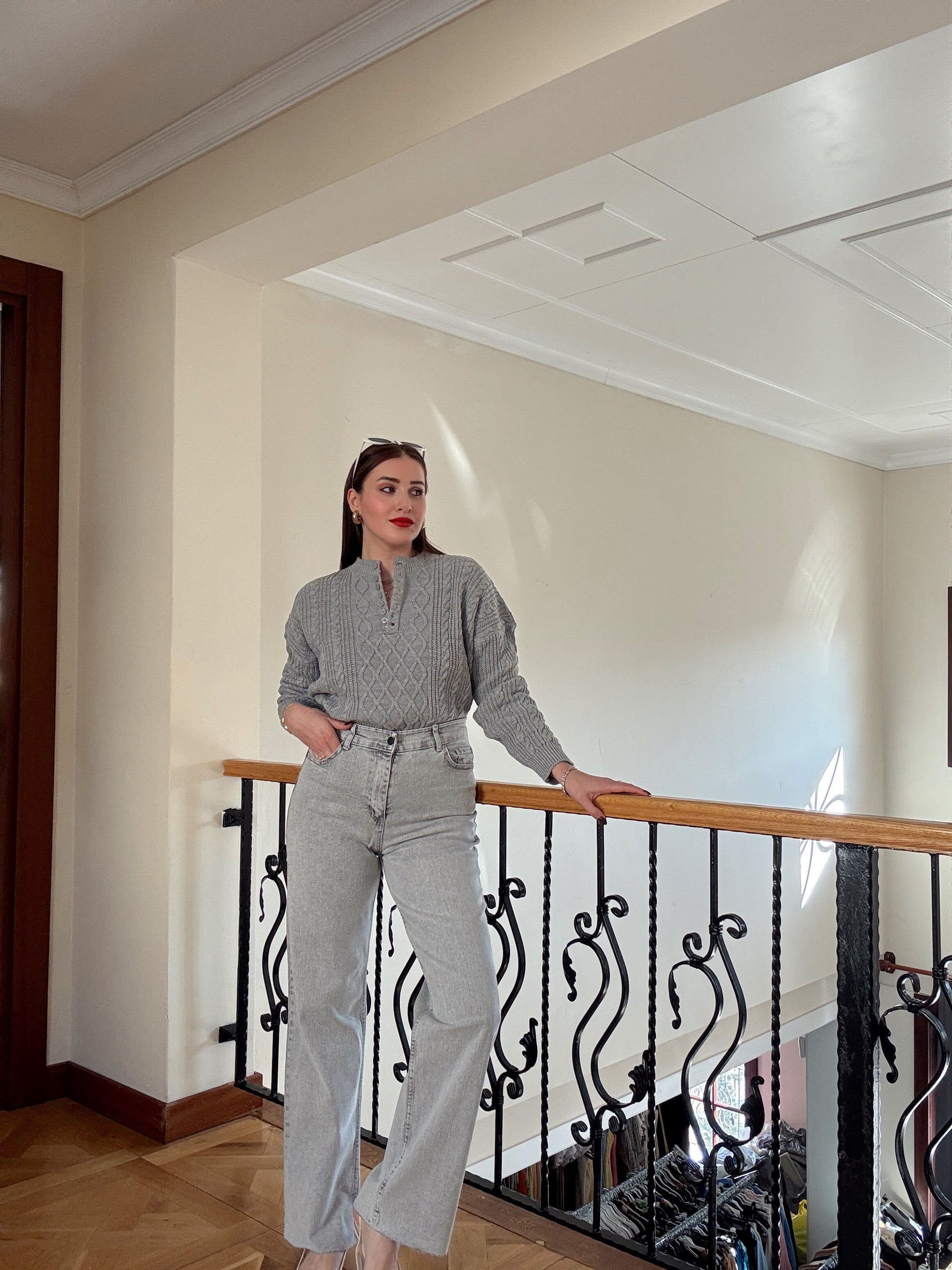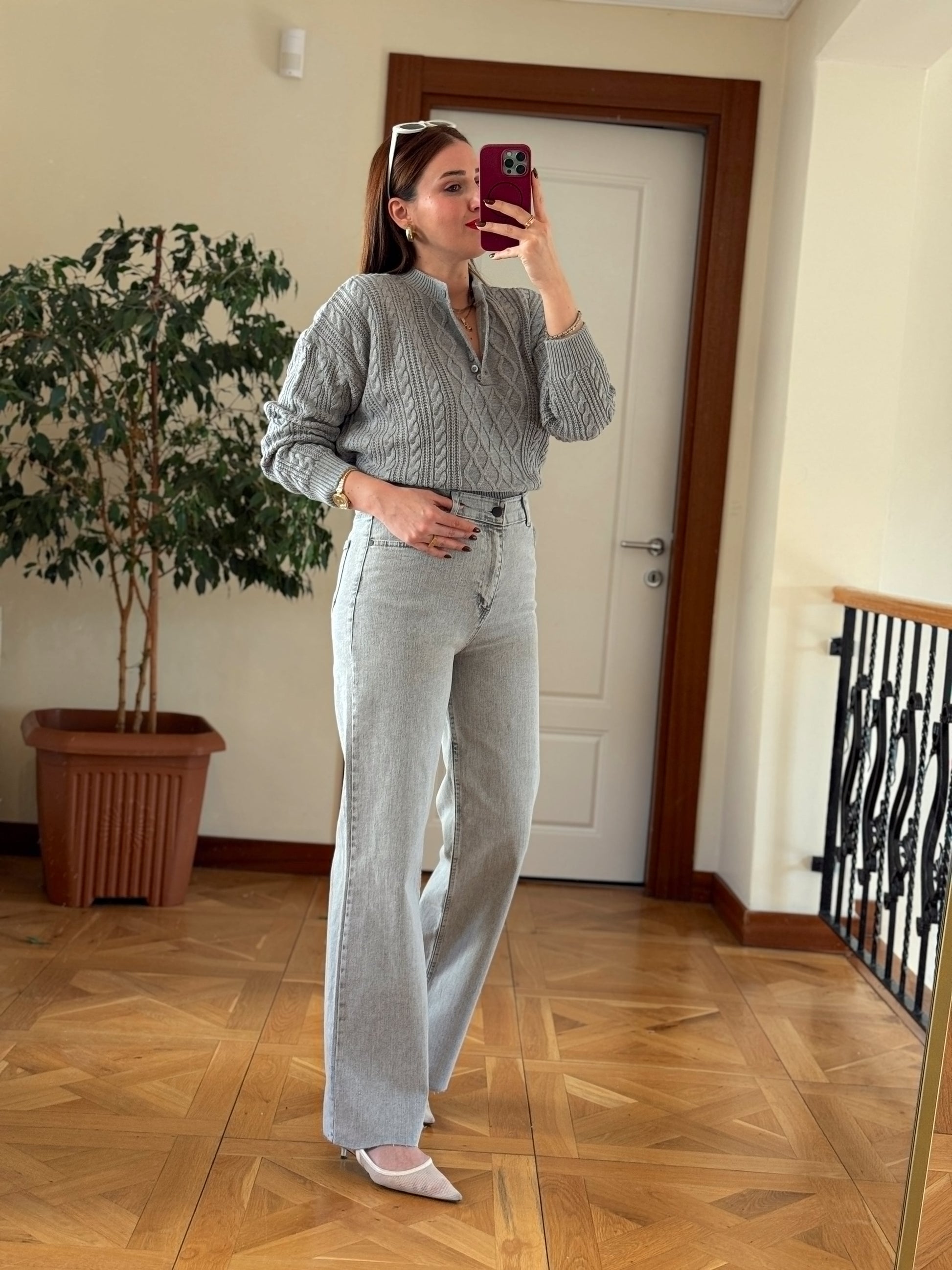 Palazzo kesik paça jean pantolon-GRİ