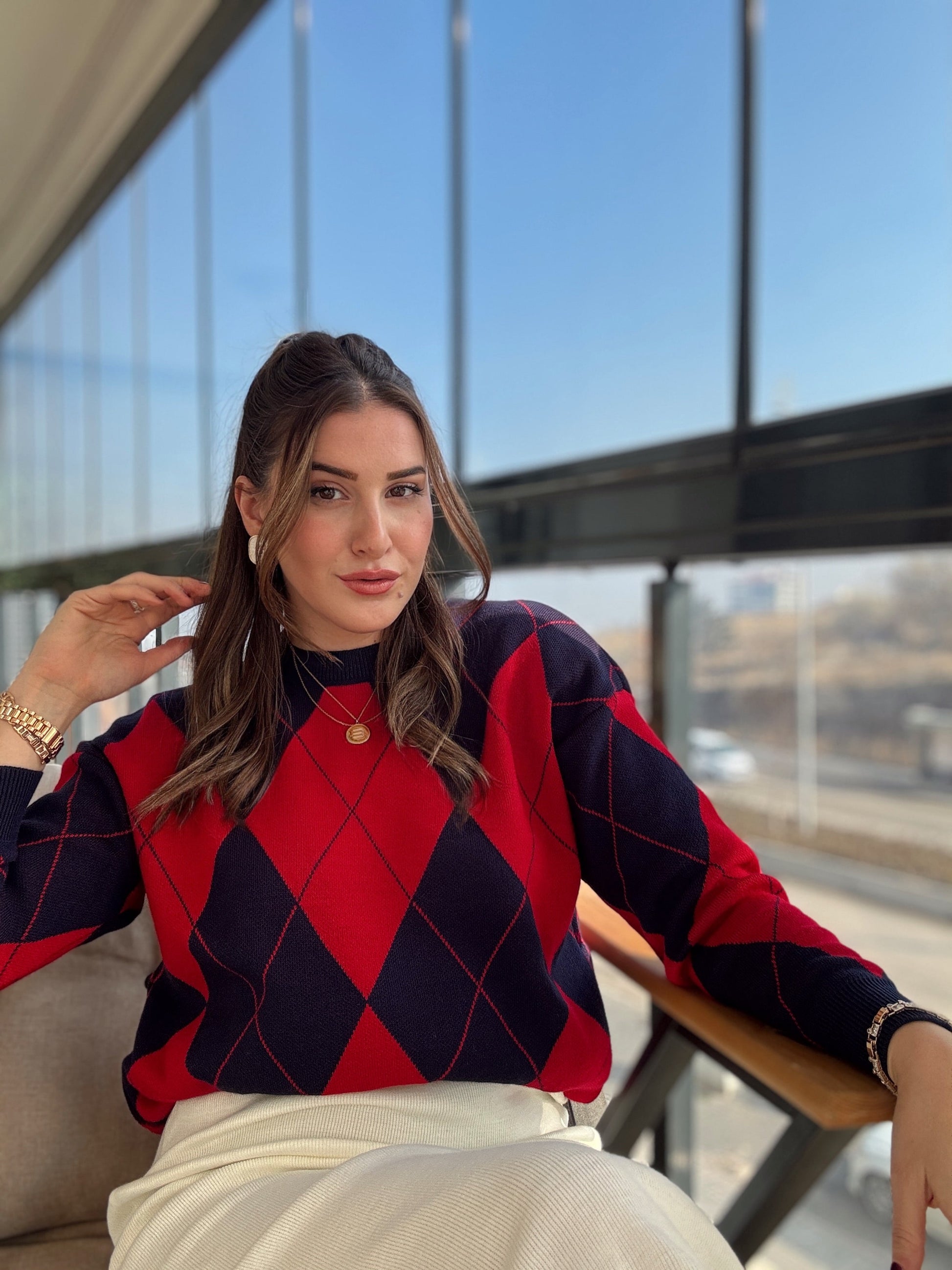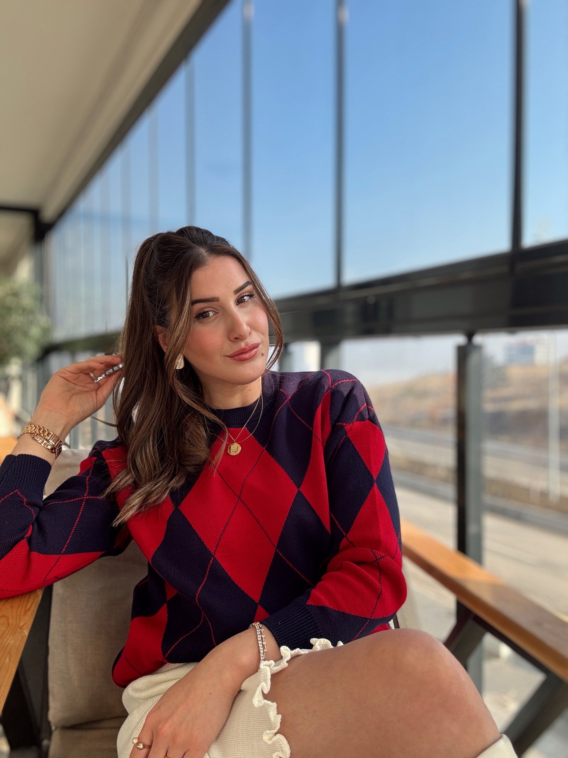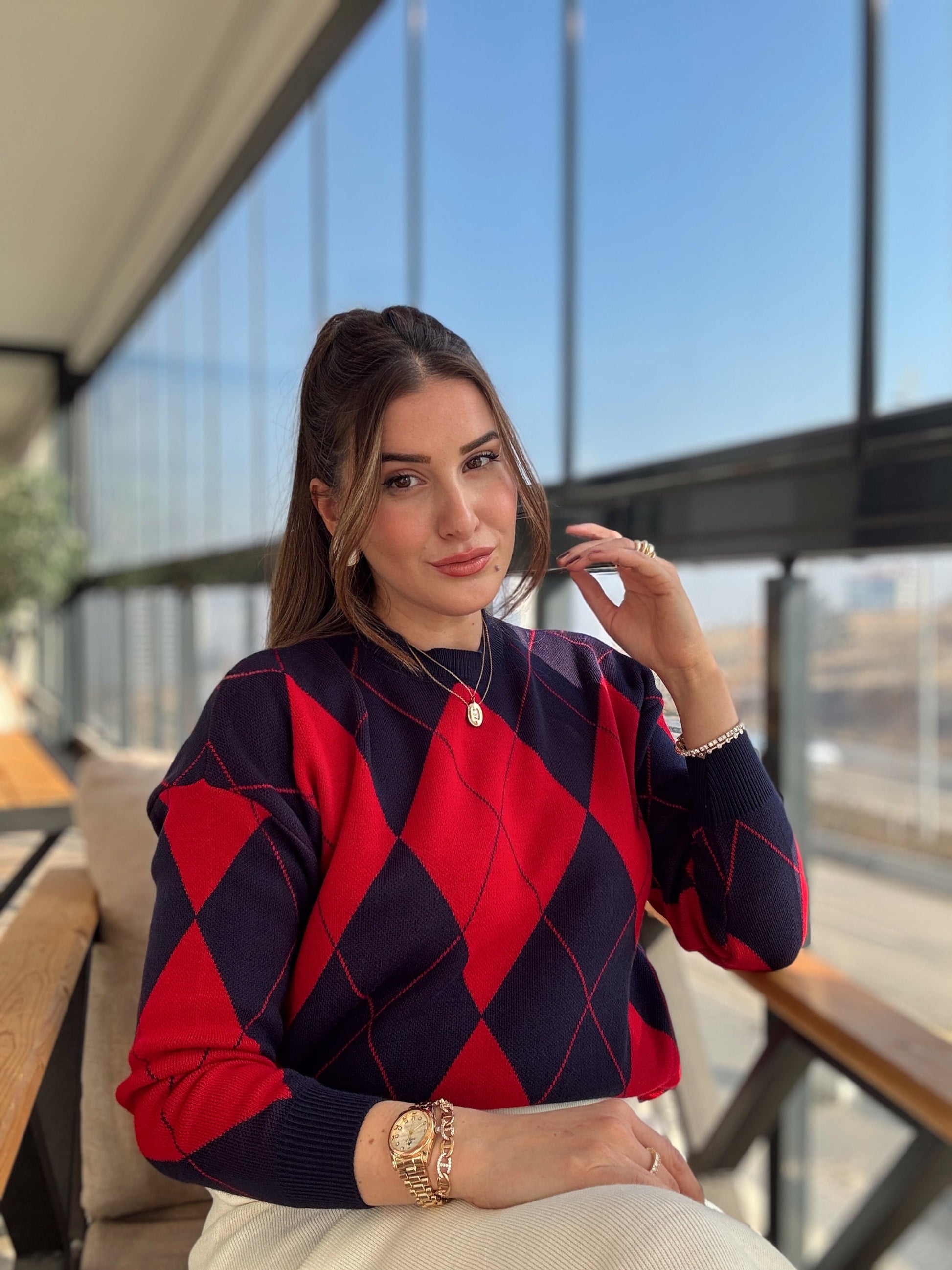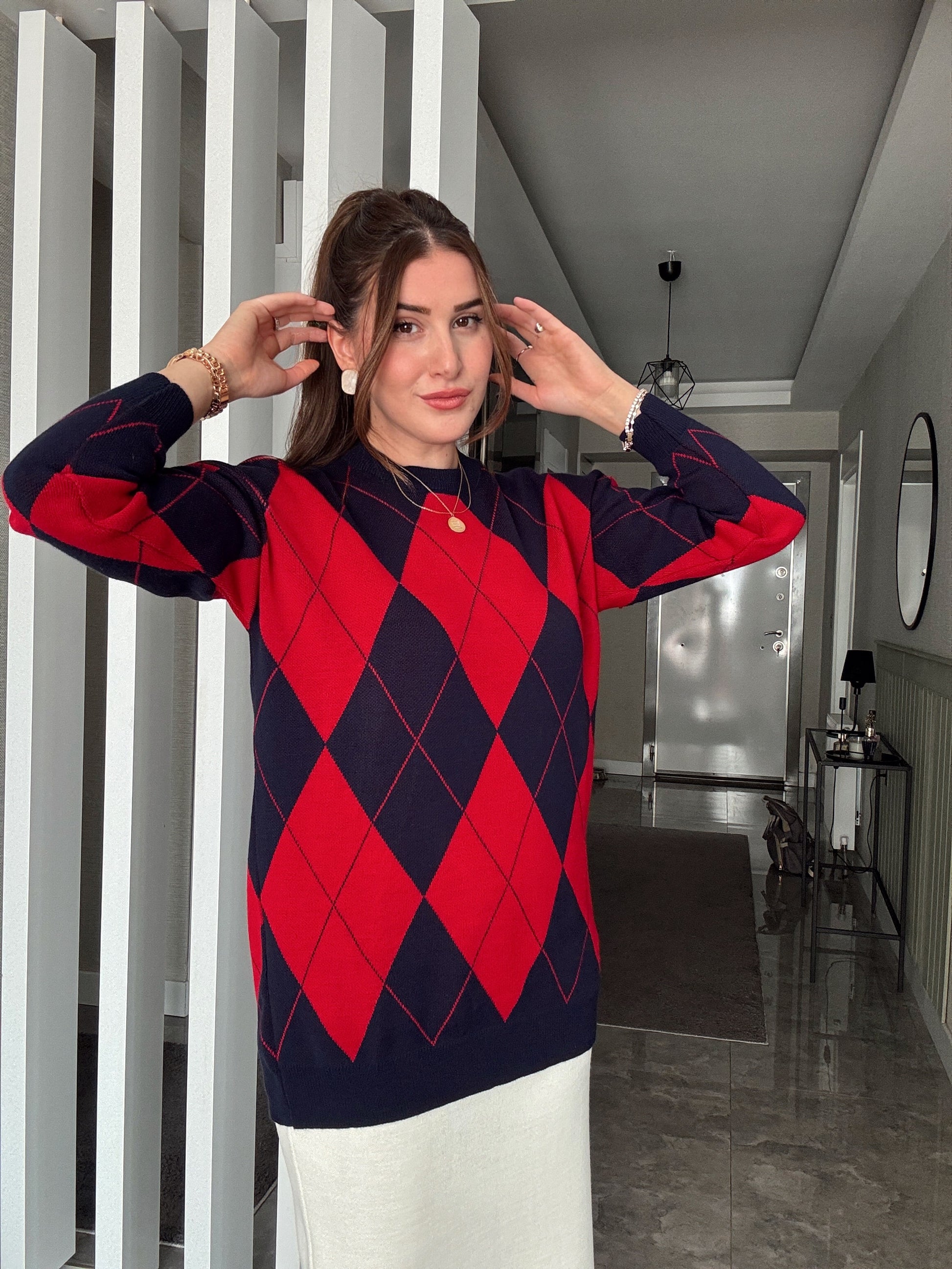 Pike Örgü Baklava Desenli Kazak KIRMIZI