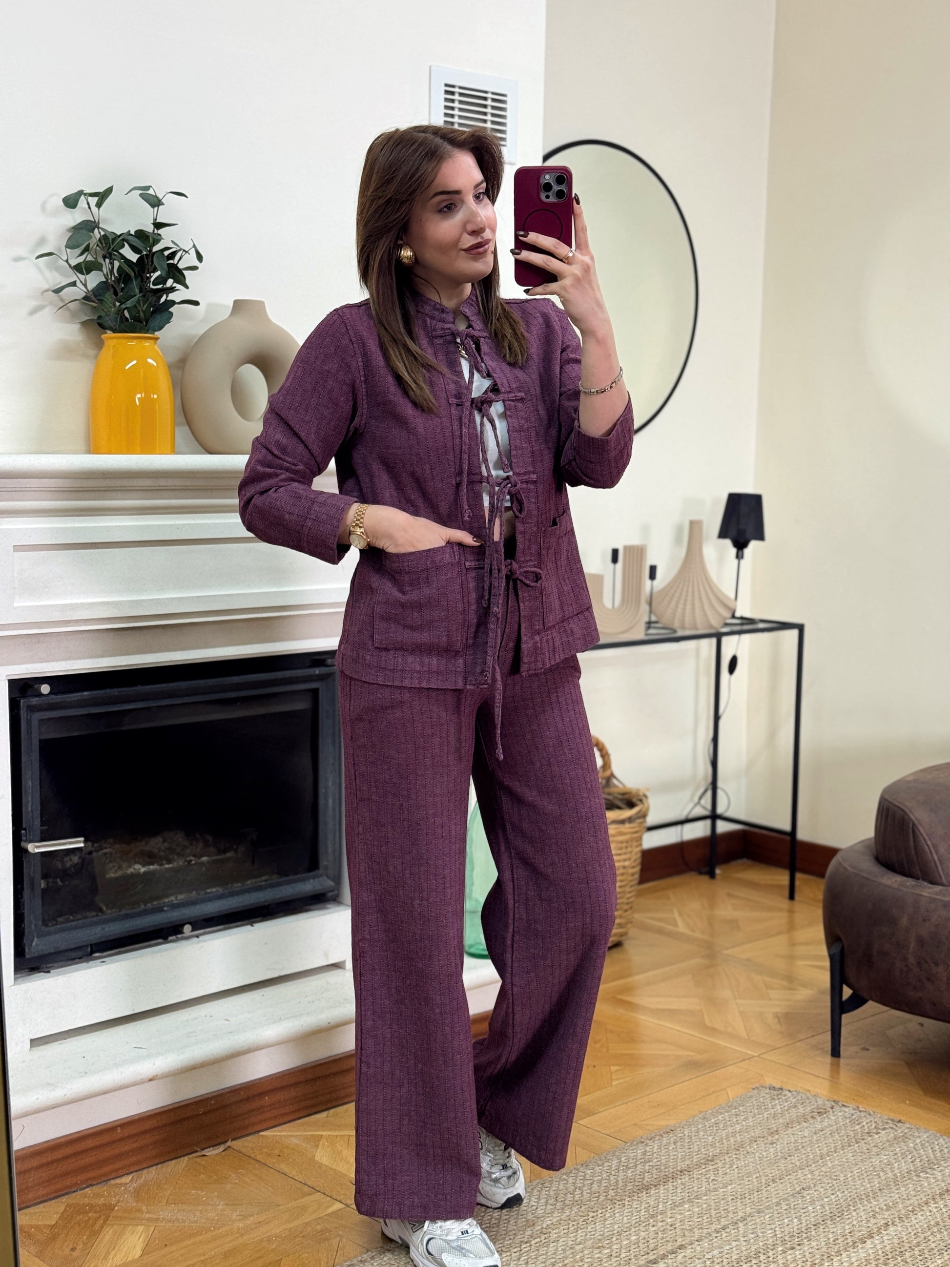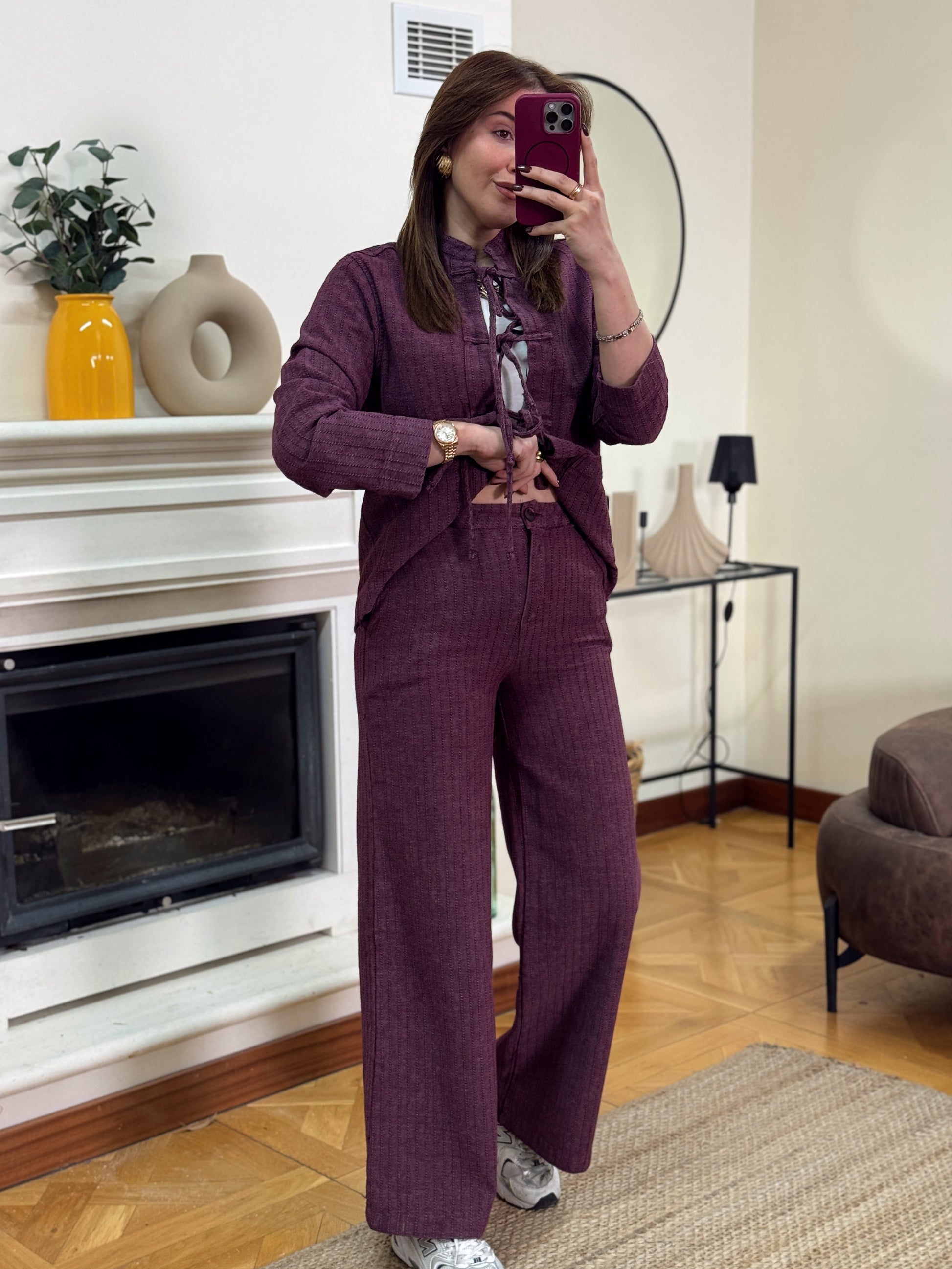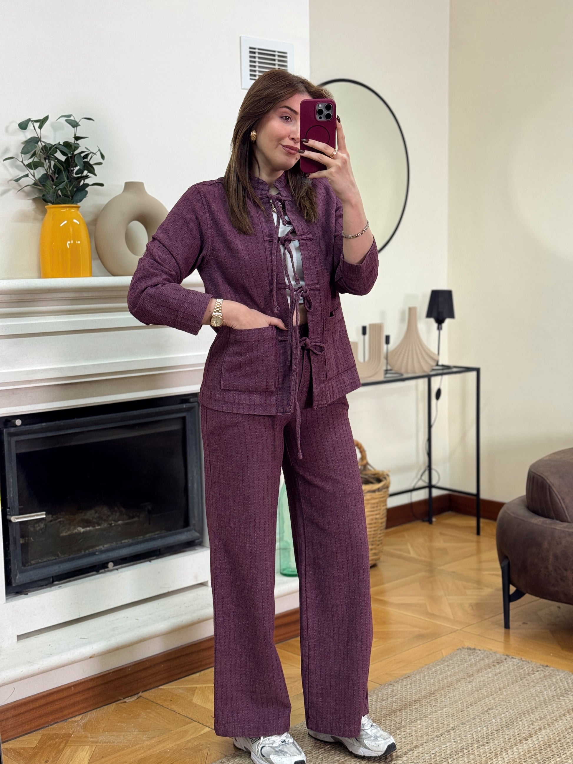 RUFFY bağlamalı yıkamalı gabardin ikili takım BORDO