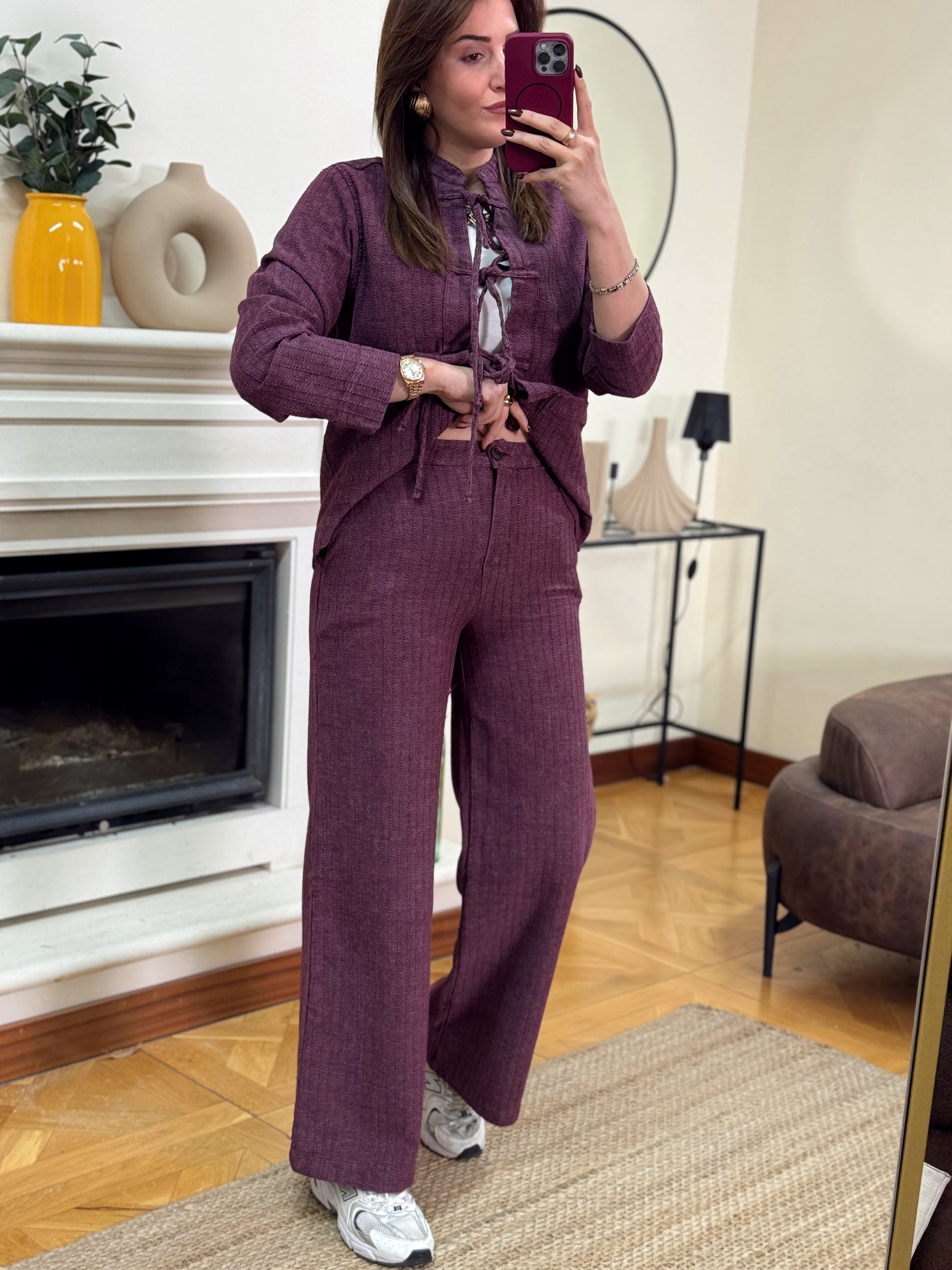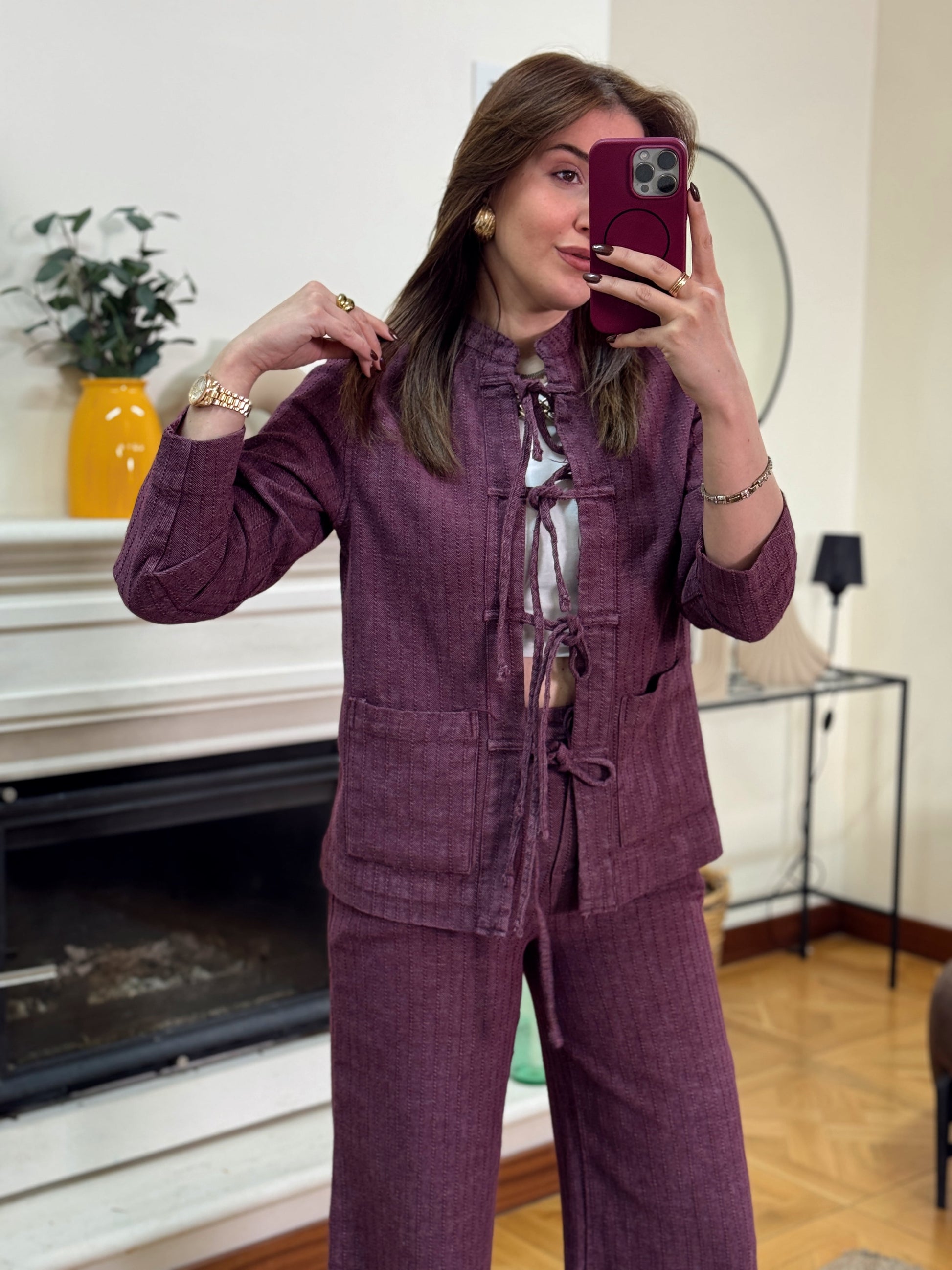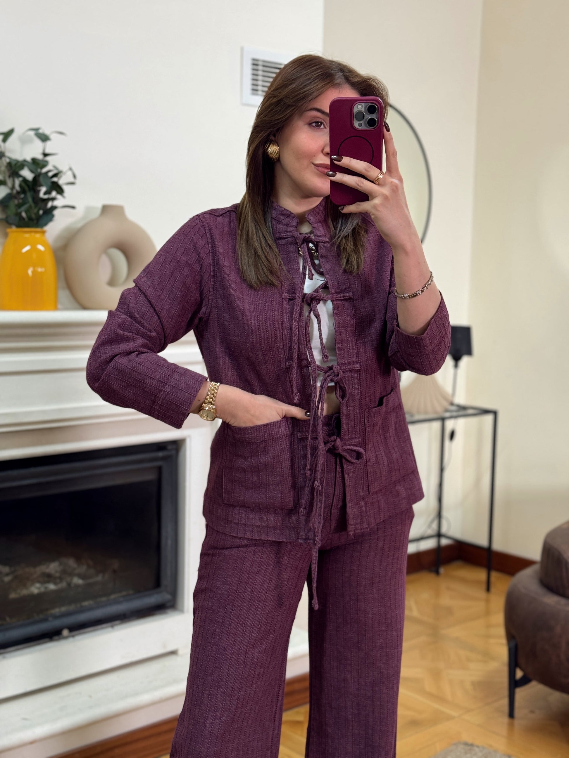 RUFFY bağlamalı yıkamalı gabardin ikili takım BORDO
