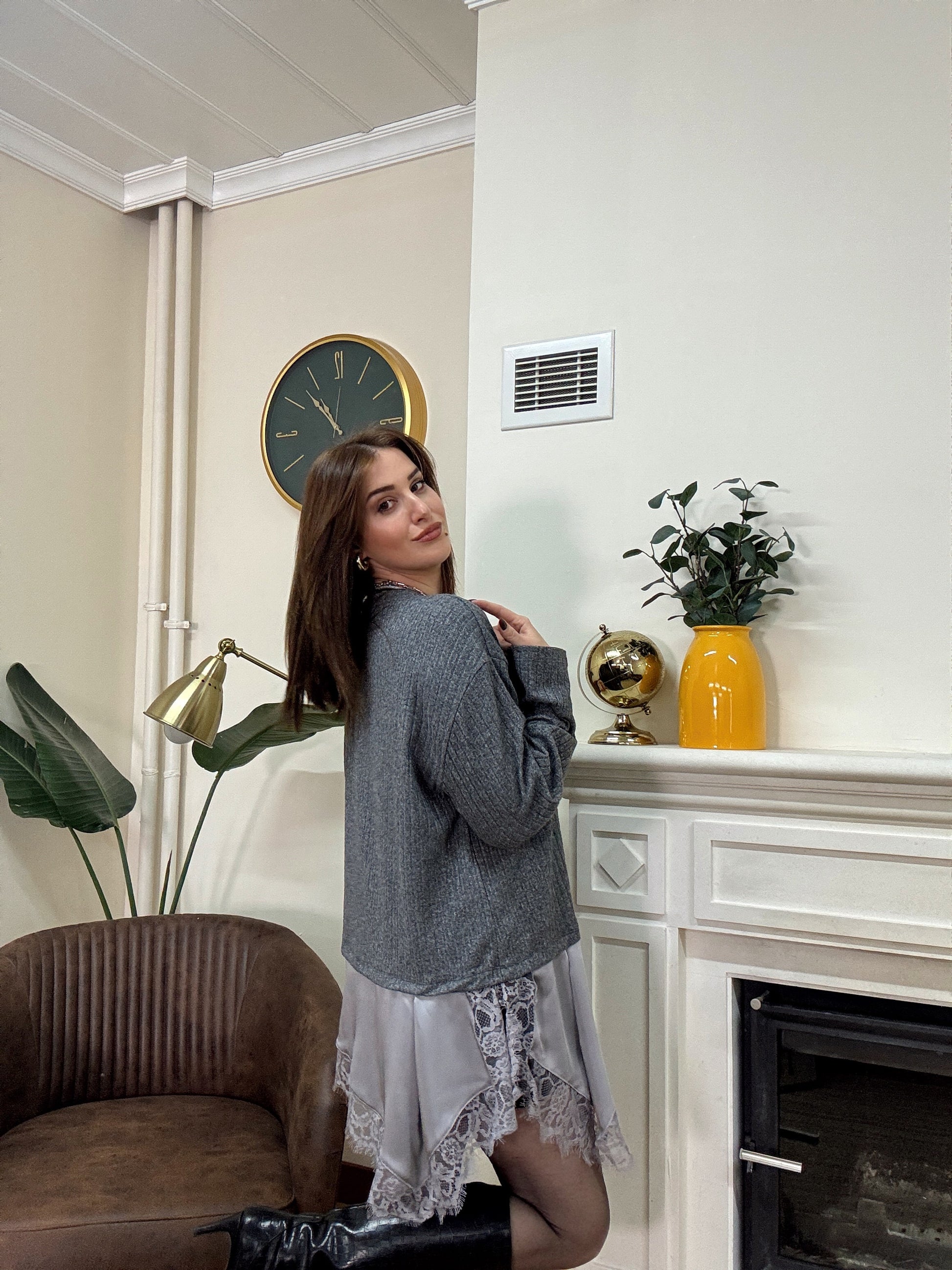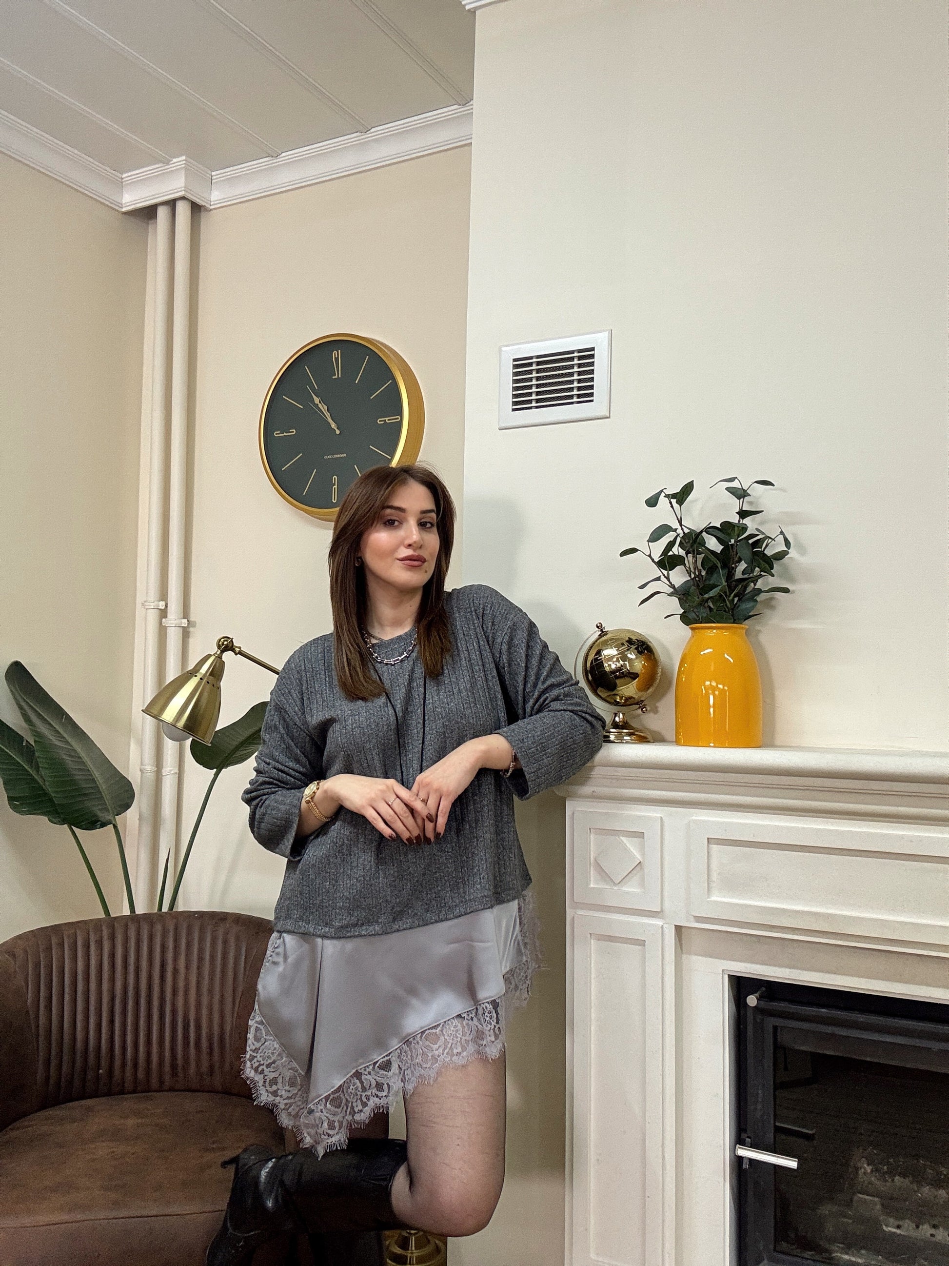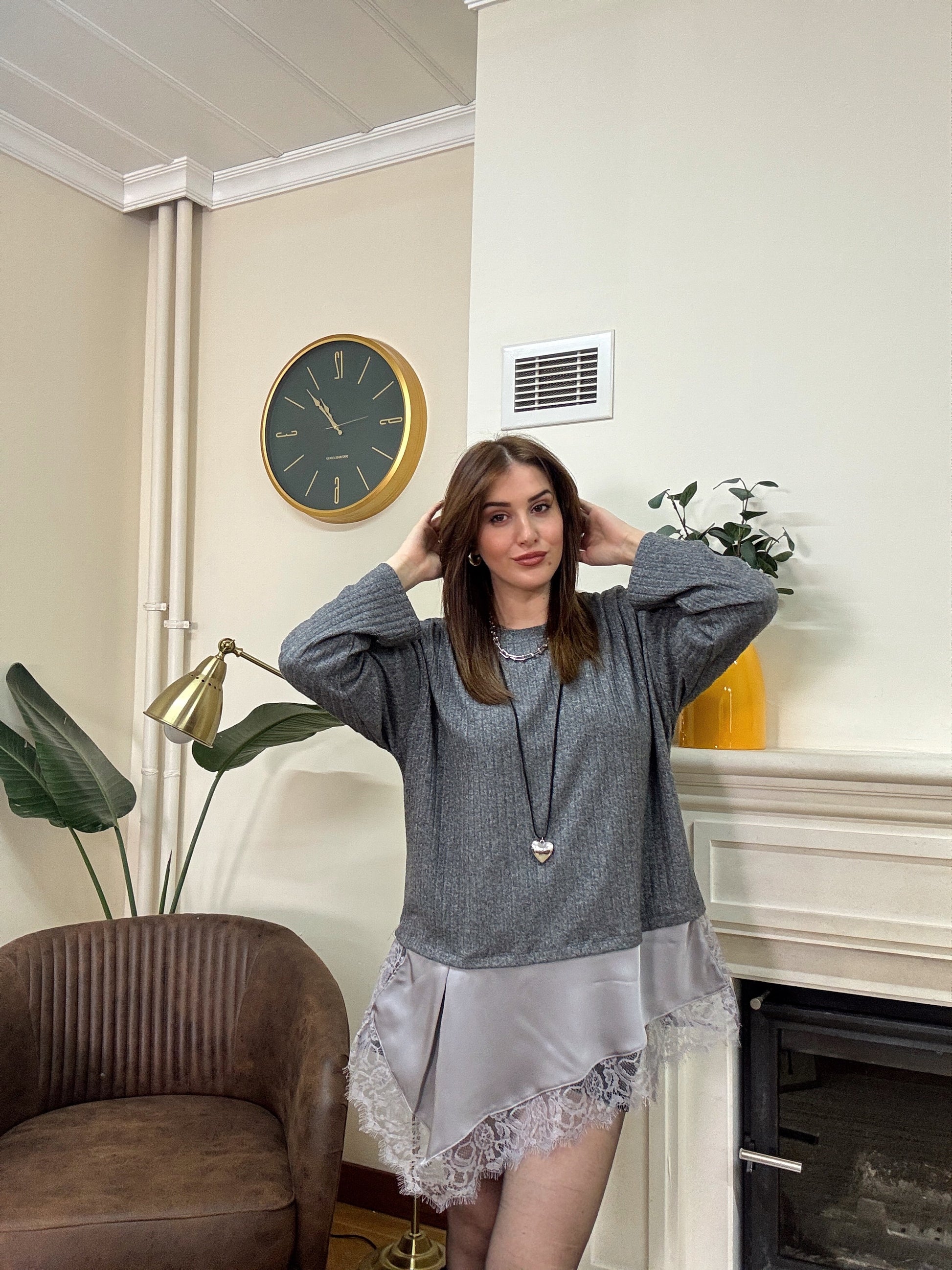 SANTRO eteği güpürlü fitilli kazak-ANTRASİT