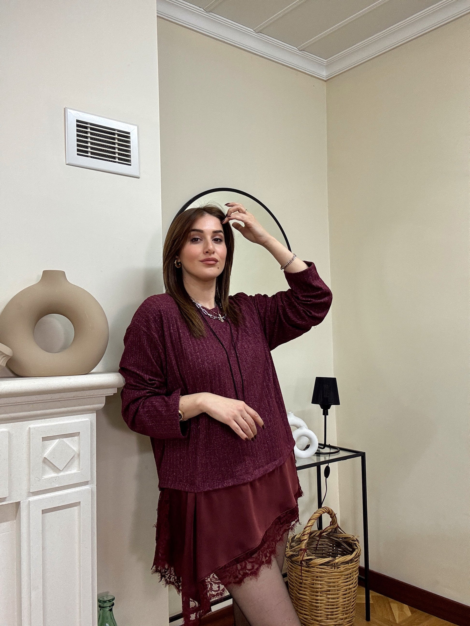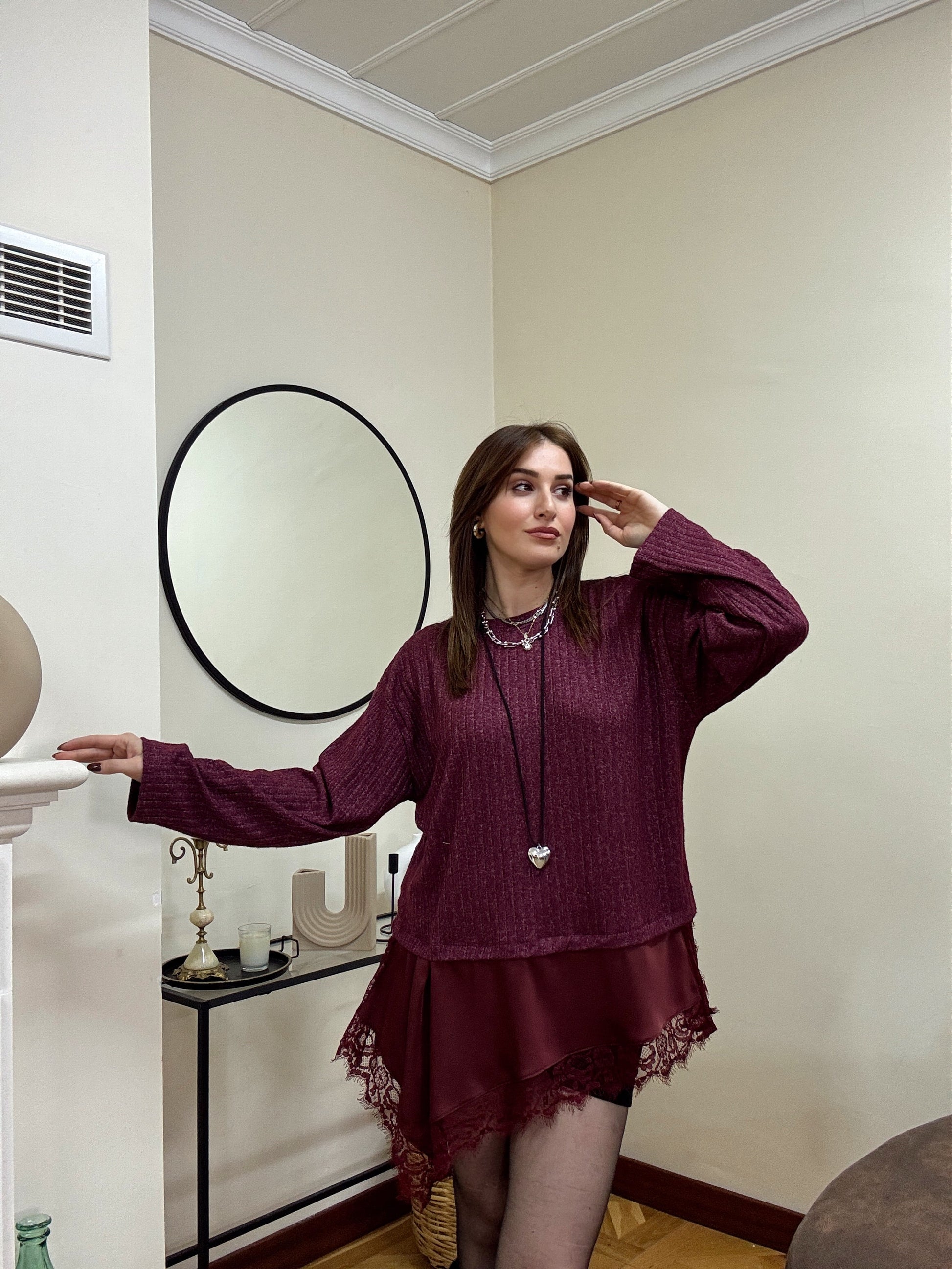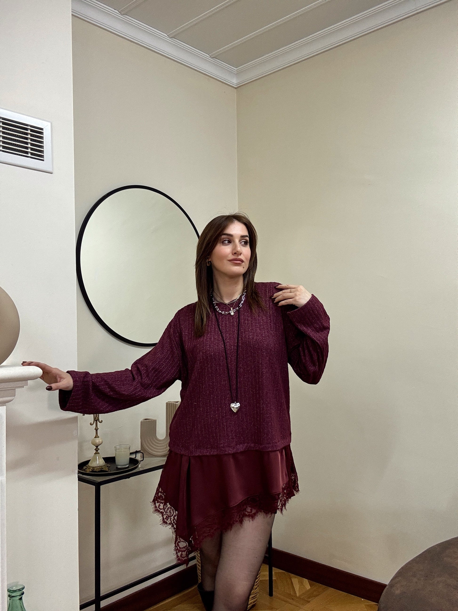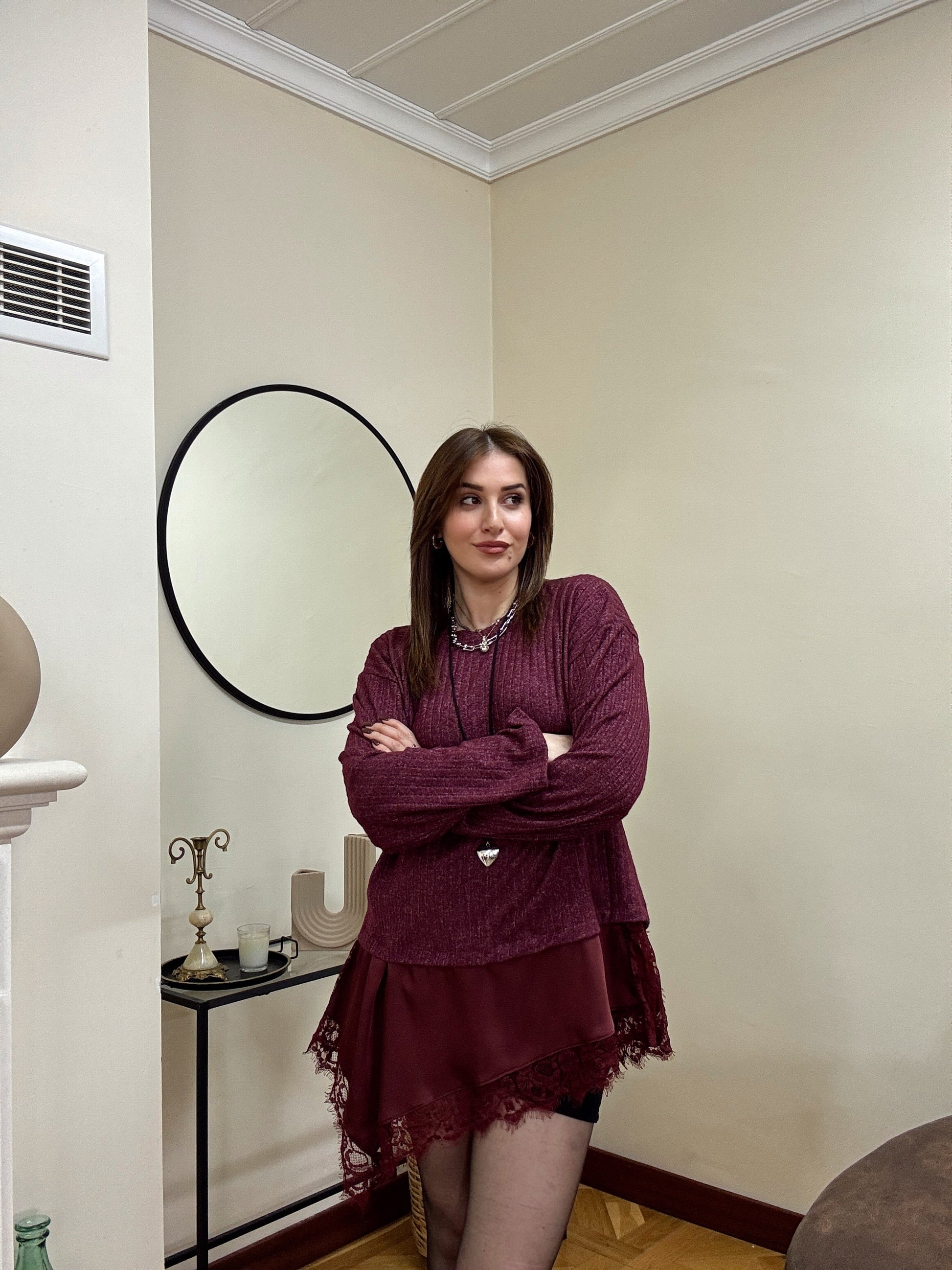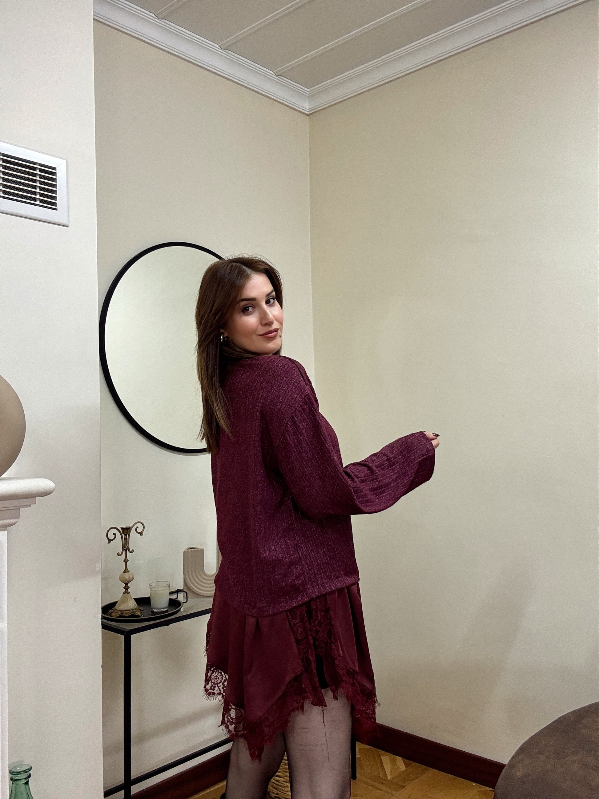 SANTRO eteği güpürlü fitilli kazak-BORDO