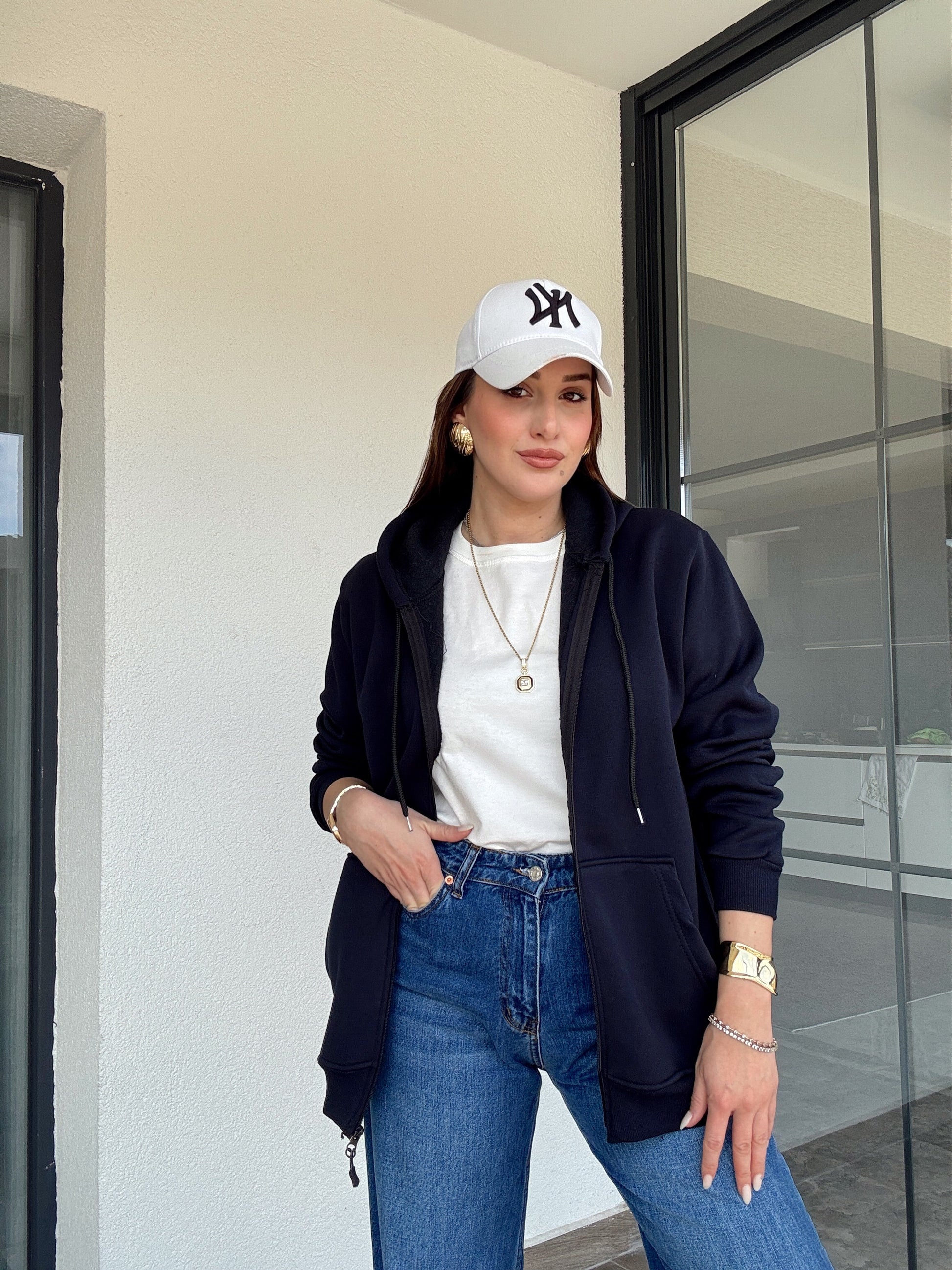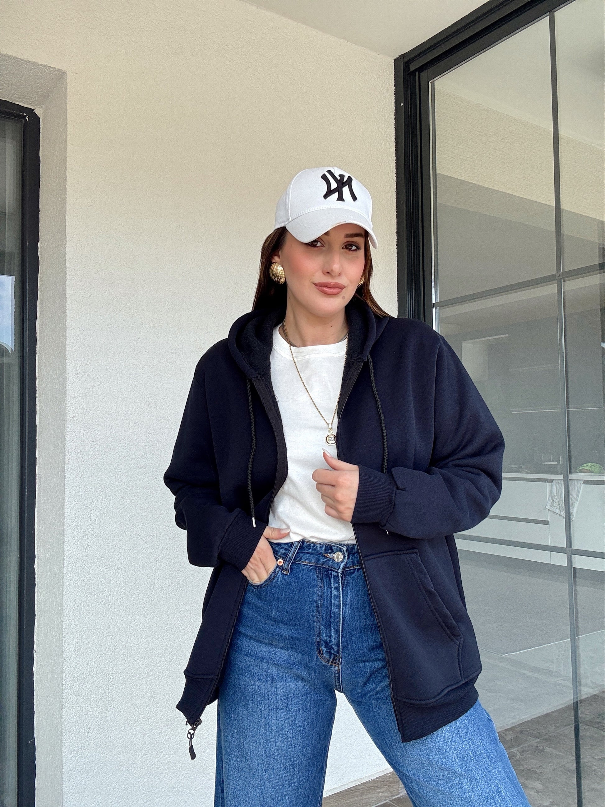 Şardonlu kapüşonlu sweatshİrt-LACİVERT