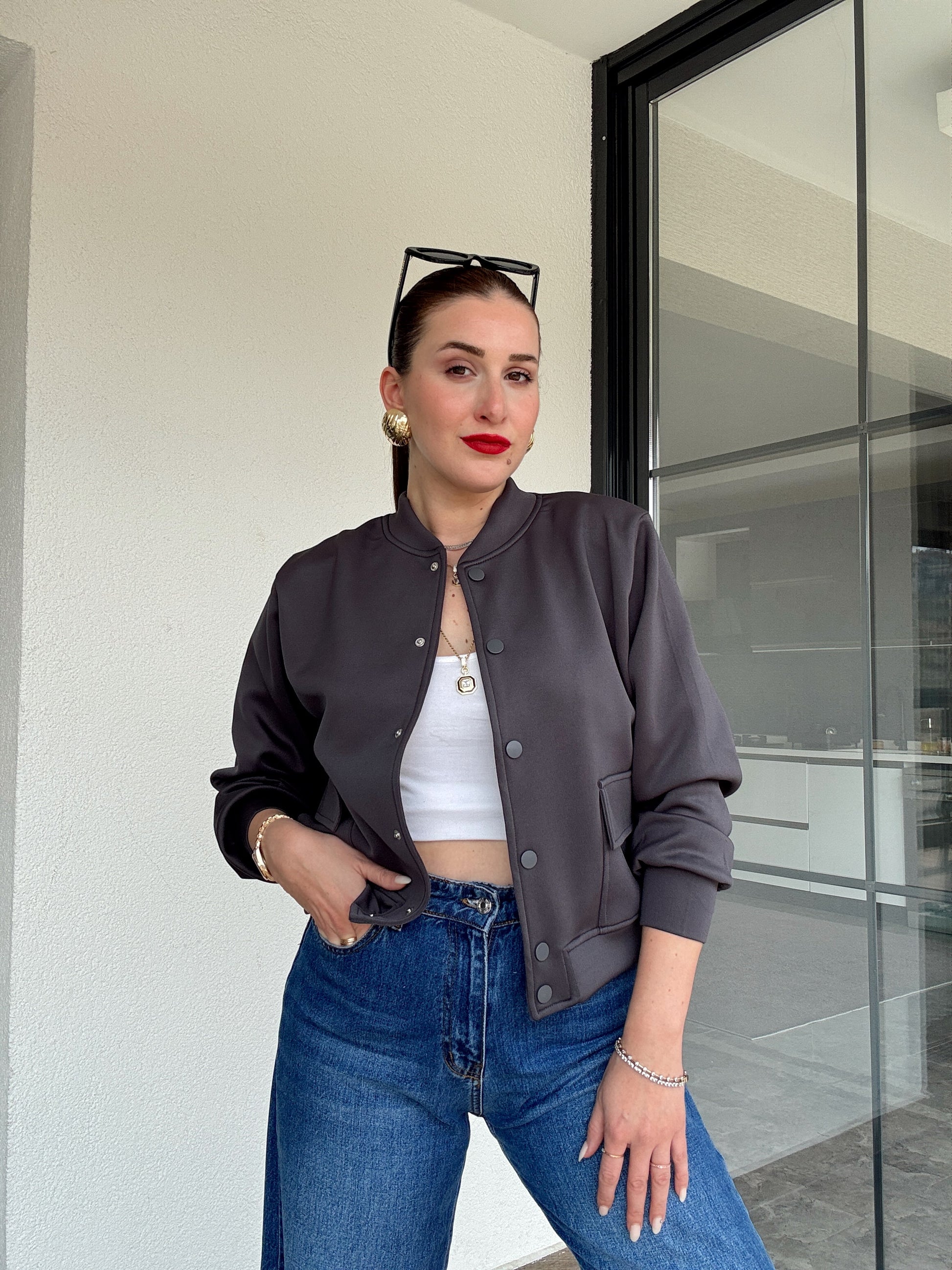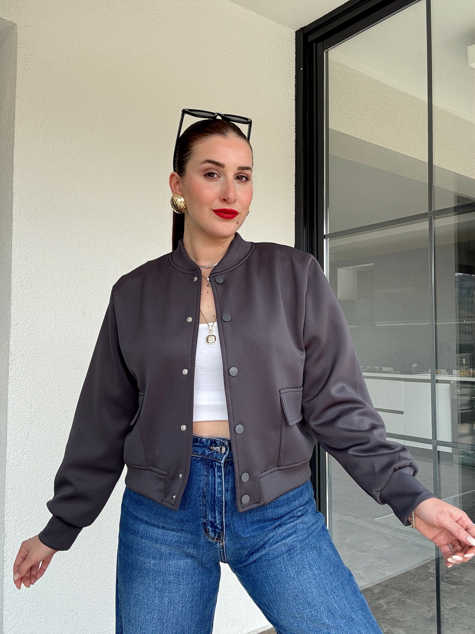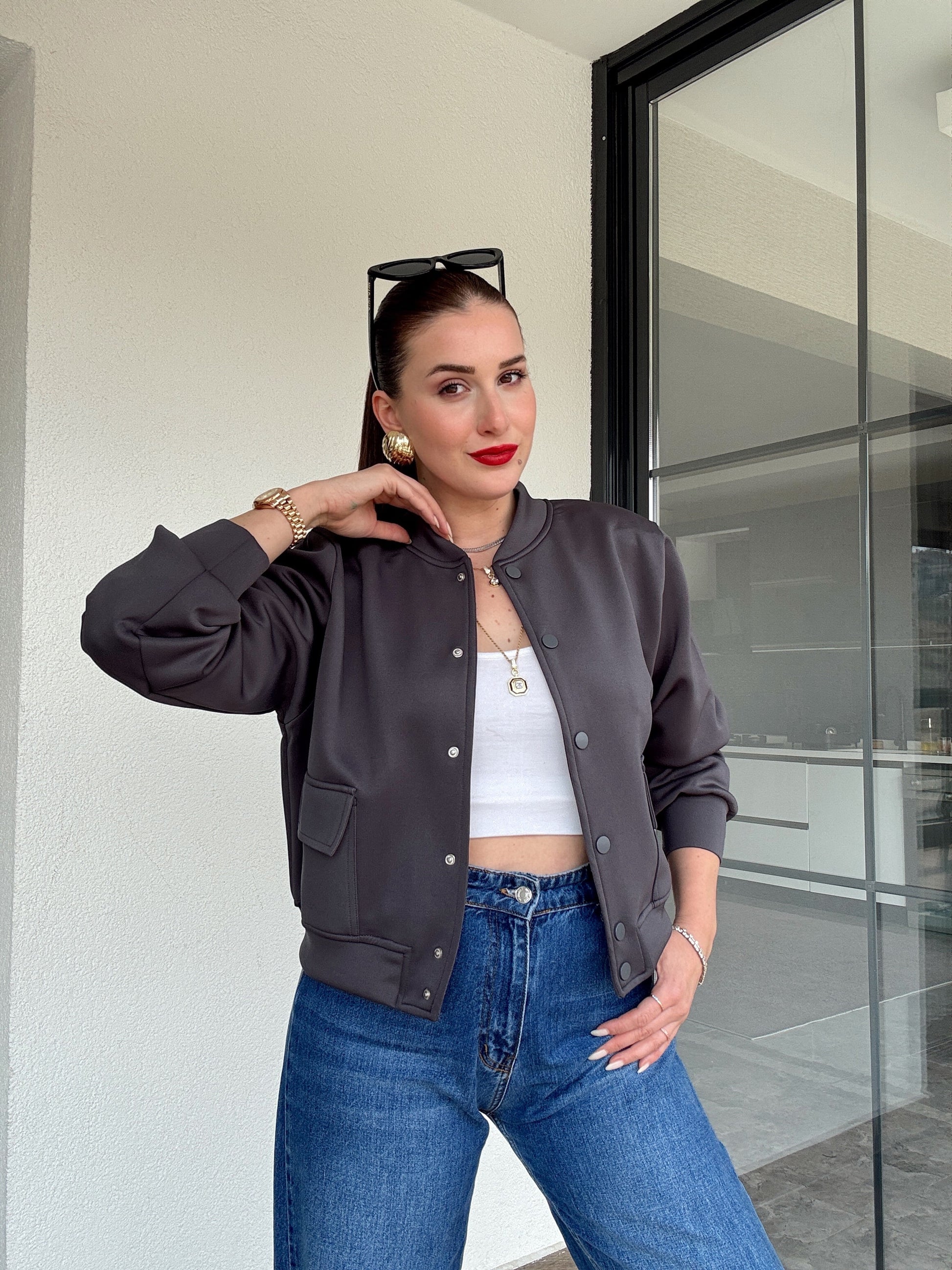 Scuba kumaş astarlı bomber ceket ANTRASİT
