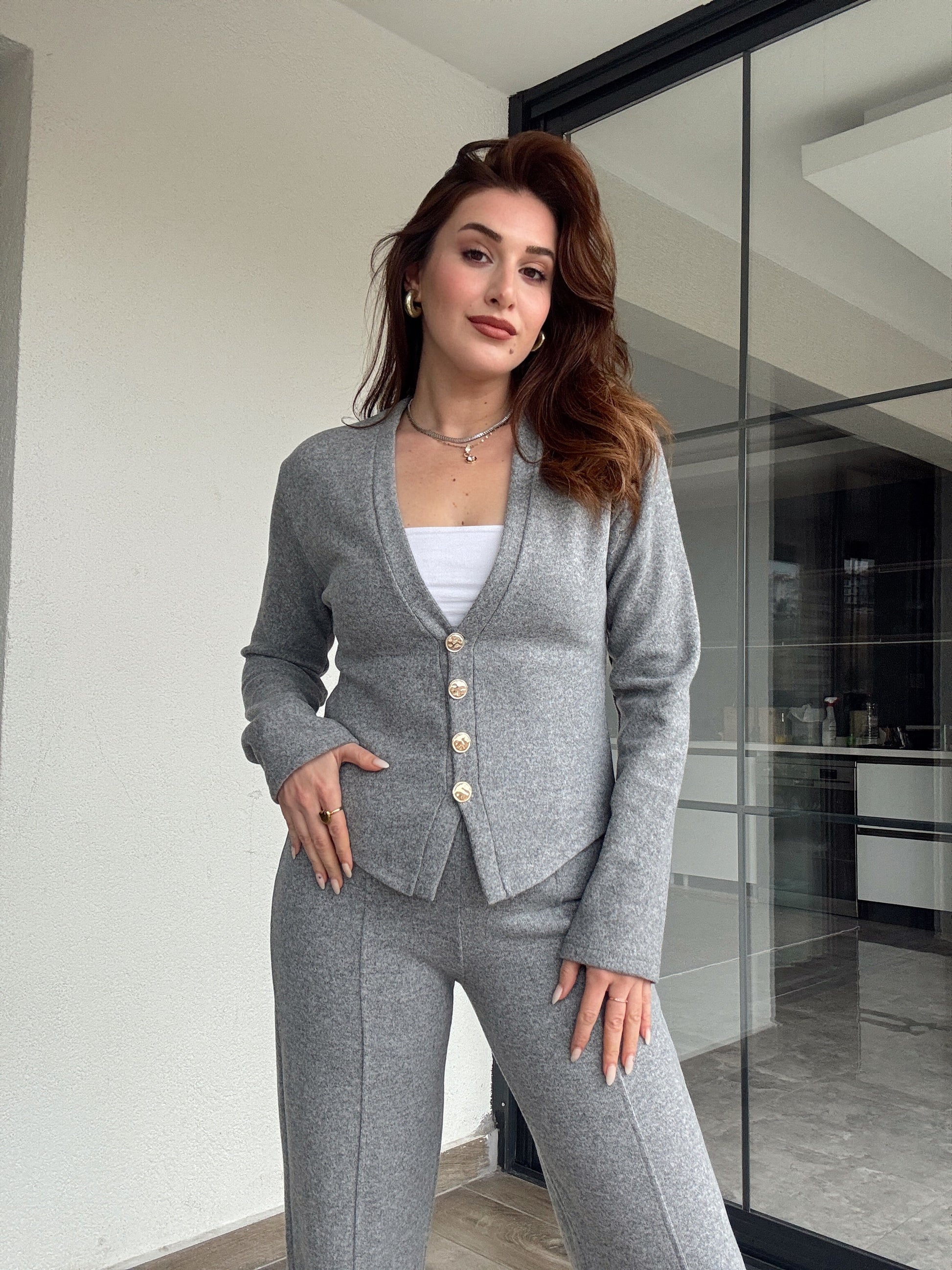 Selanik önü düğmeli ceket çimalı pantolon takım-KOYU GRİ