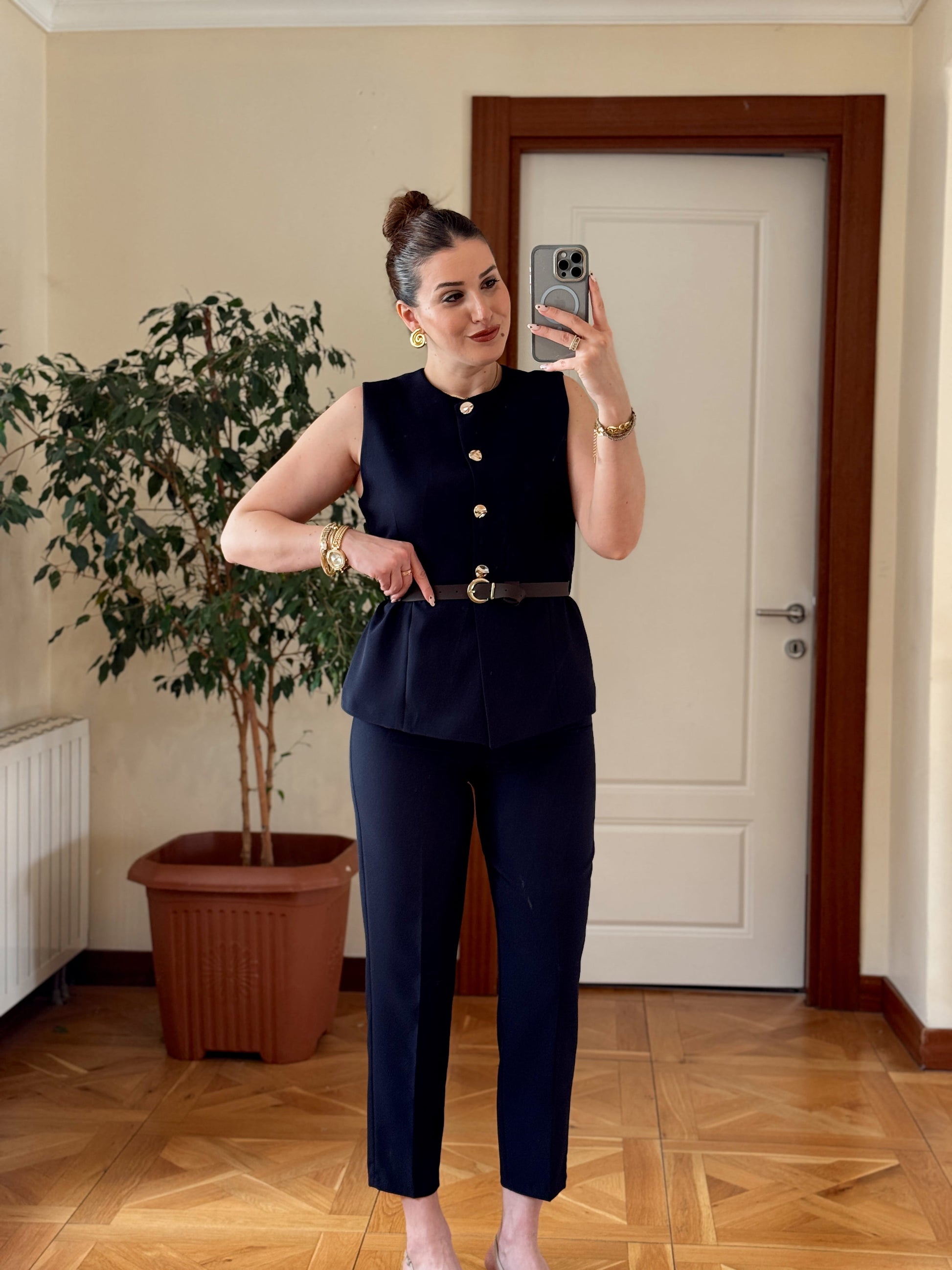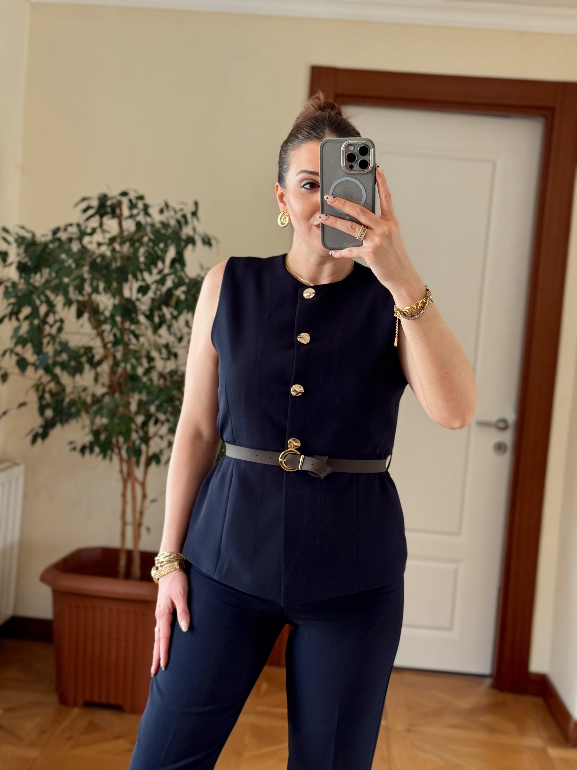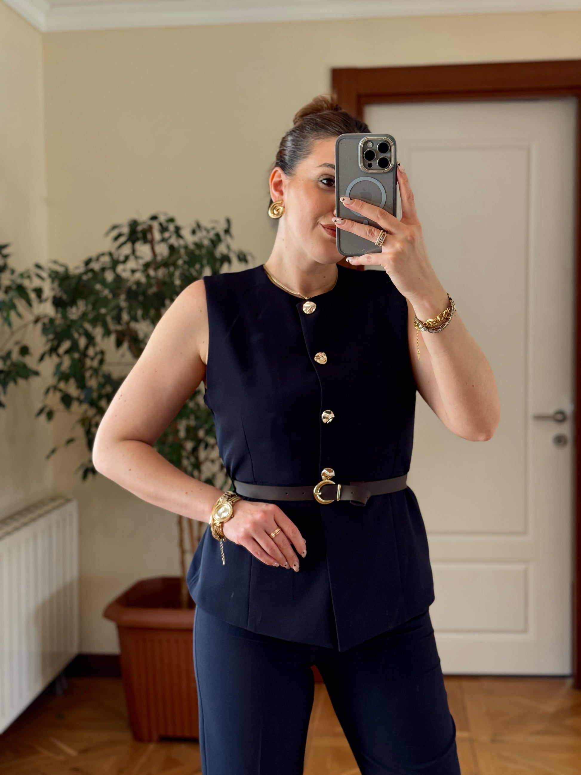 STELLA Kemerli Yelek-LACİVERT