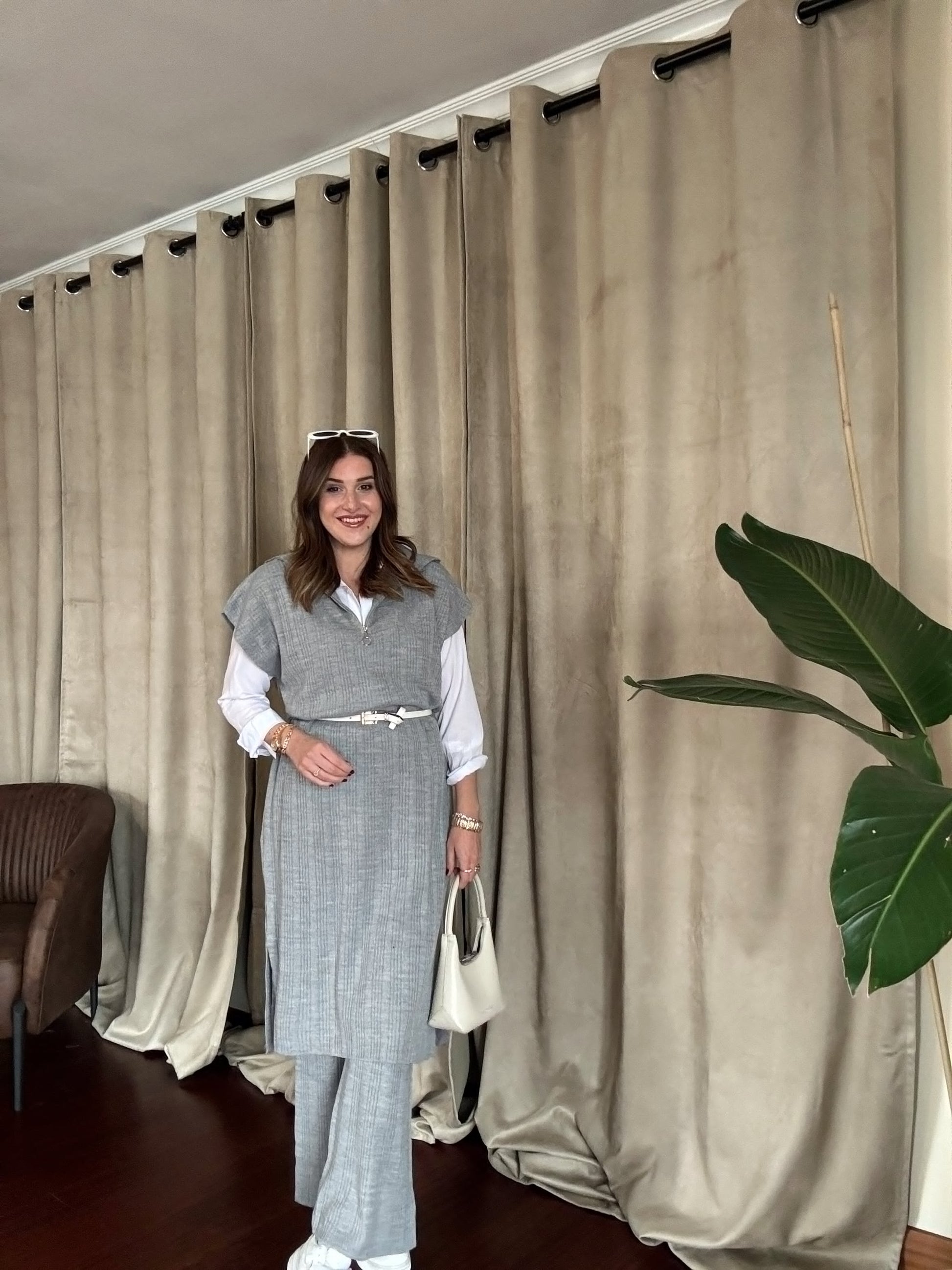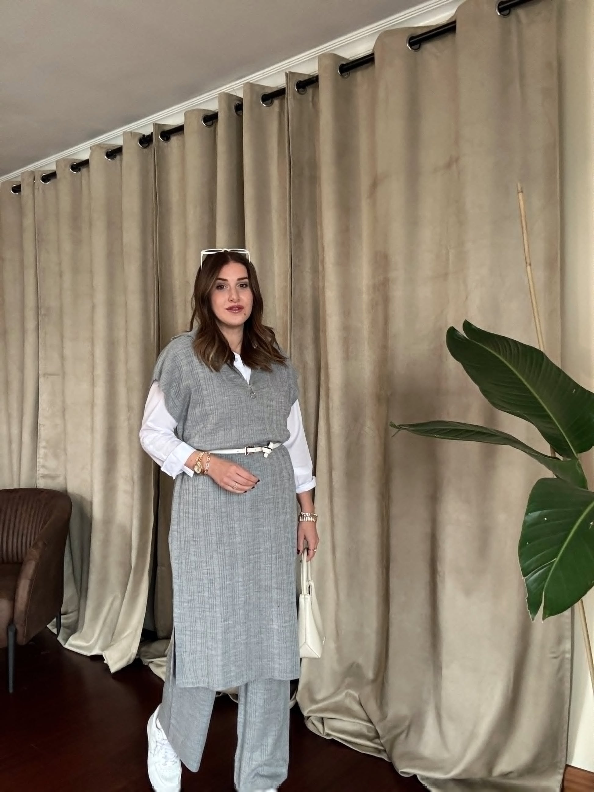 Süveterli Fitilli Triko Takım - GRİ
