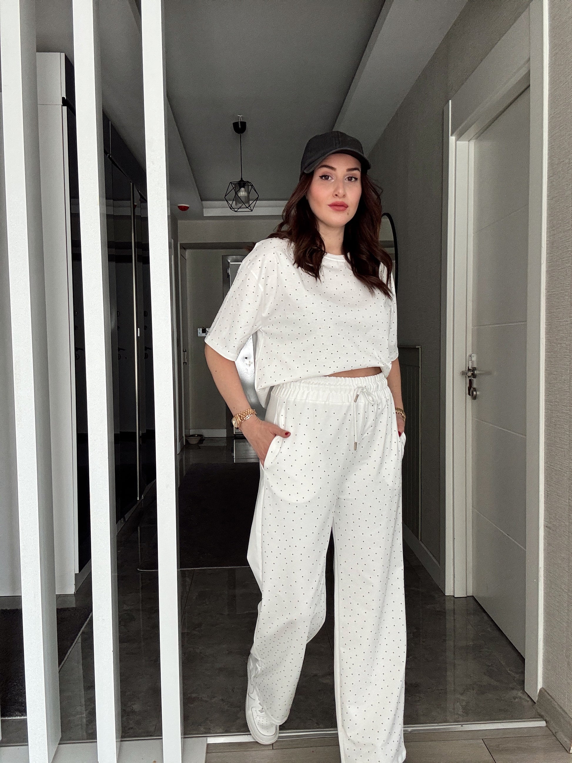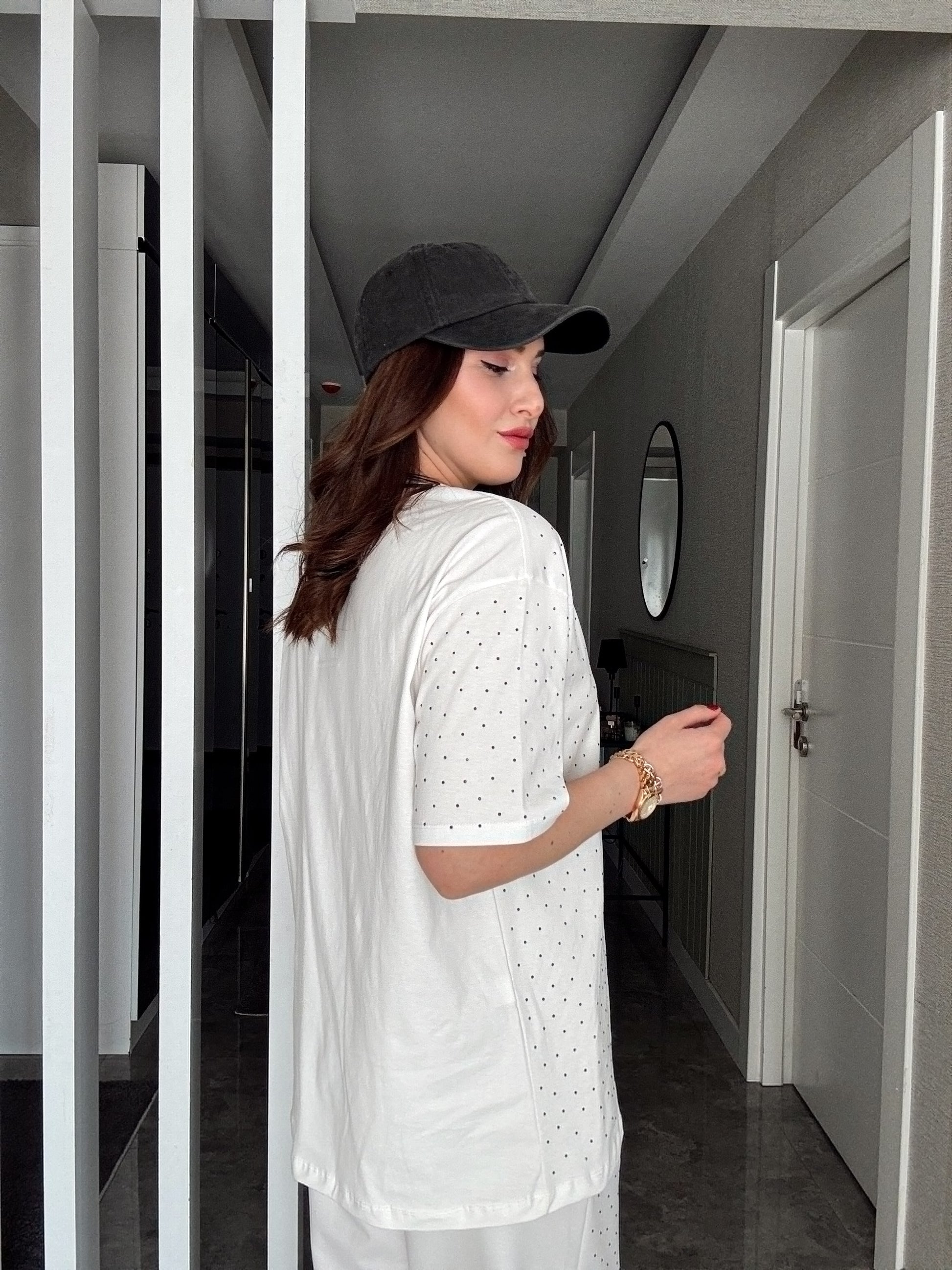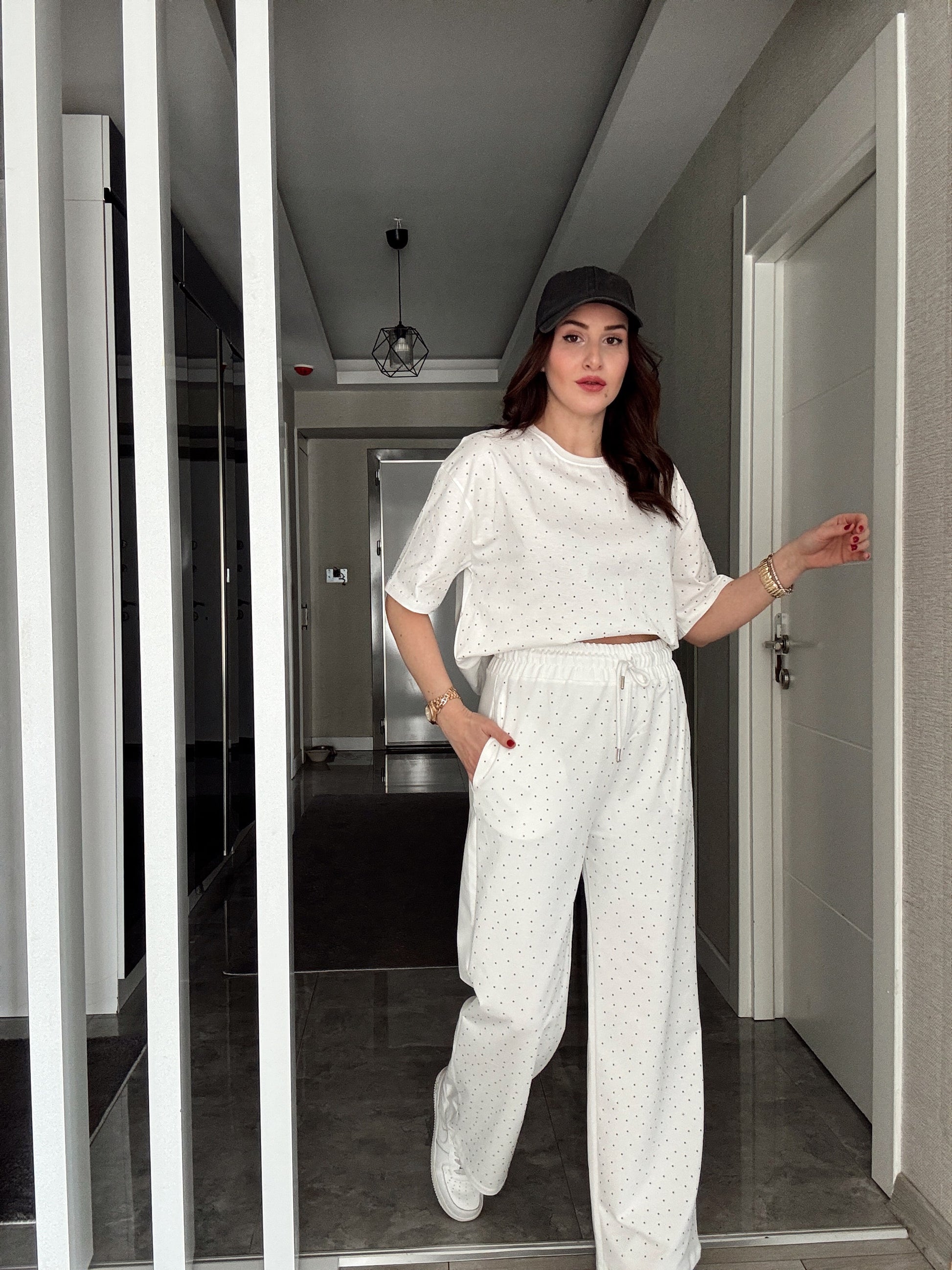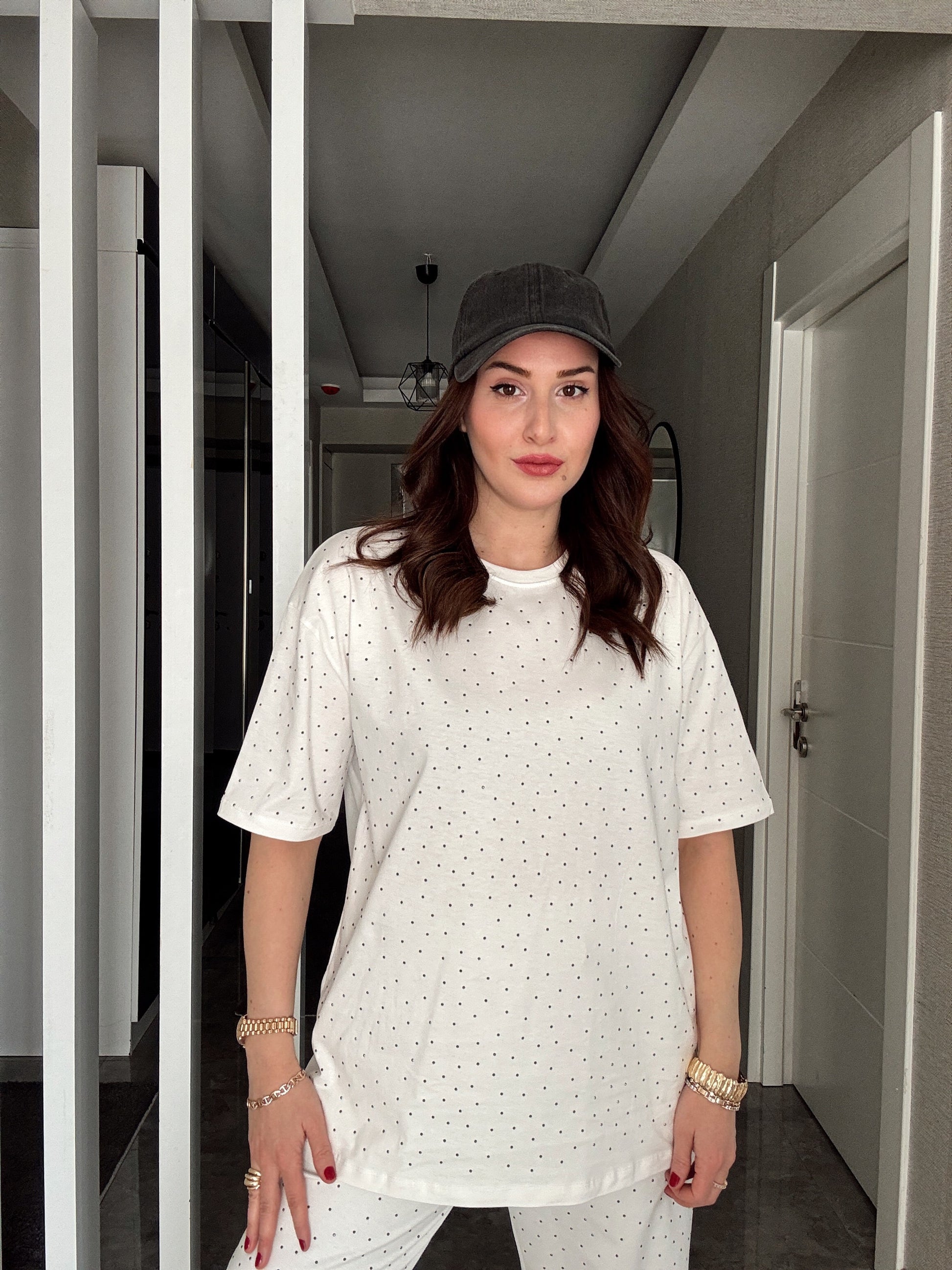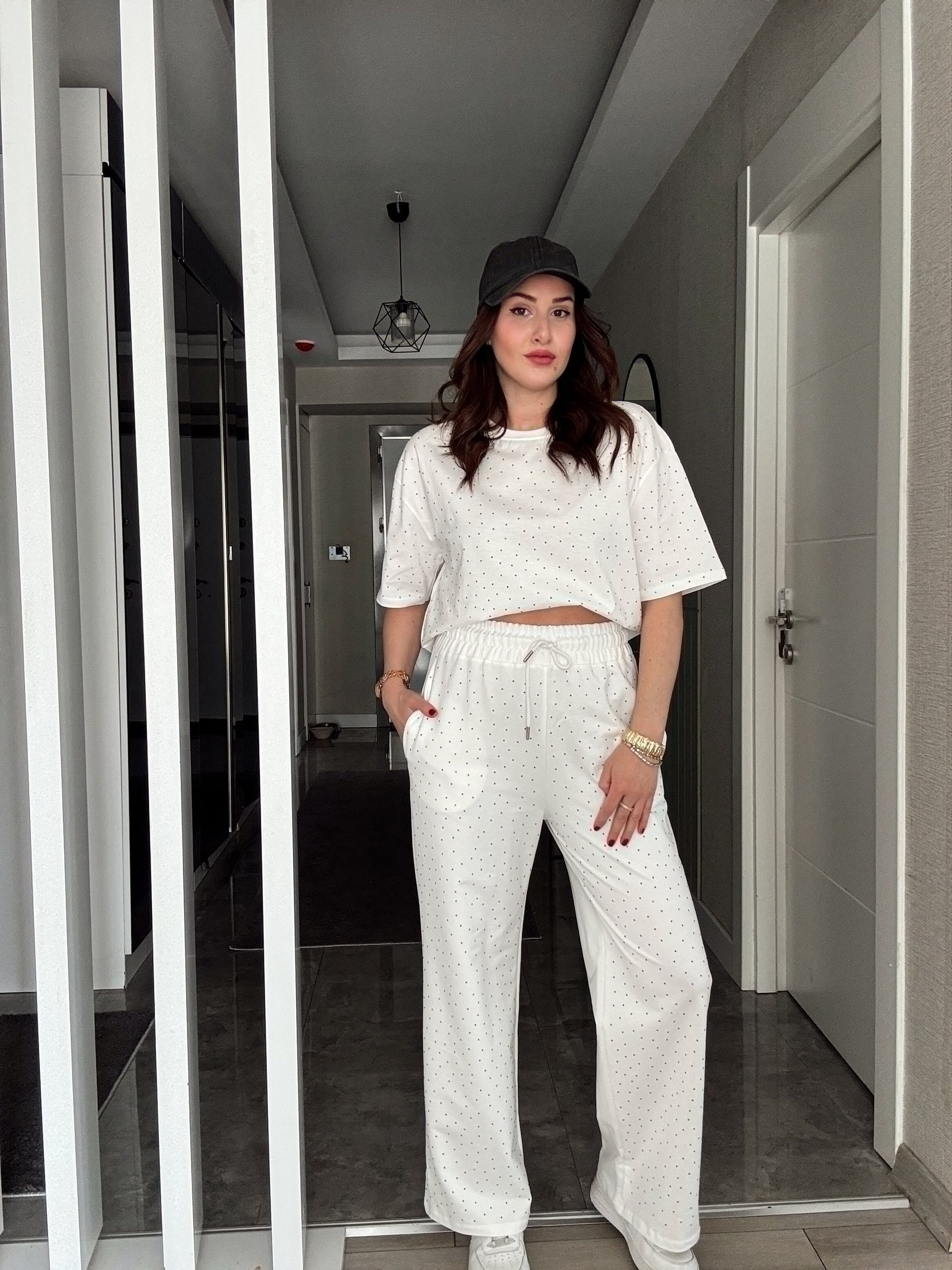 Taşlı Kısa Kol Takım -BEYAZ