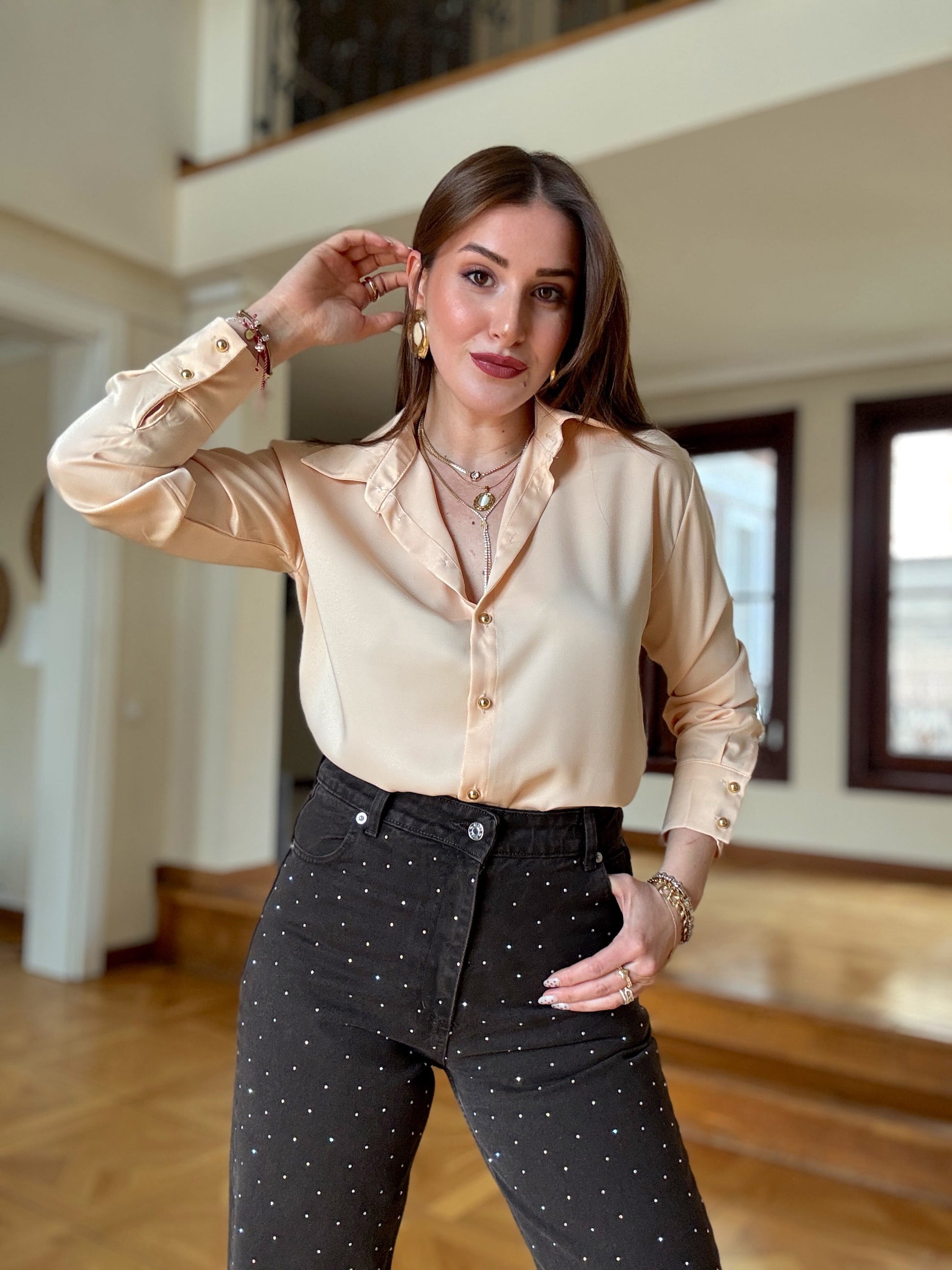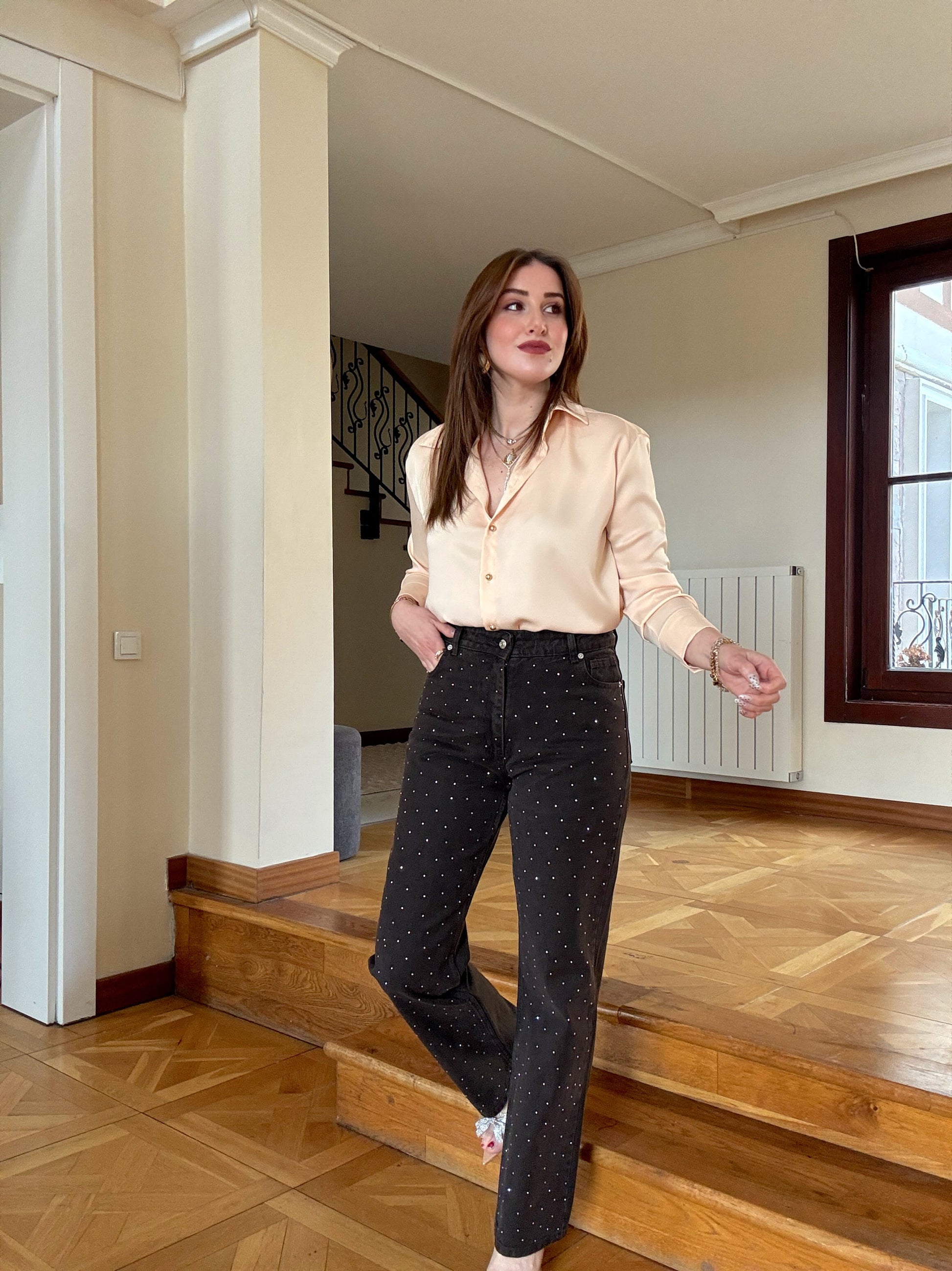 Taşlı Palazzo Jean Pantolon Kahve