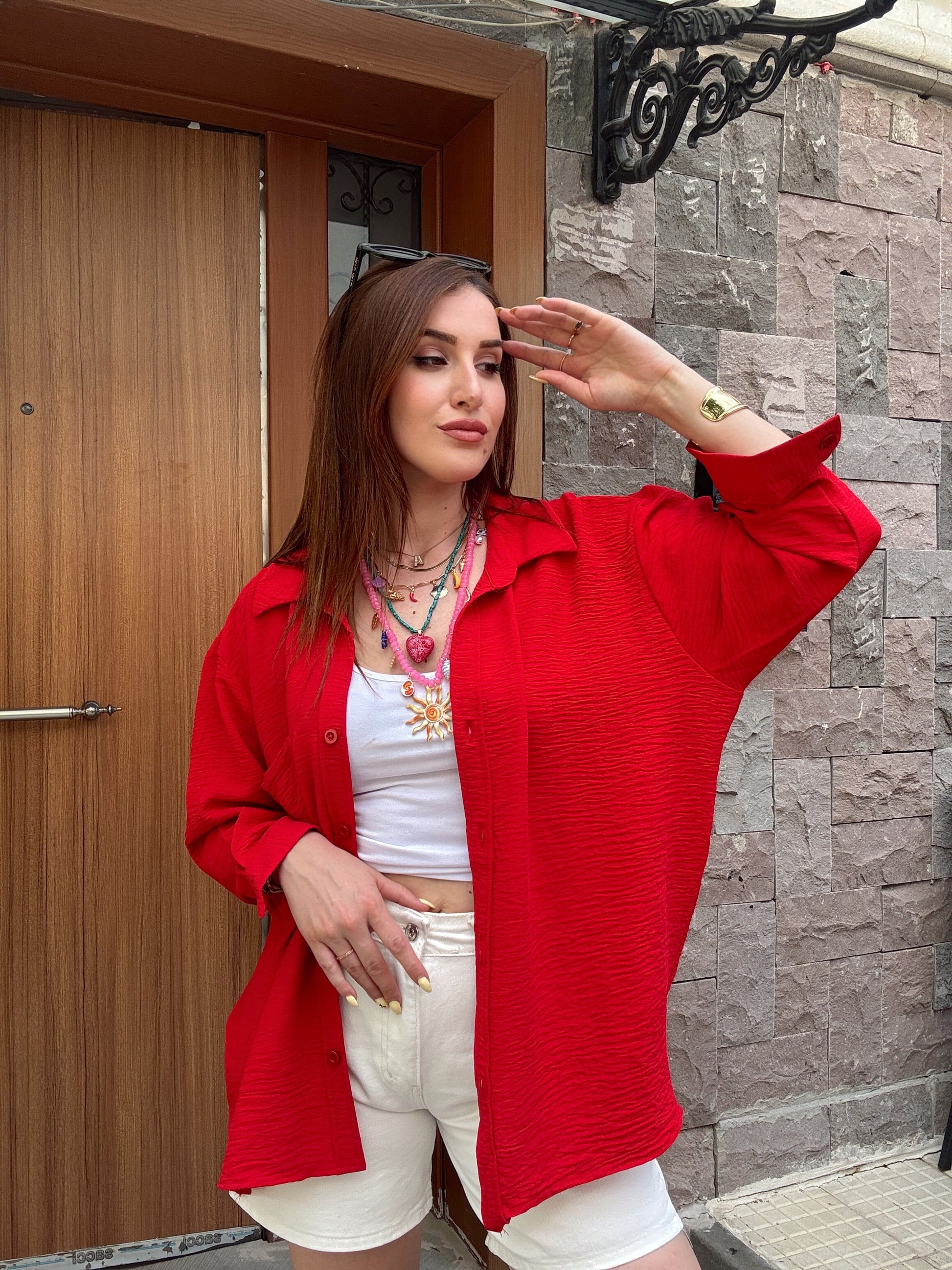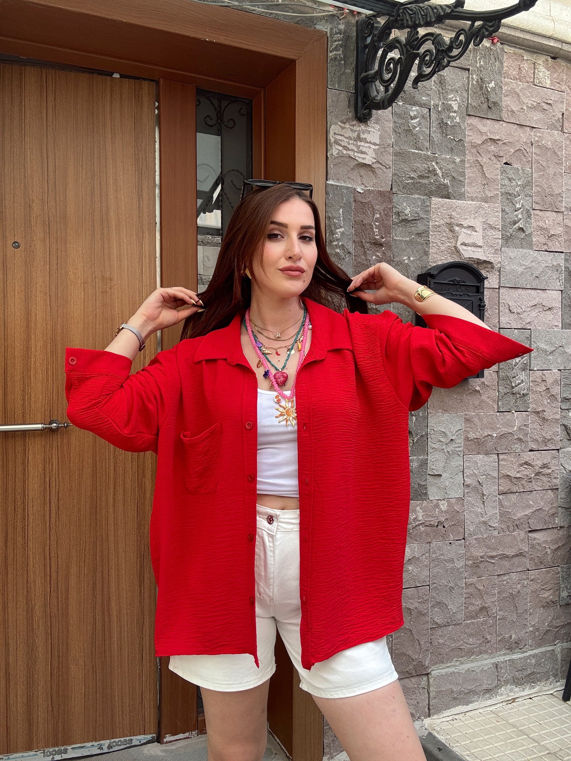 Tek cepli aerobin oversize gömlek Kırmızı