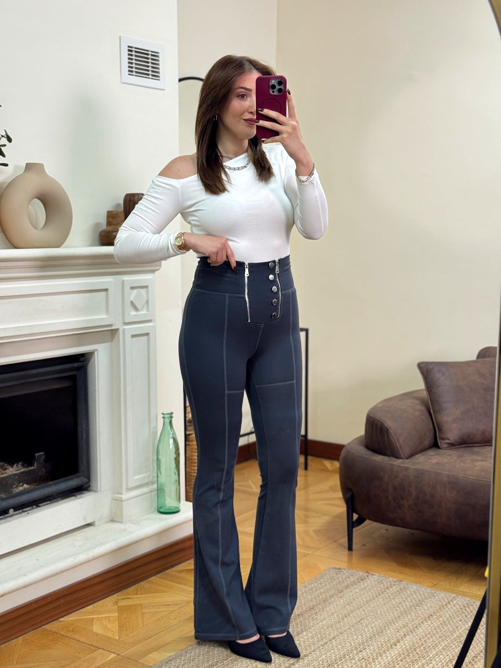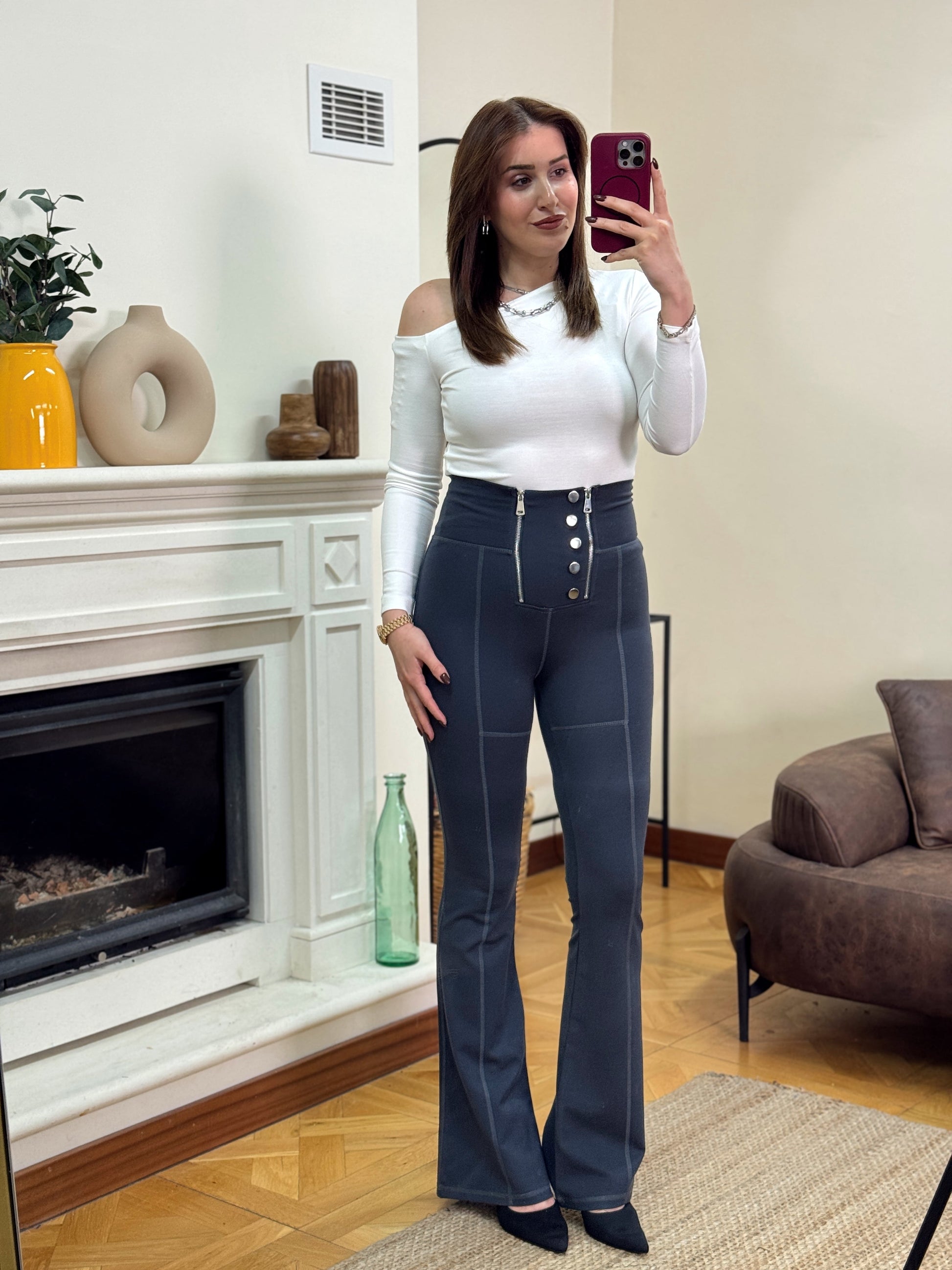 Tek omuz kayık yaka uzun kol badi-EKRU
