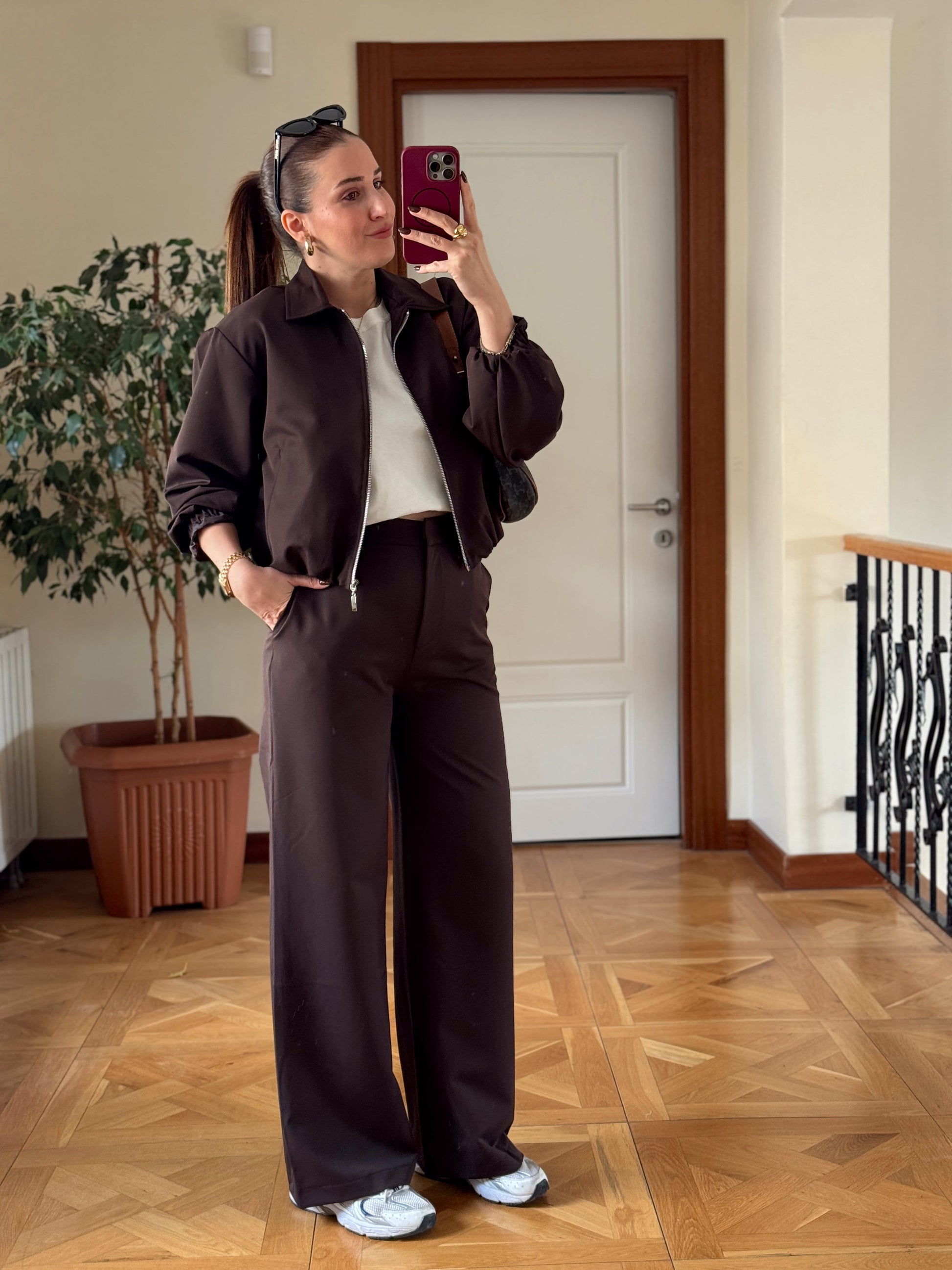 TİNA Bel büzgülü cepli premium ceket KAHVERENGİ