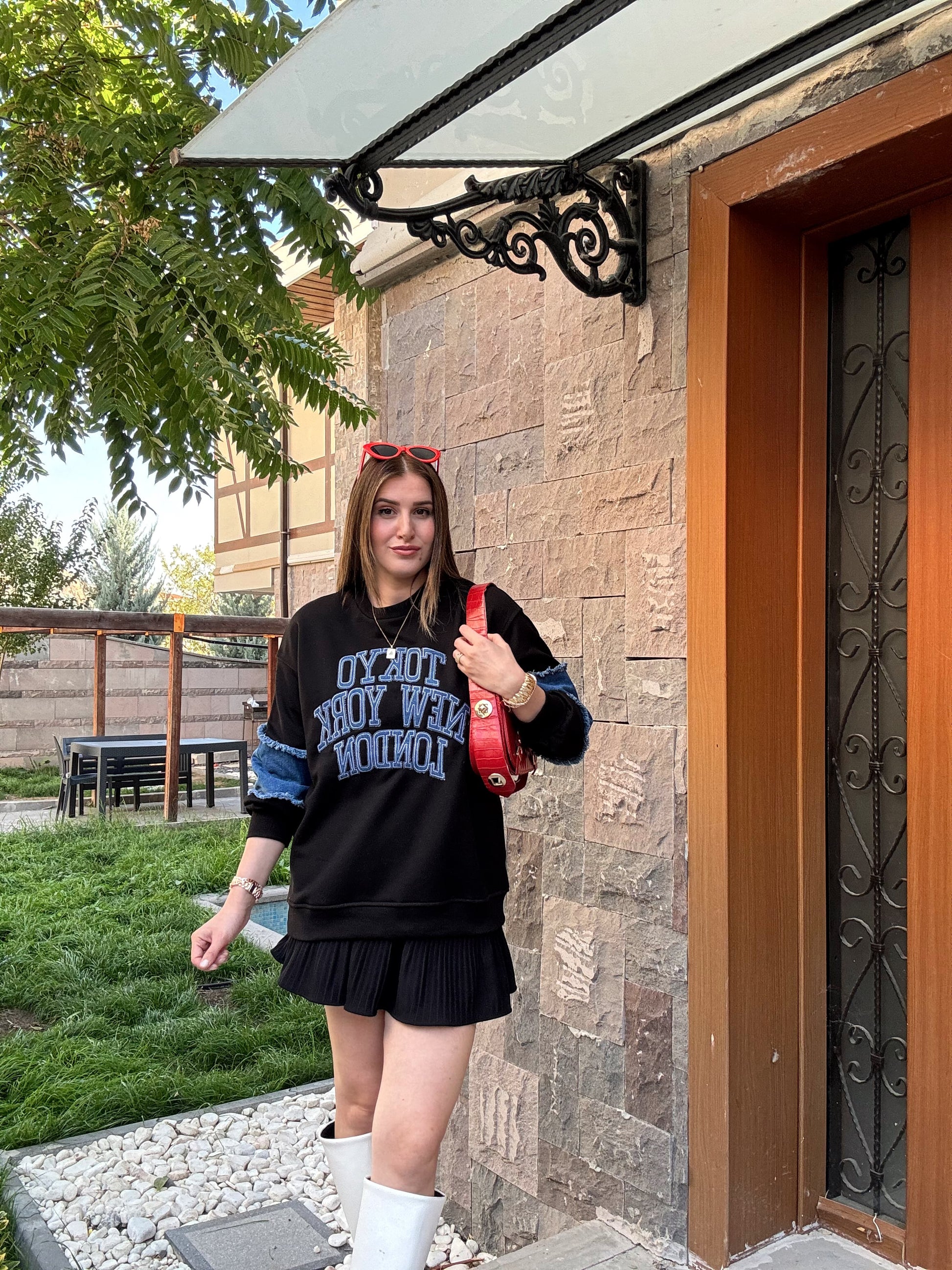 TOKYO Kot Garnili SweatShirt - SİYAH