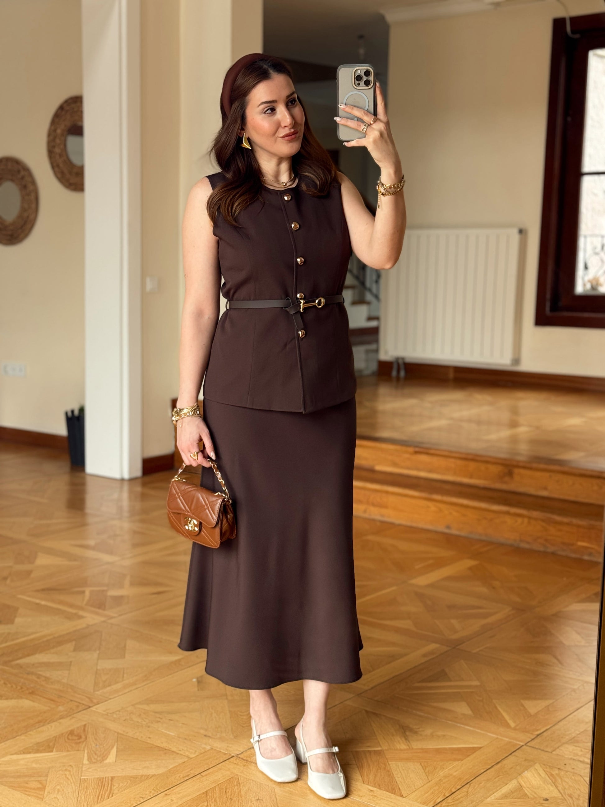 TORİNO Kemerli Yelek-KAHVERENGİ