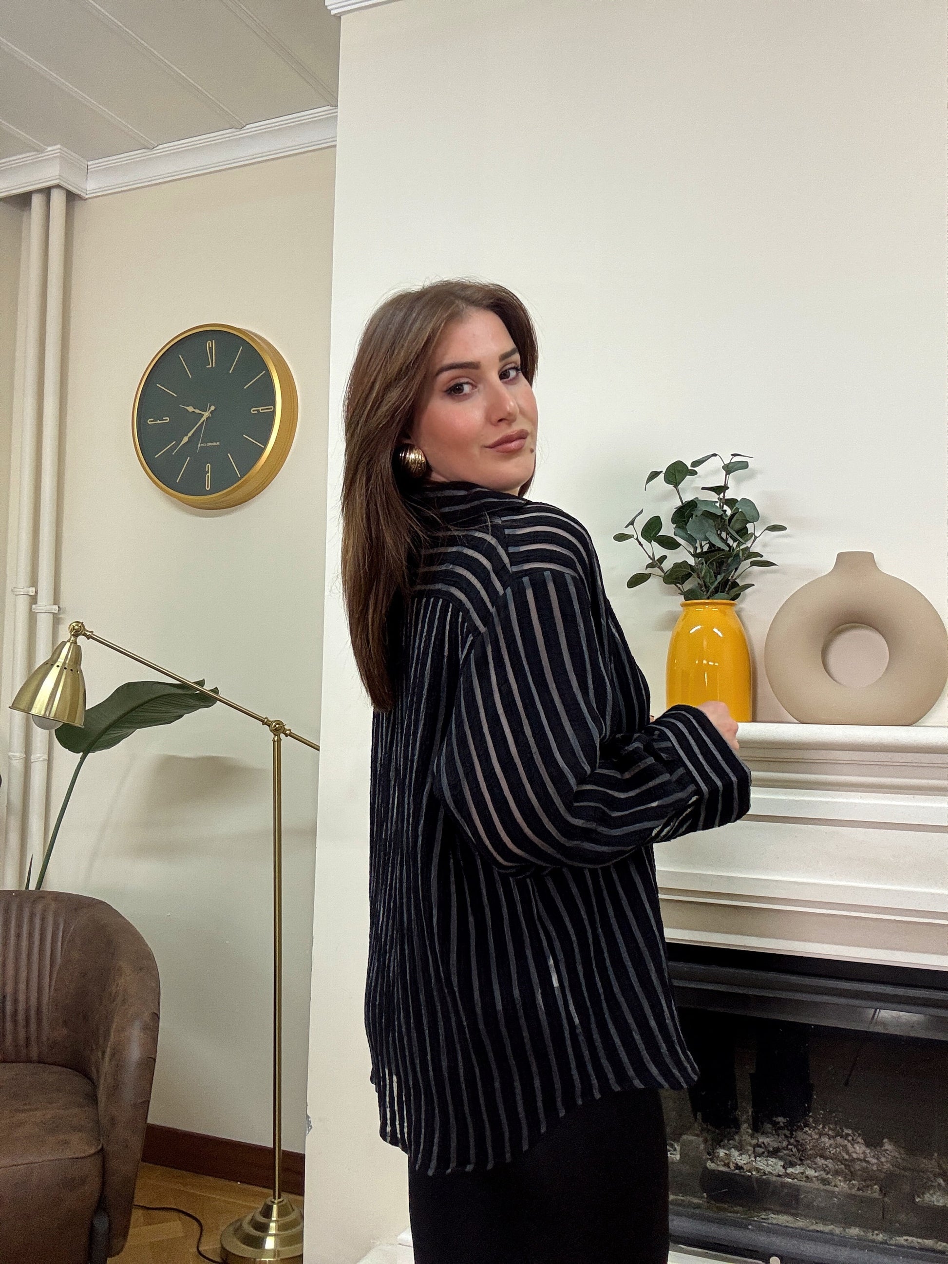 Transparan içi atletli şeritli oversize gömlek SİYAH