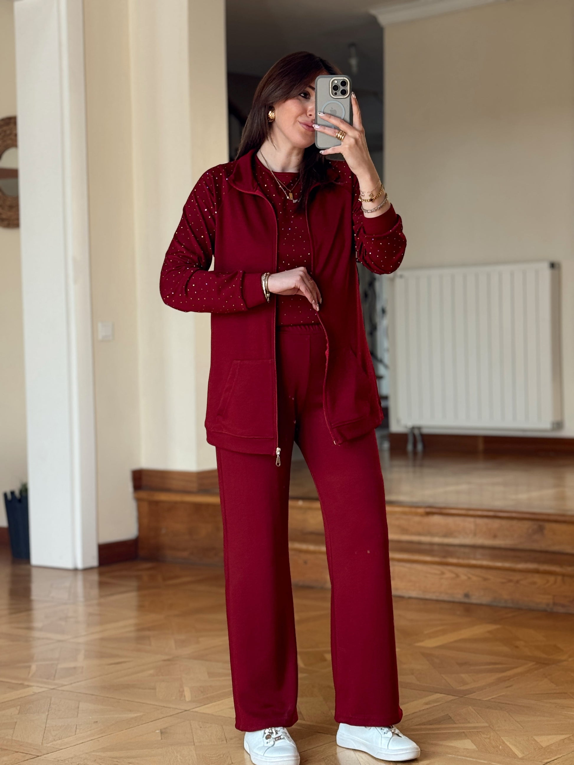 Üçlü Taşlı Oys Takım-BORDO