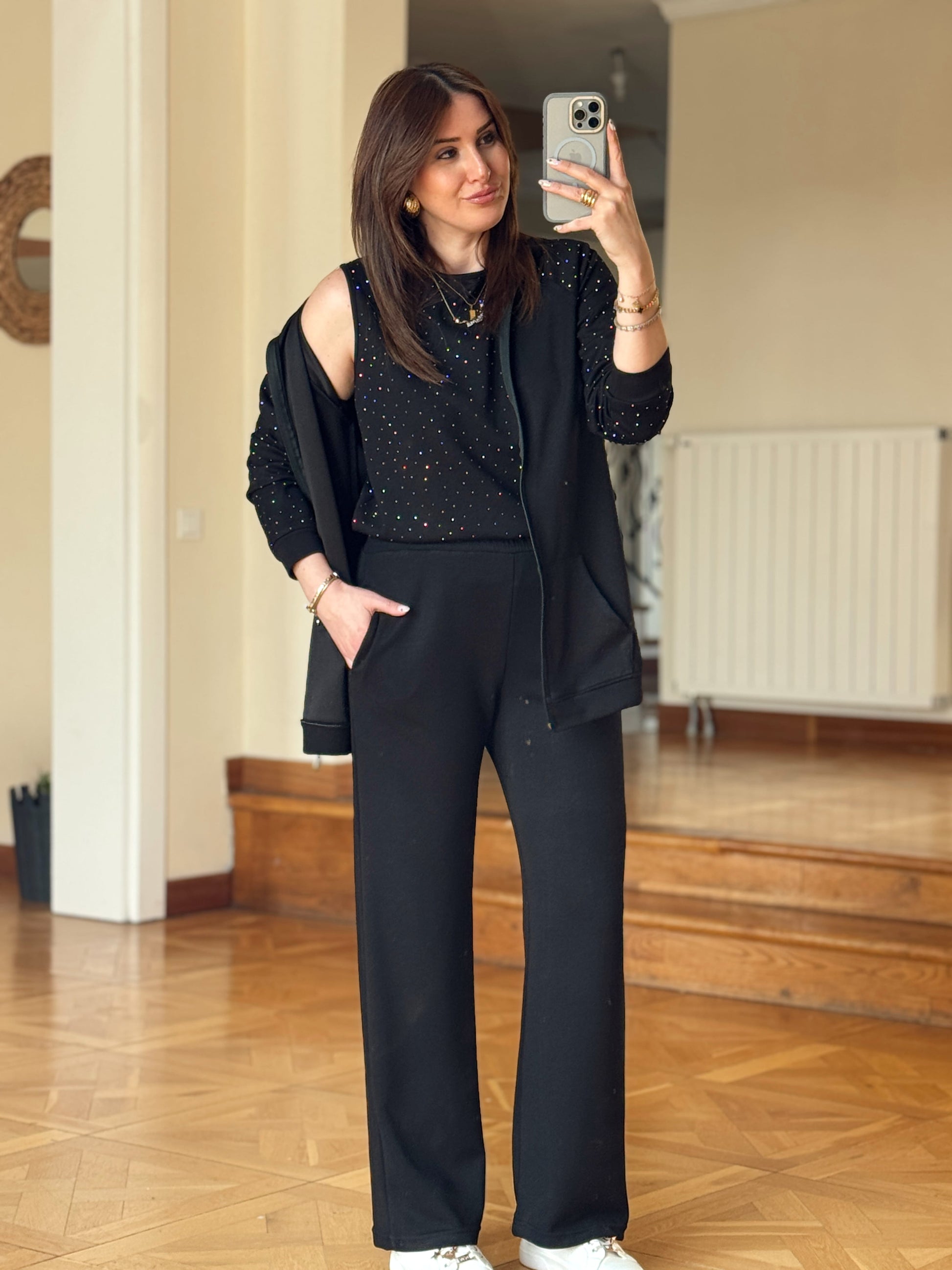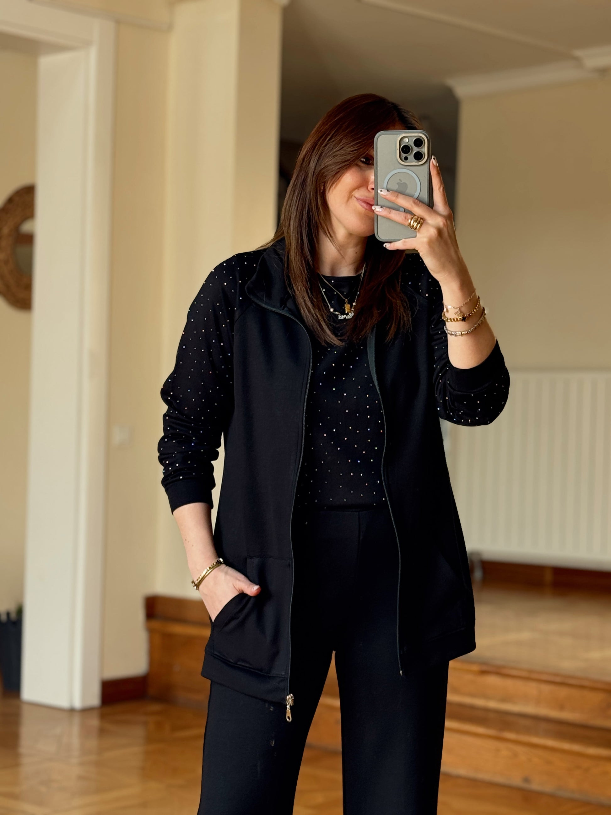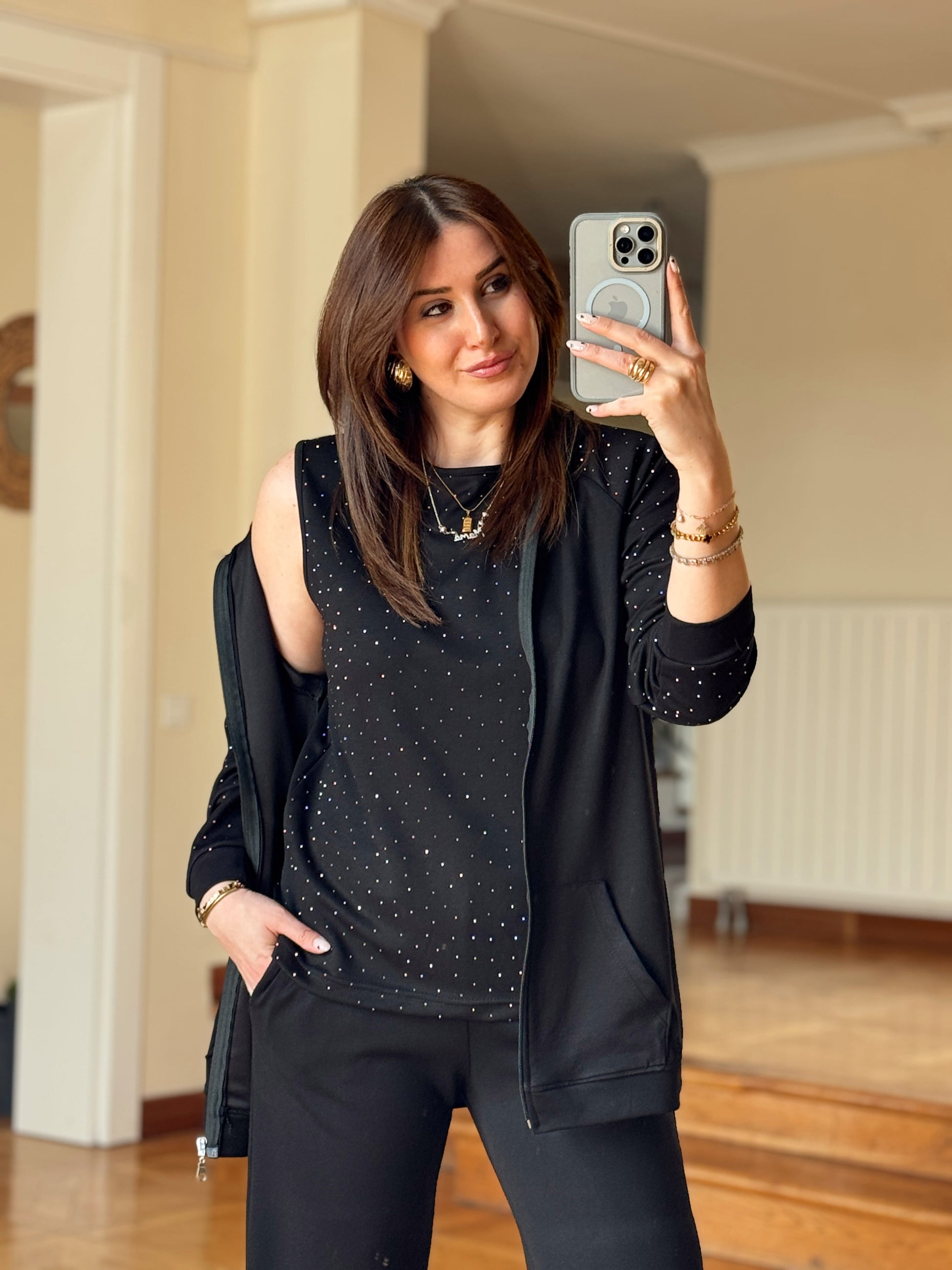 Üçlü Taşlı Oys Takım-SİYAH