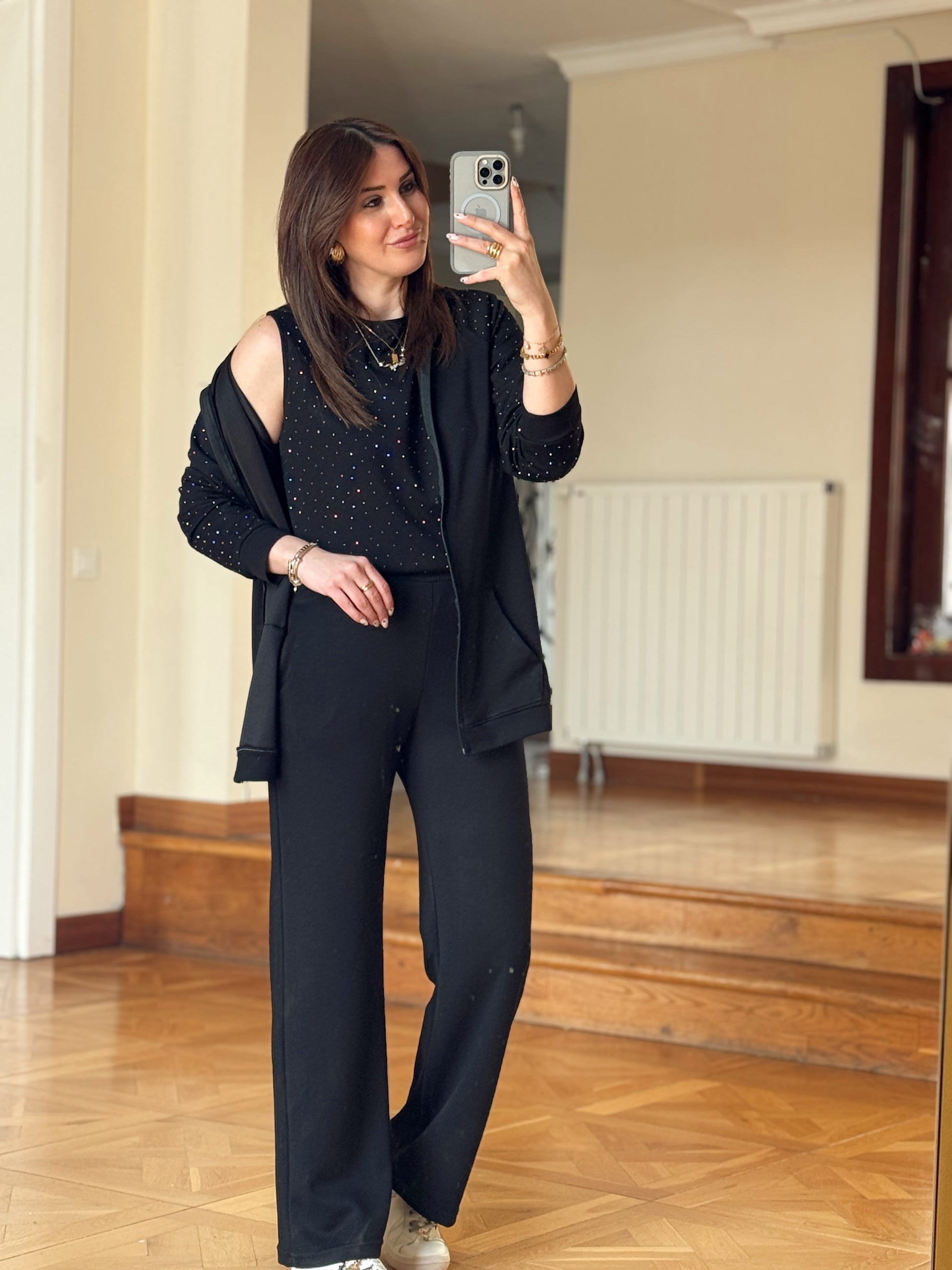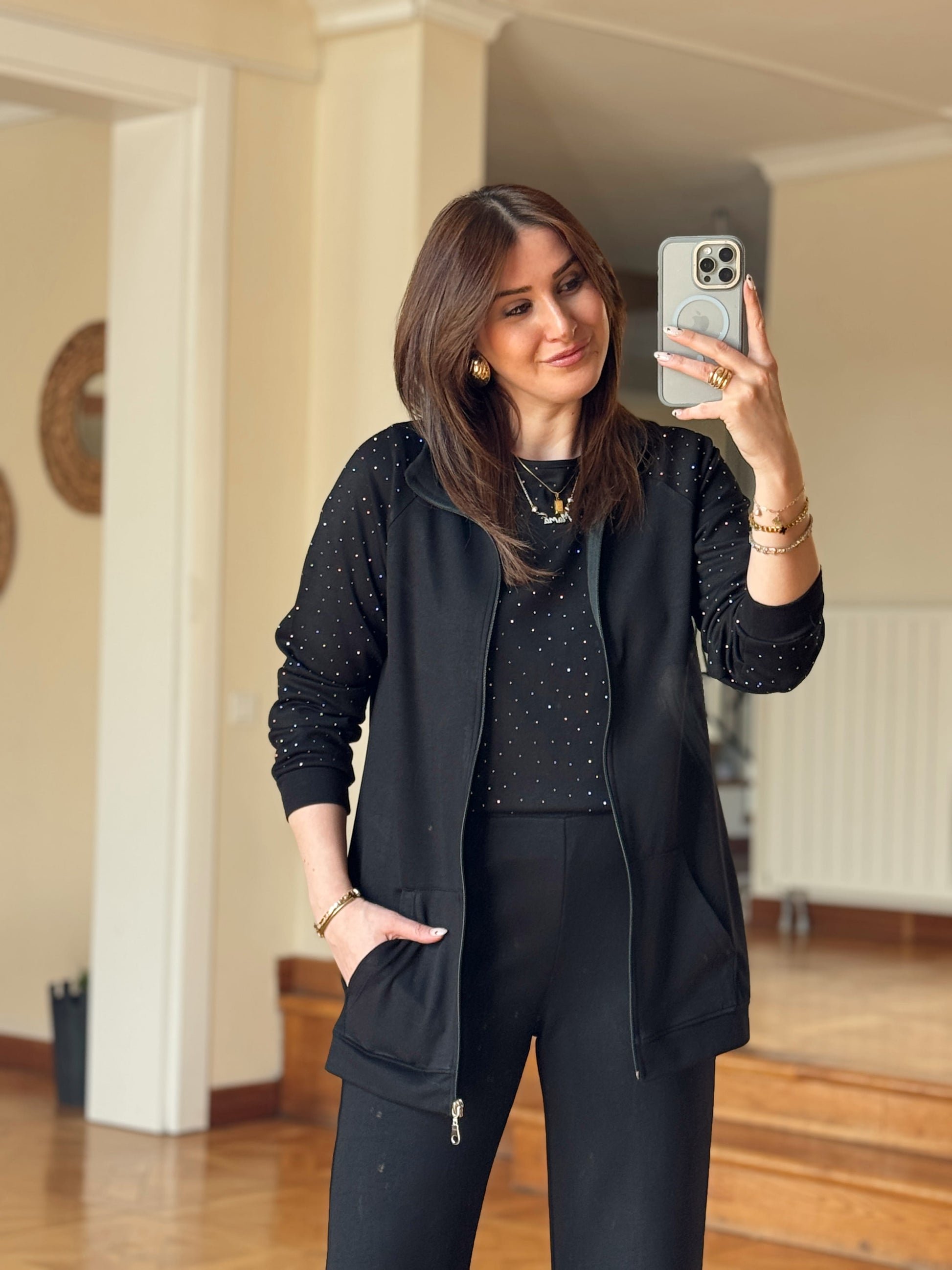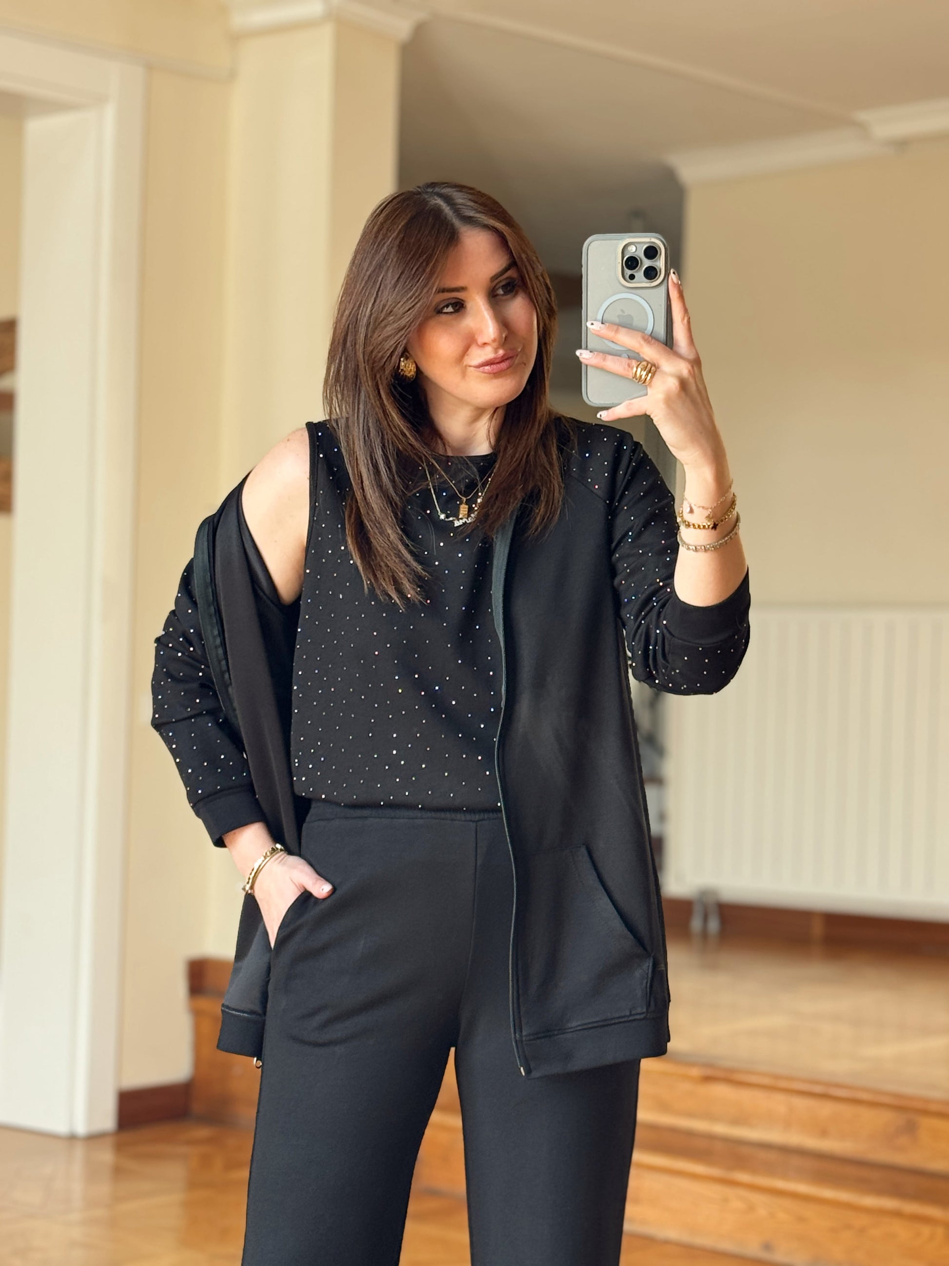 Üçlü Taşlı Oys Takım-SİYAH