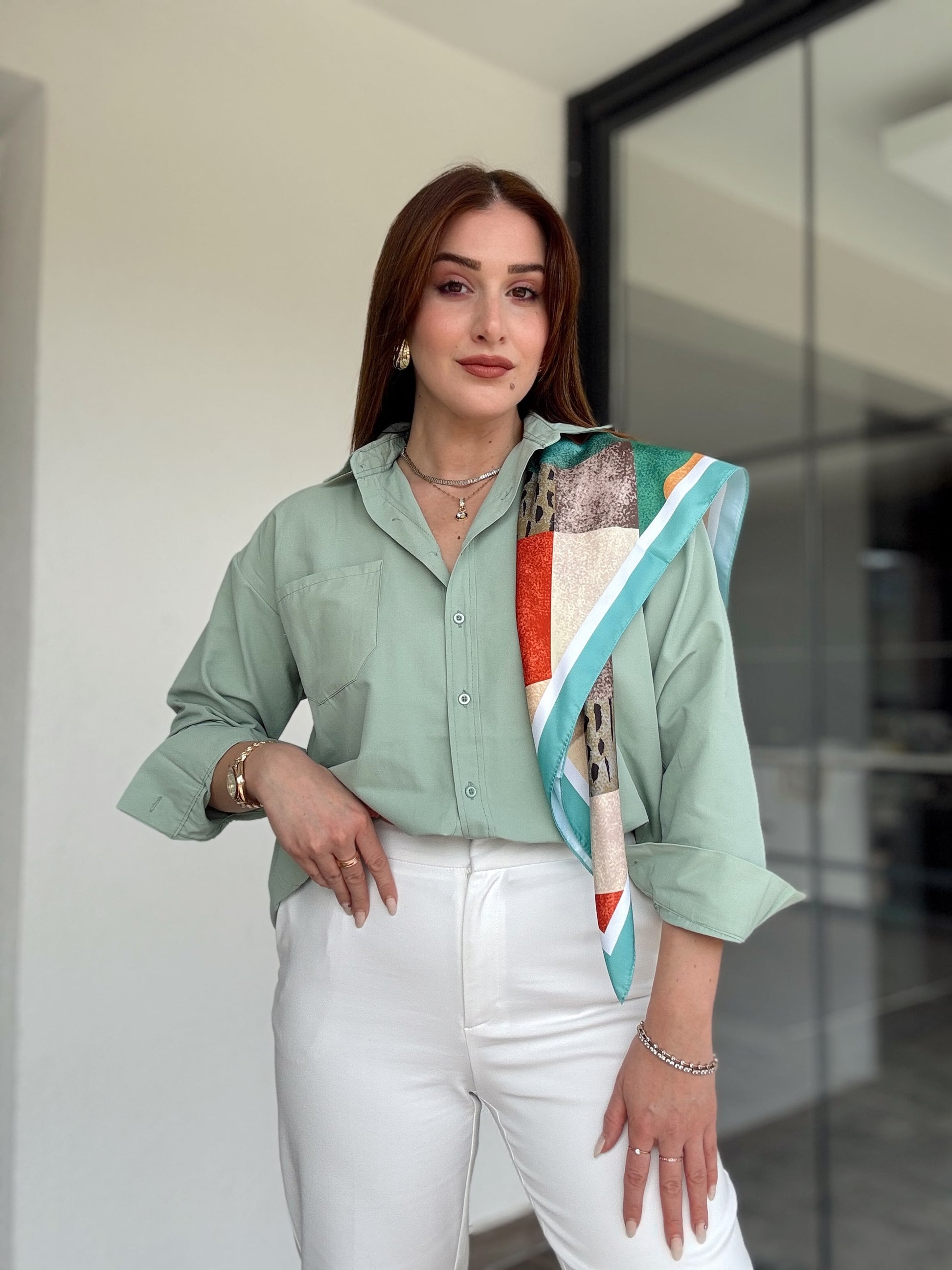 Uzun kol basic gömlek-MİNT YEŞİLİ