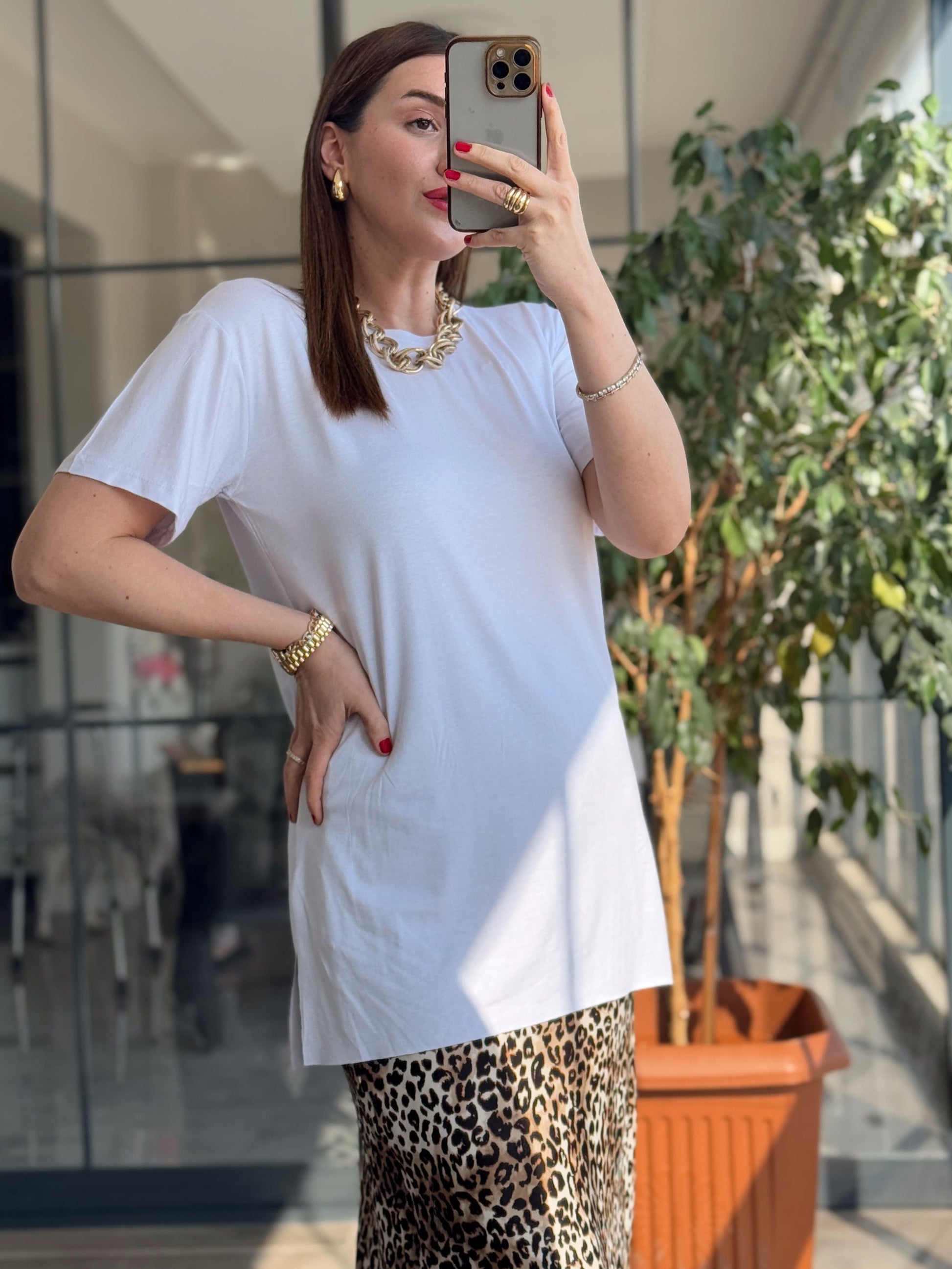 Viskon Sıfır Yaka Kısa Kol Tişört - BEYAZ