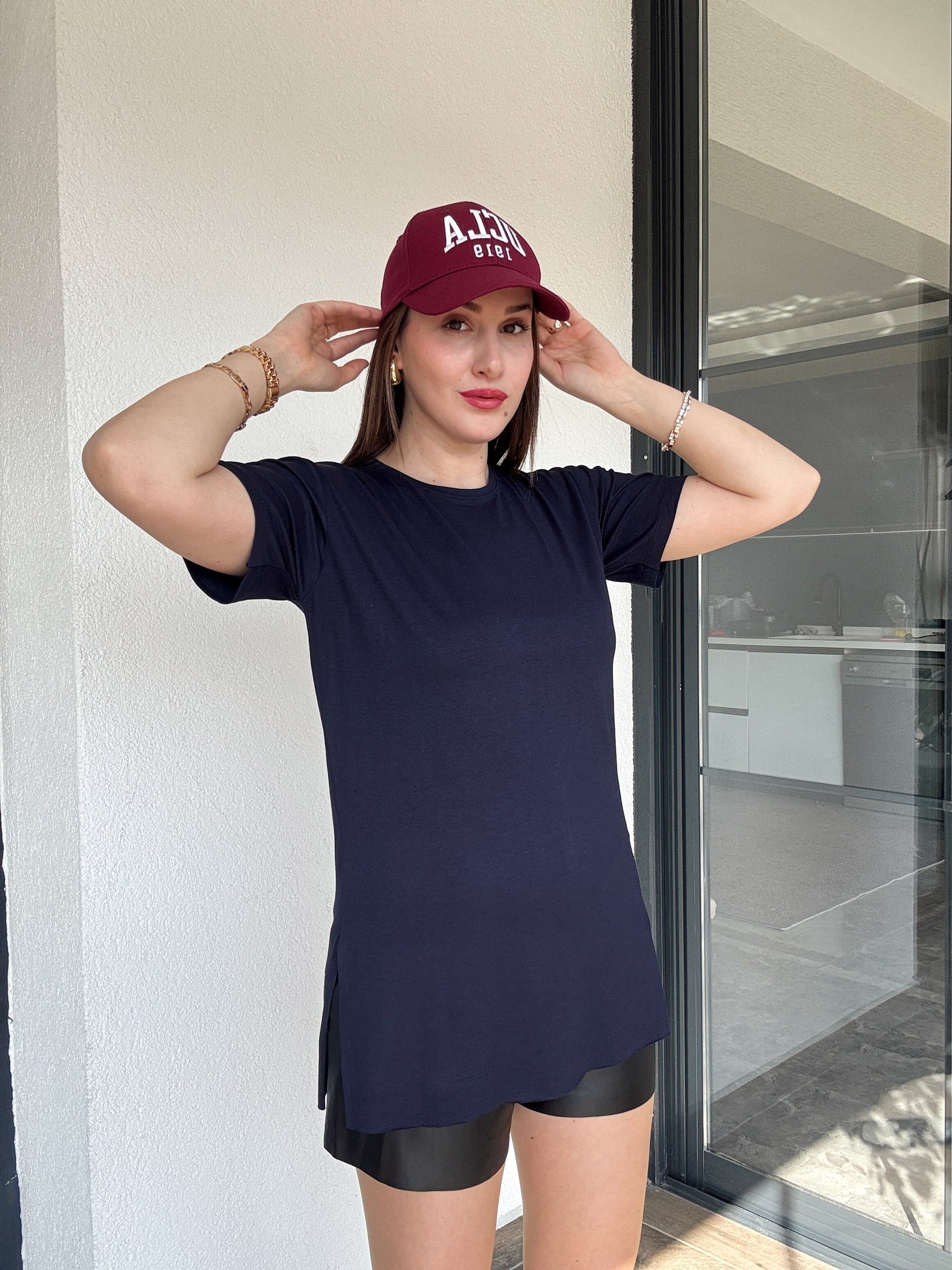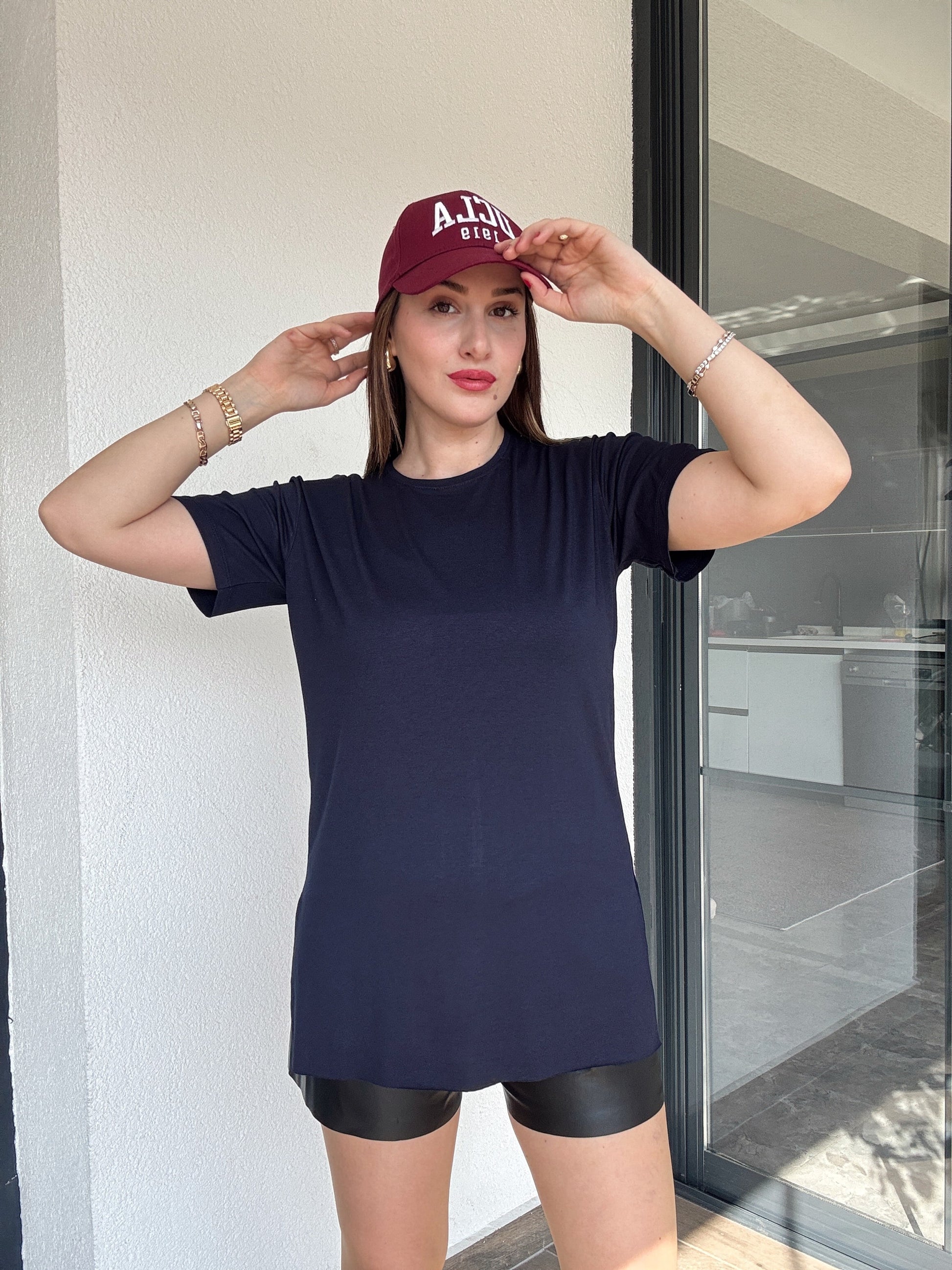 Viskon Sıfır Yaka Kısa Kol Tişört - LACİVERT