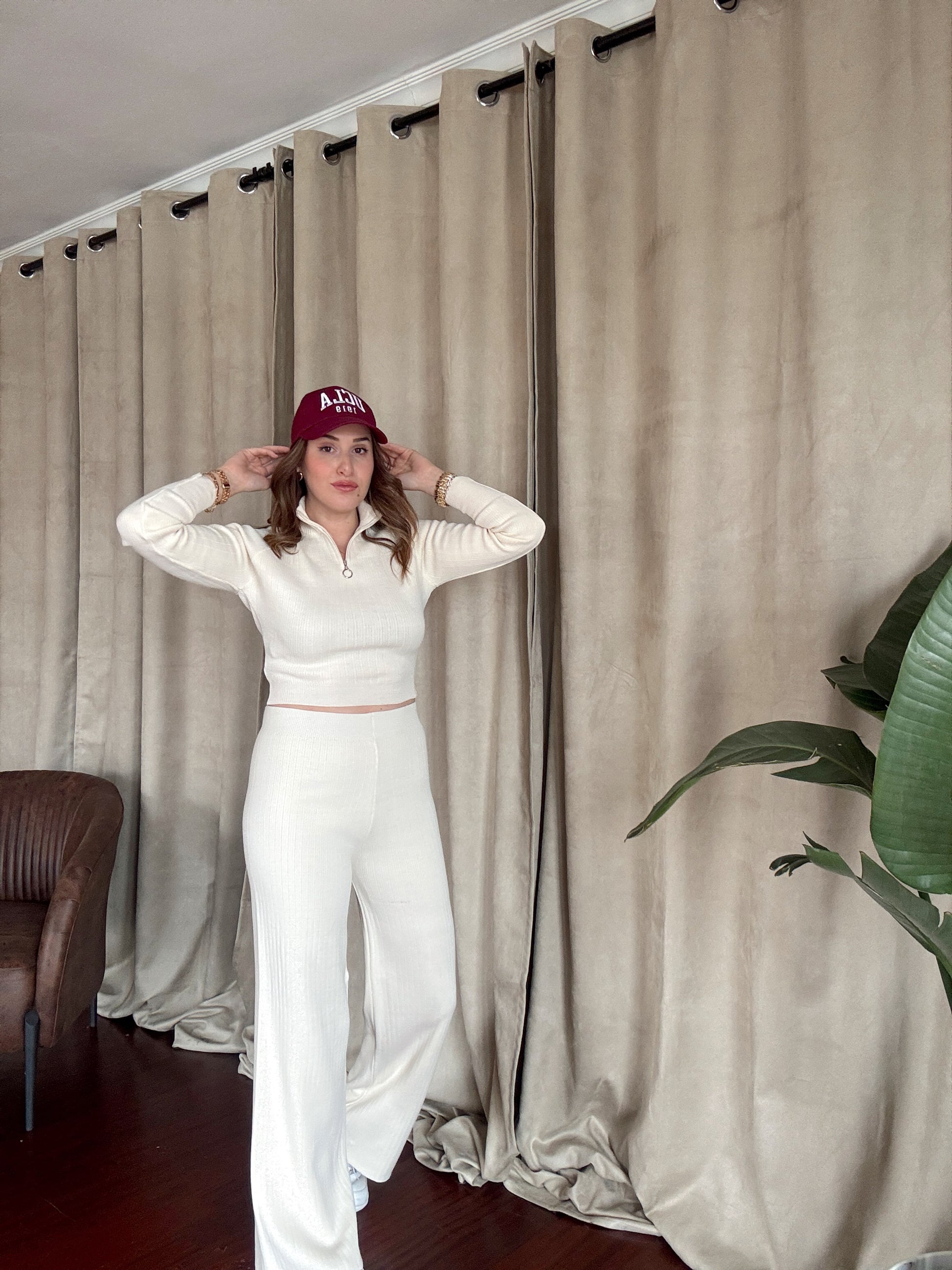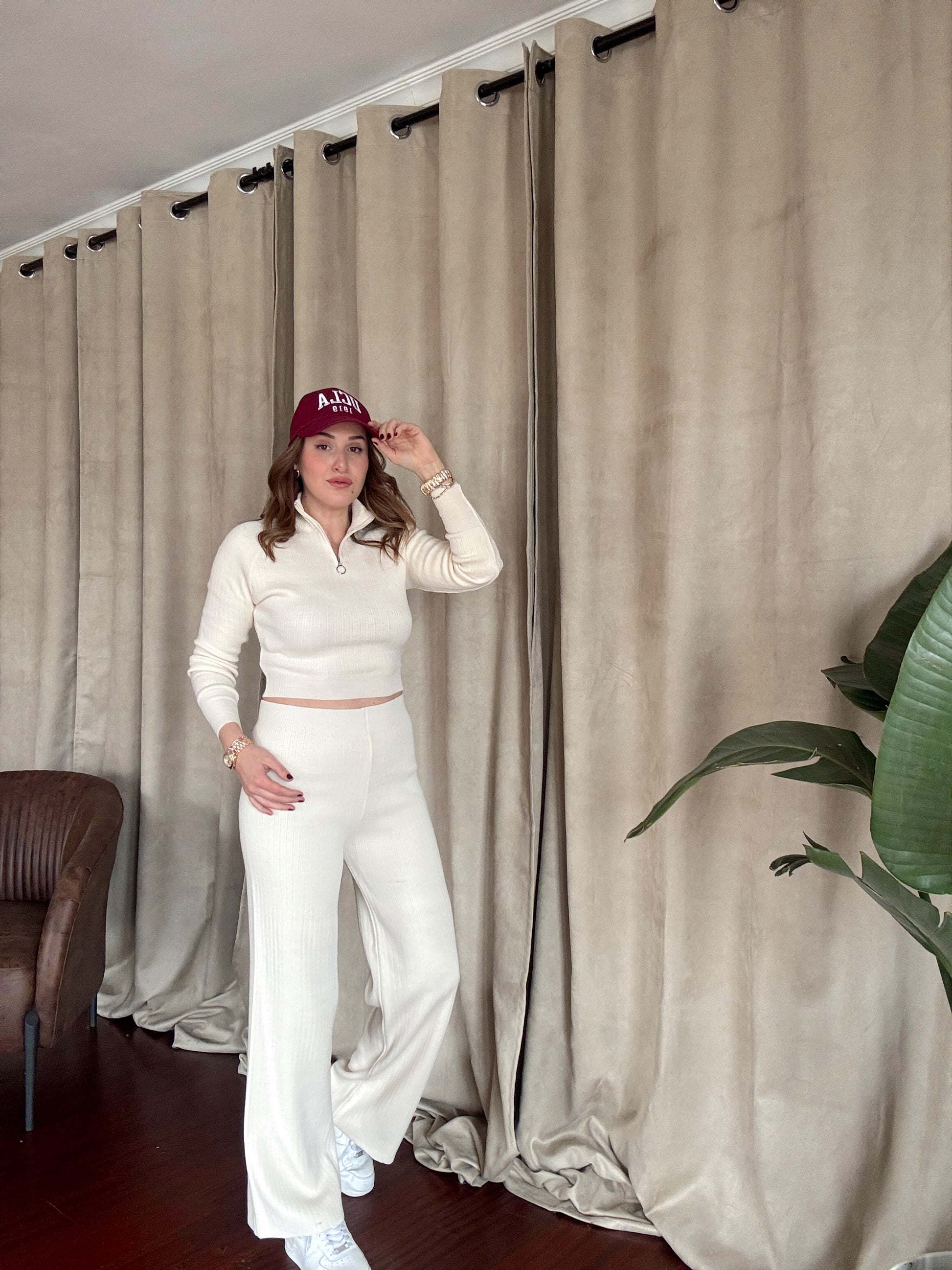 Yaka Fermuar Fitilli Triko Takım - LATTE