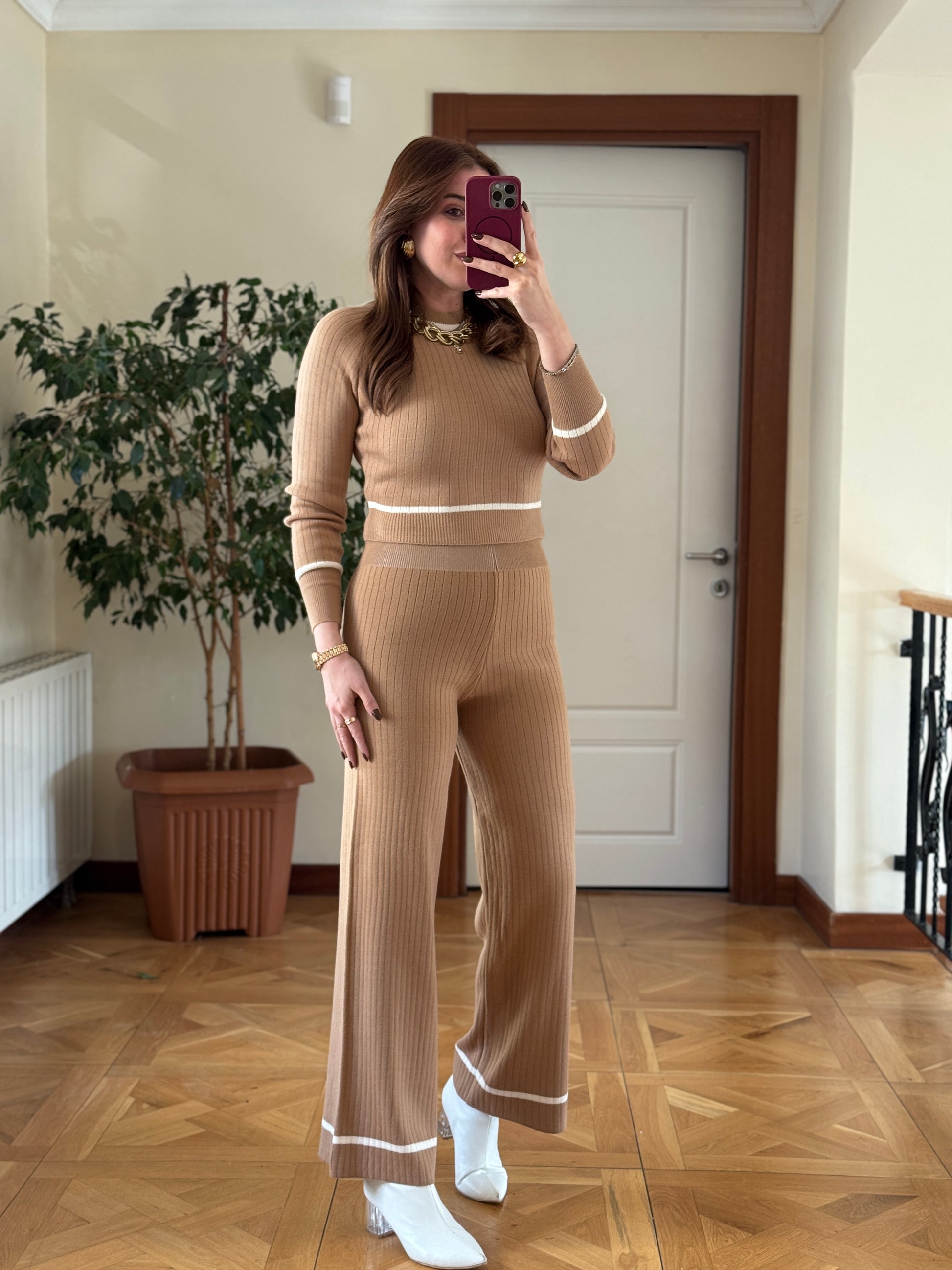 Yaka Ve Eteği Detaylı Basic Fitilli Takım - CAMEL