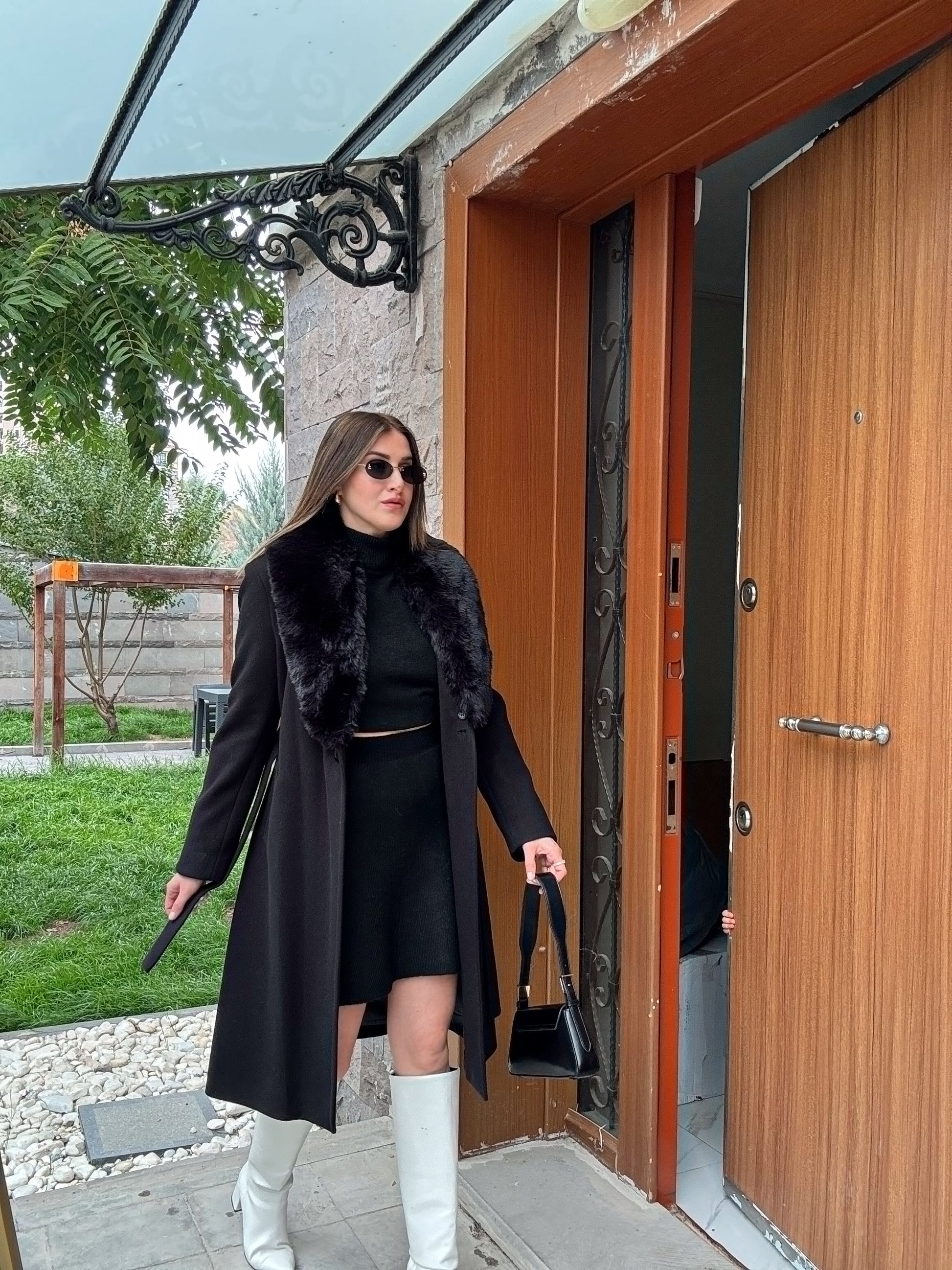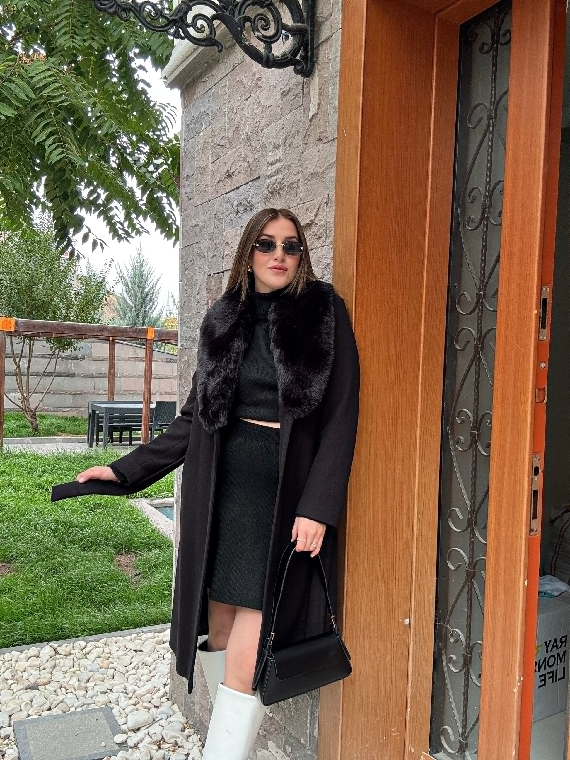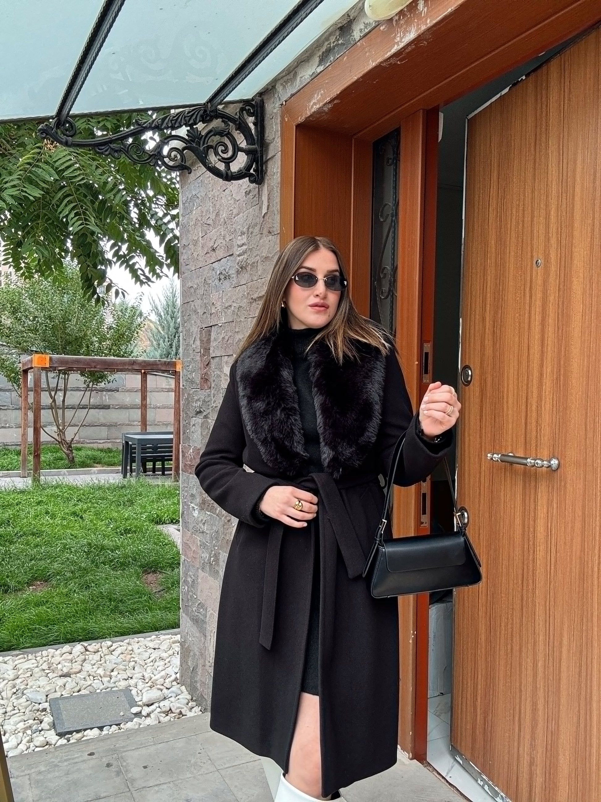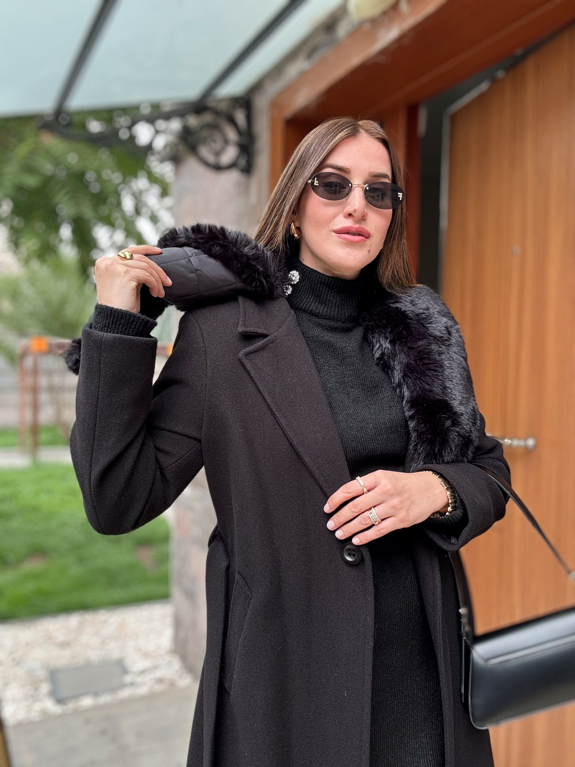 Yakası Çıkarılabilir Kürklü Kaban - SİYAH