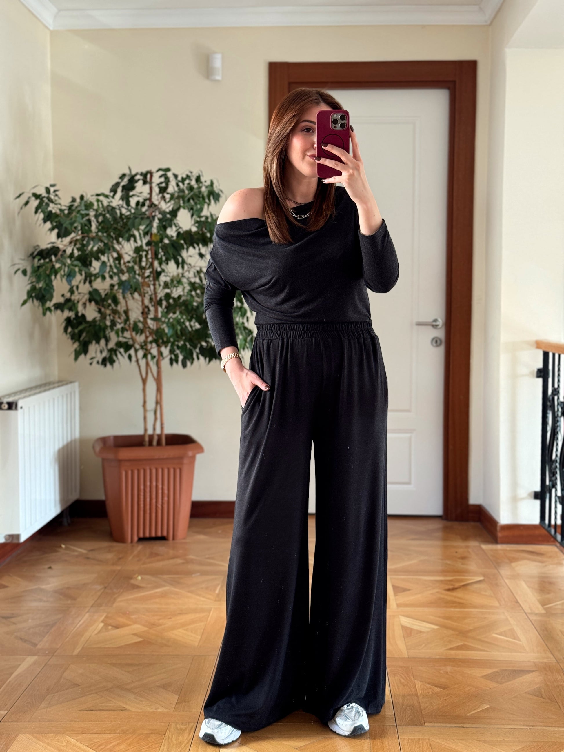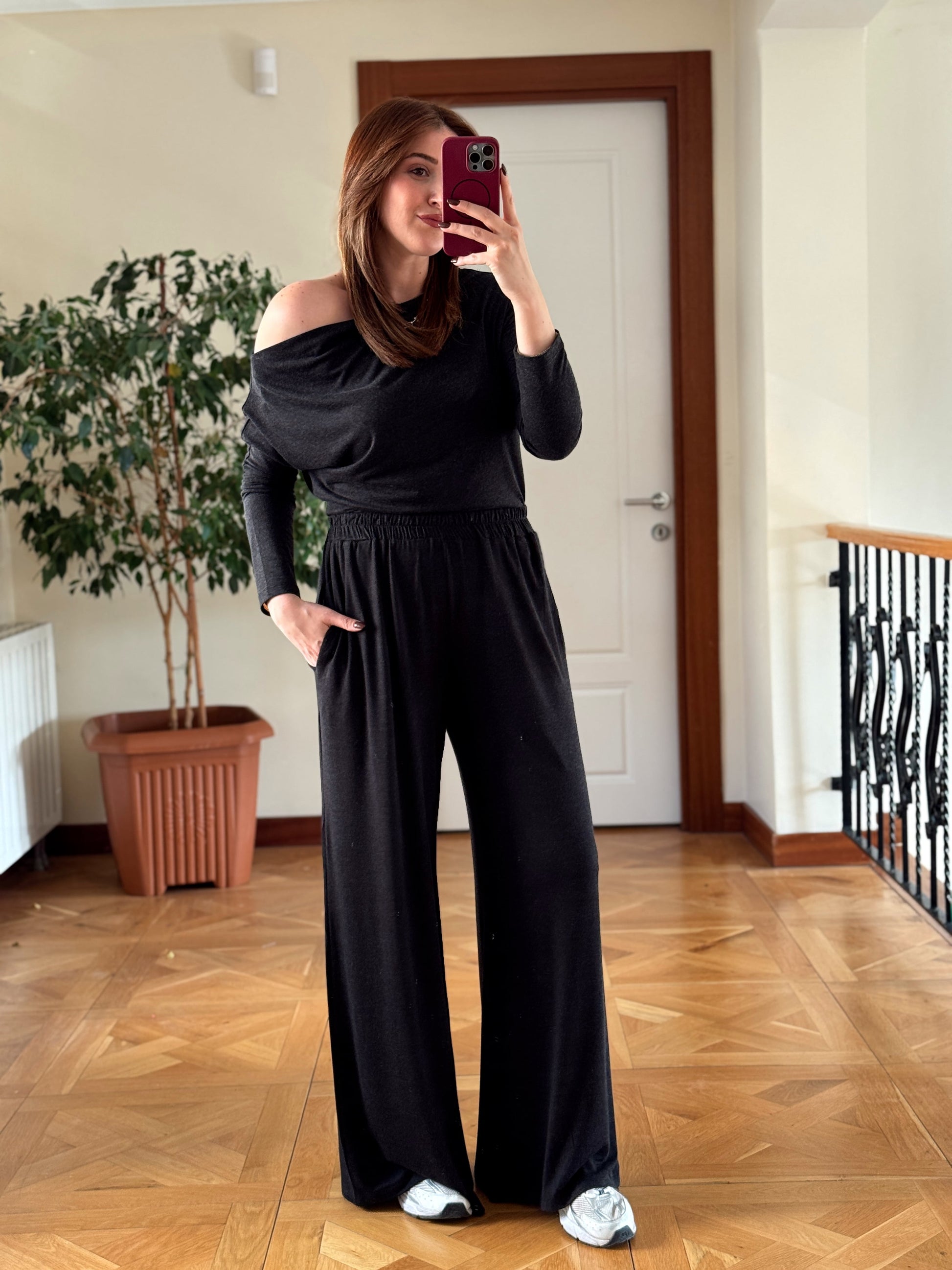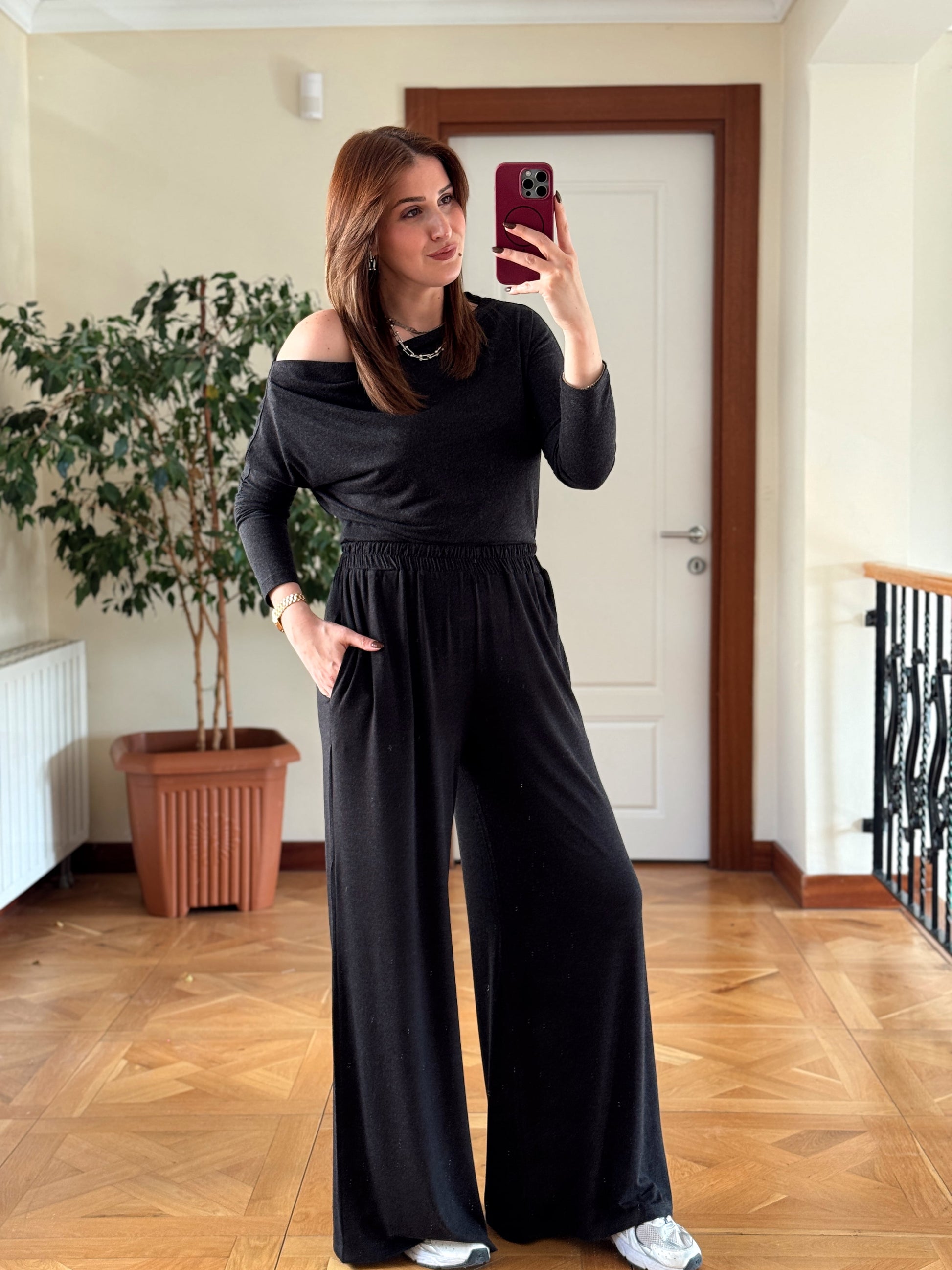 Yarasa kol cepli pantolonlu takım-FÜME