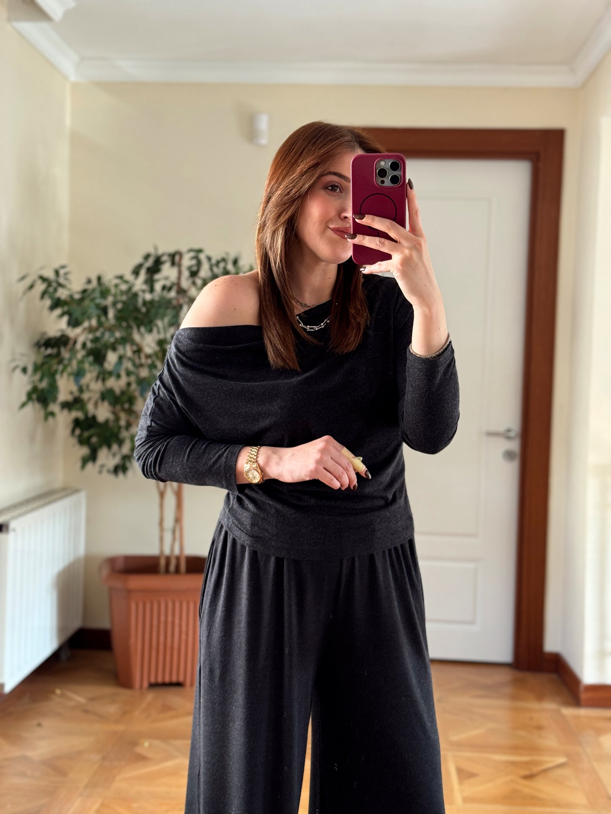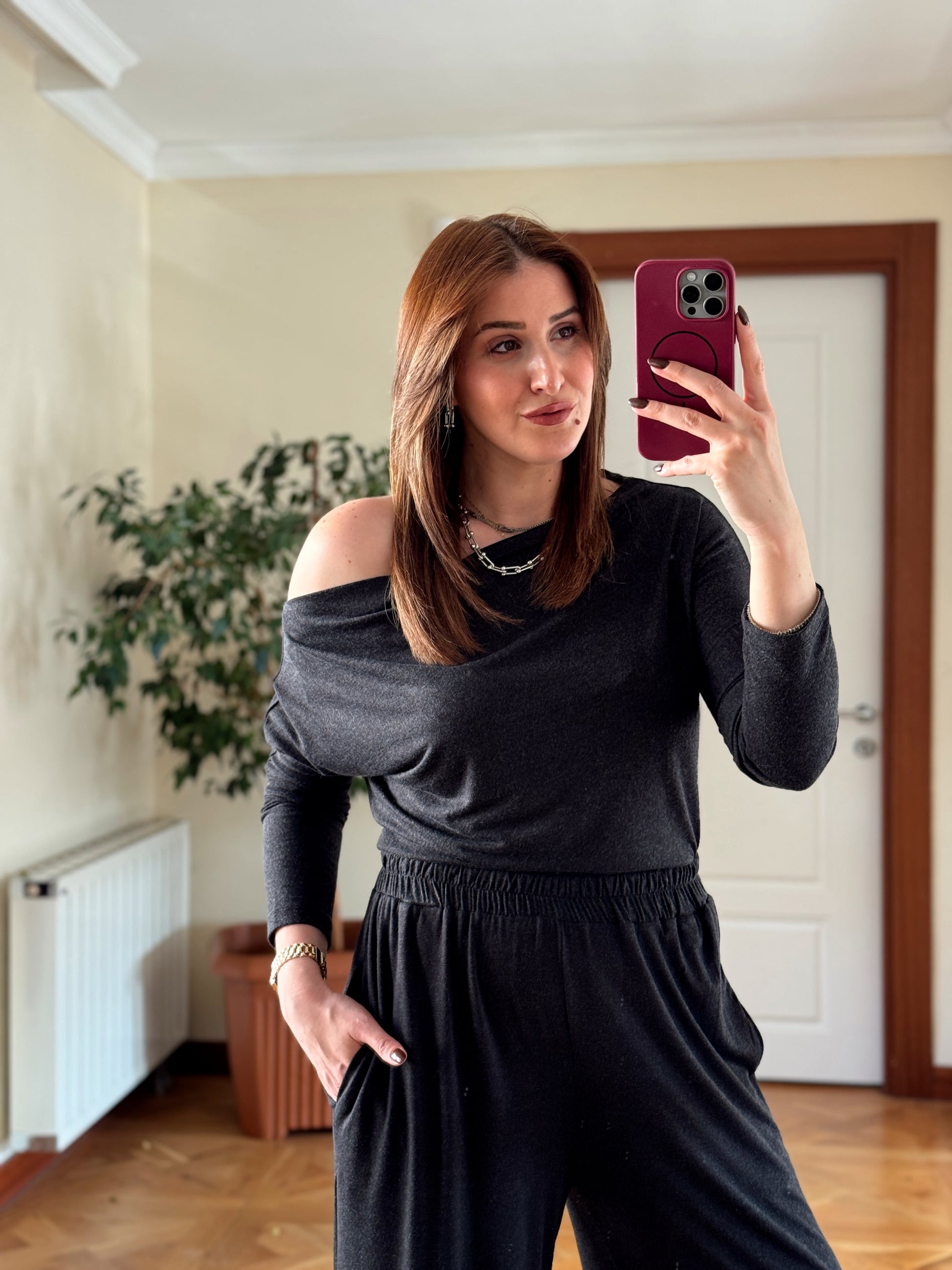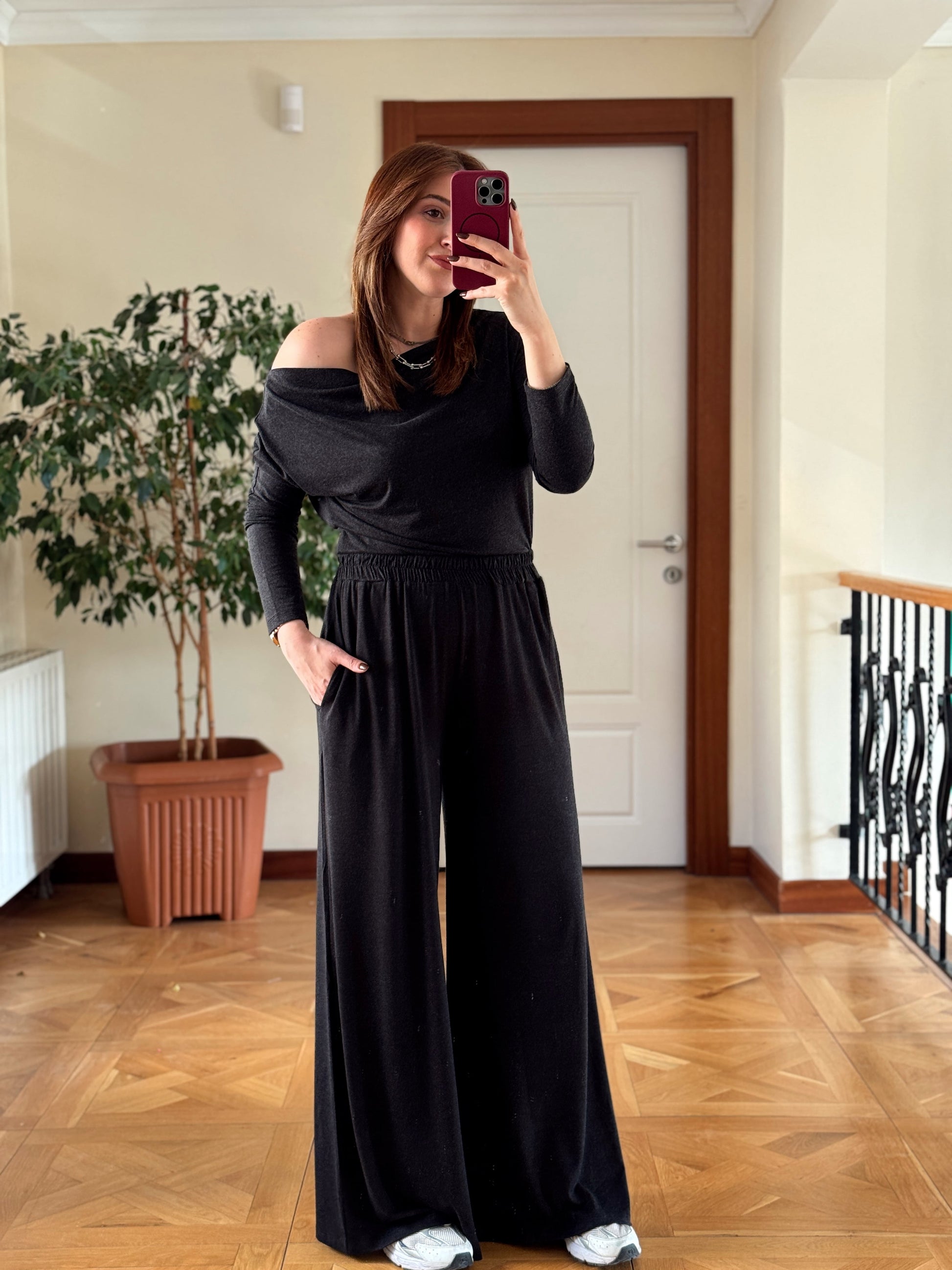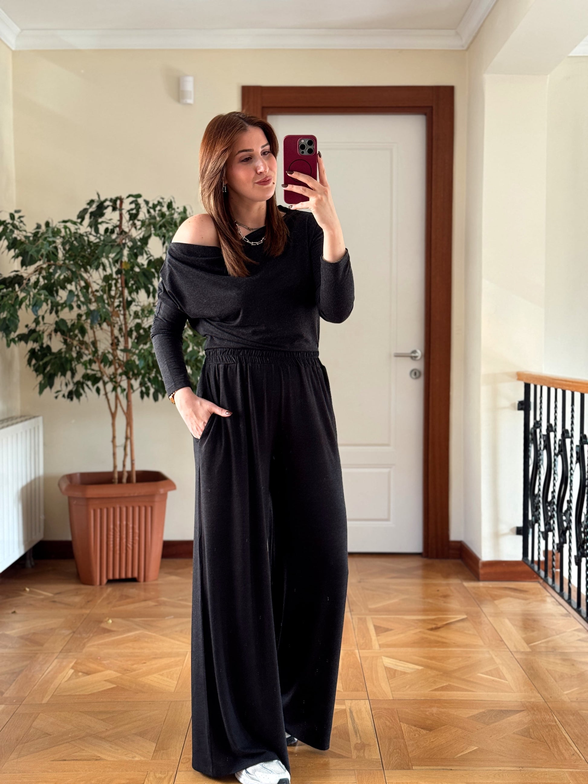 Yarasa kol cepli pantolonlu takım-FÜME