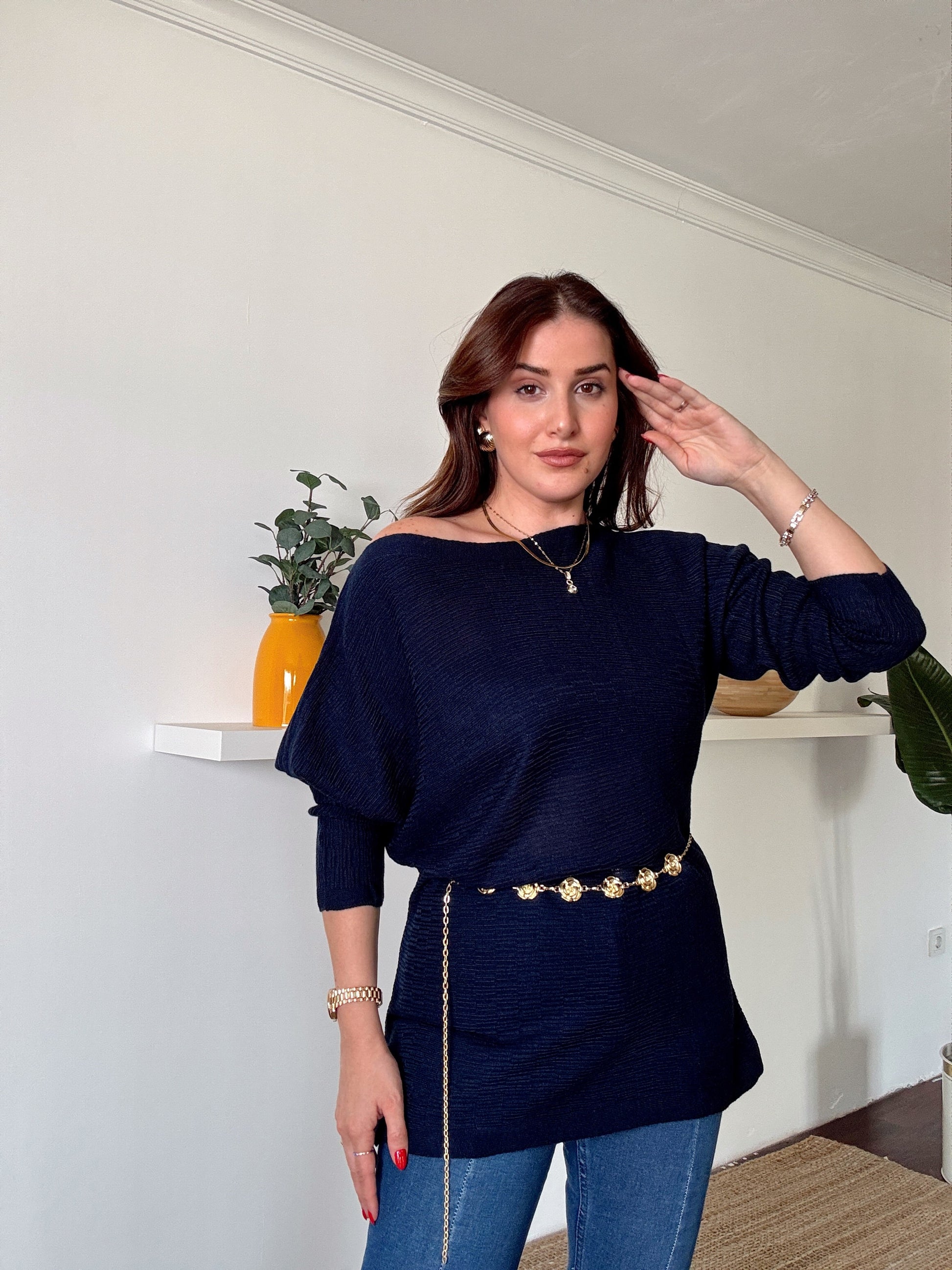 Yarasa kol Triko bluz Lacivert