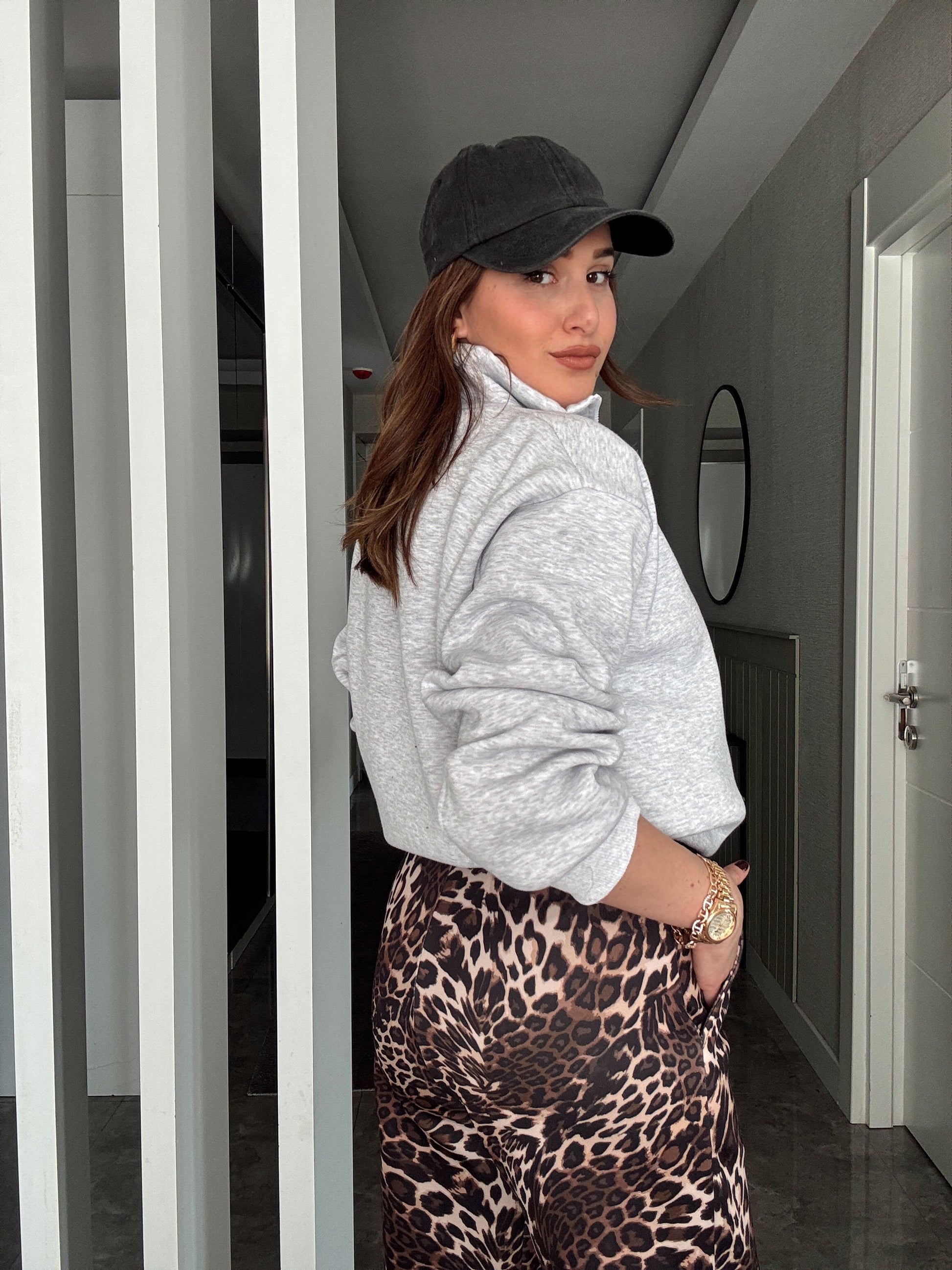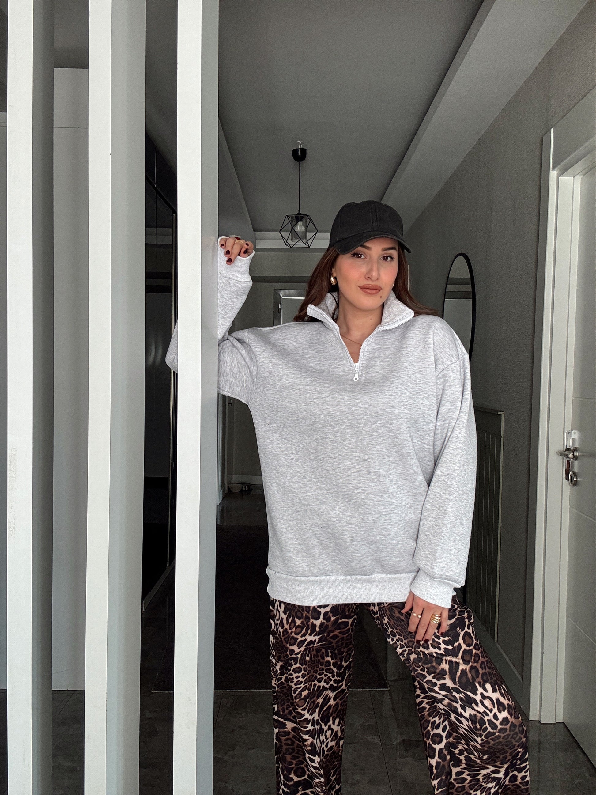 Yarım Fermuar Basic 3 İplik Şardonlu Sweatshirt - GRİ