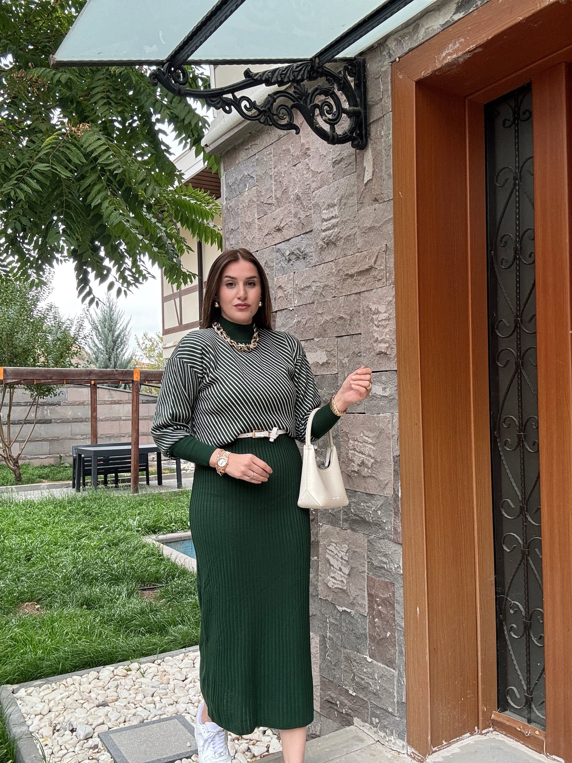 Yatay Çizgili Pikeli Jileli Takım - YEŞİL