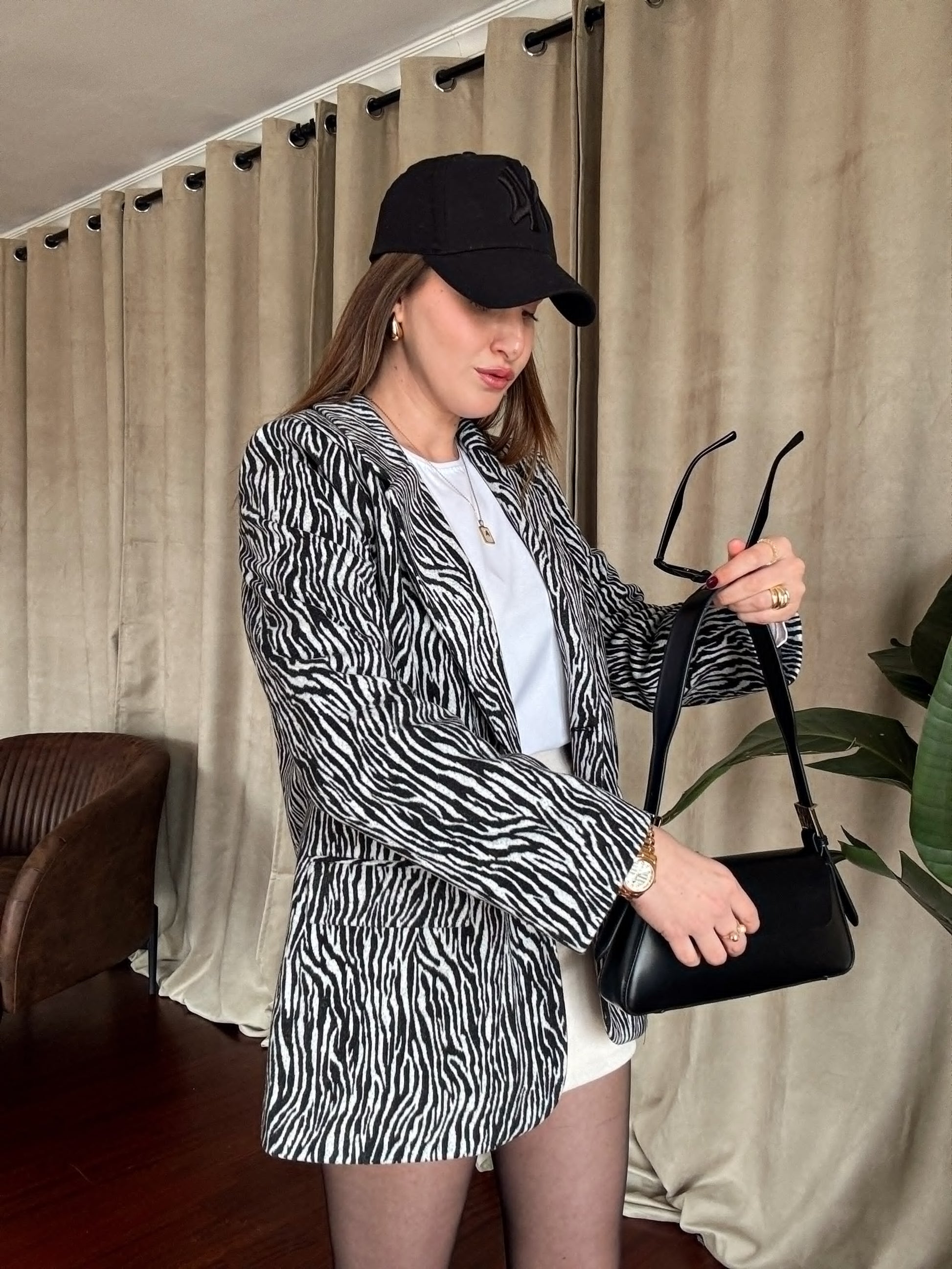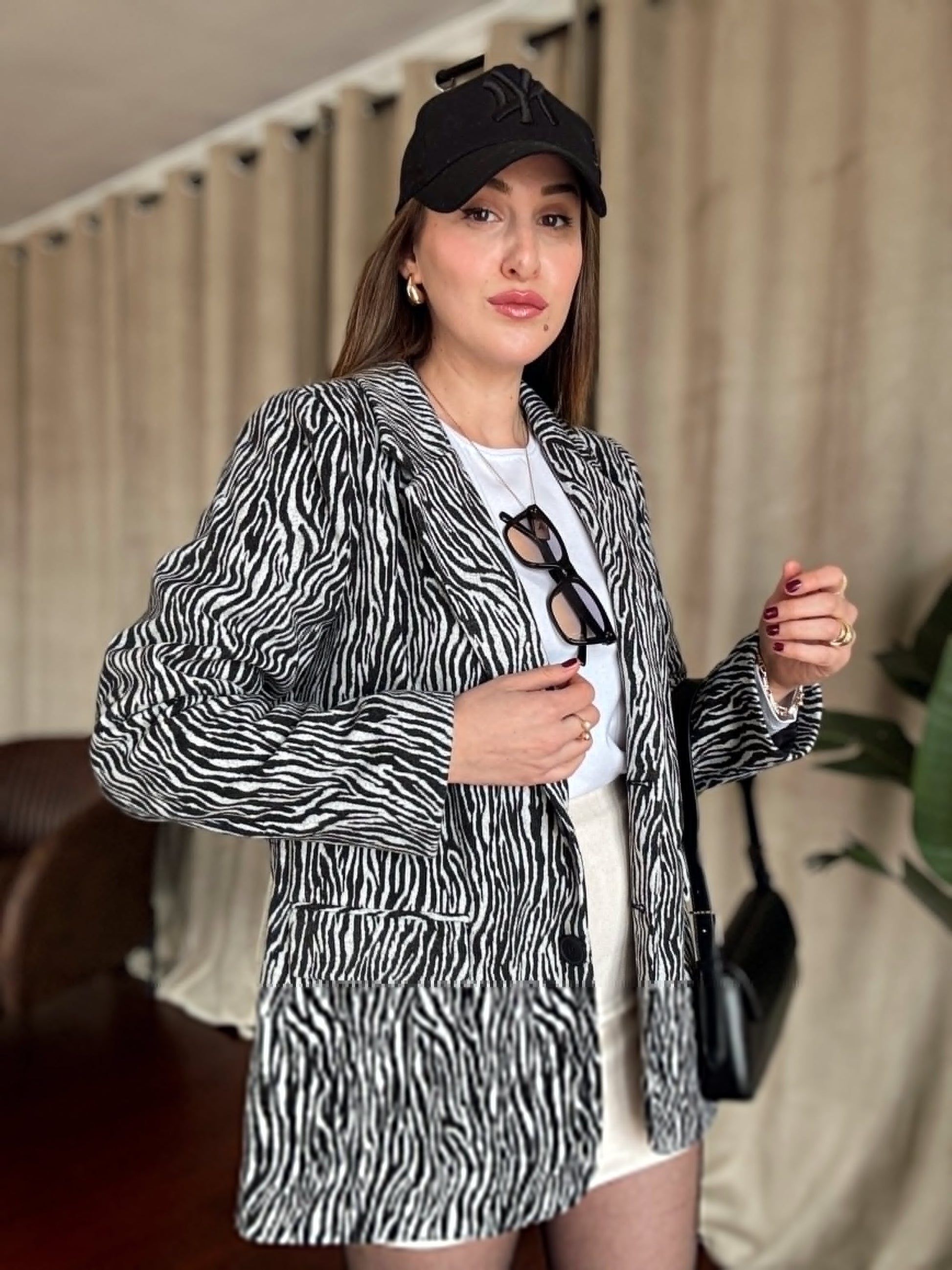 Zebra Desenli Kaşe Ceket - SİYAH